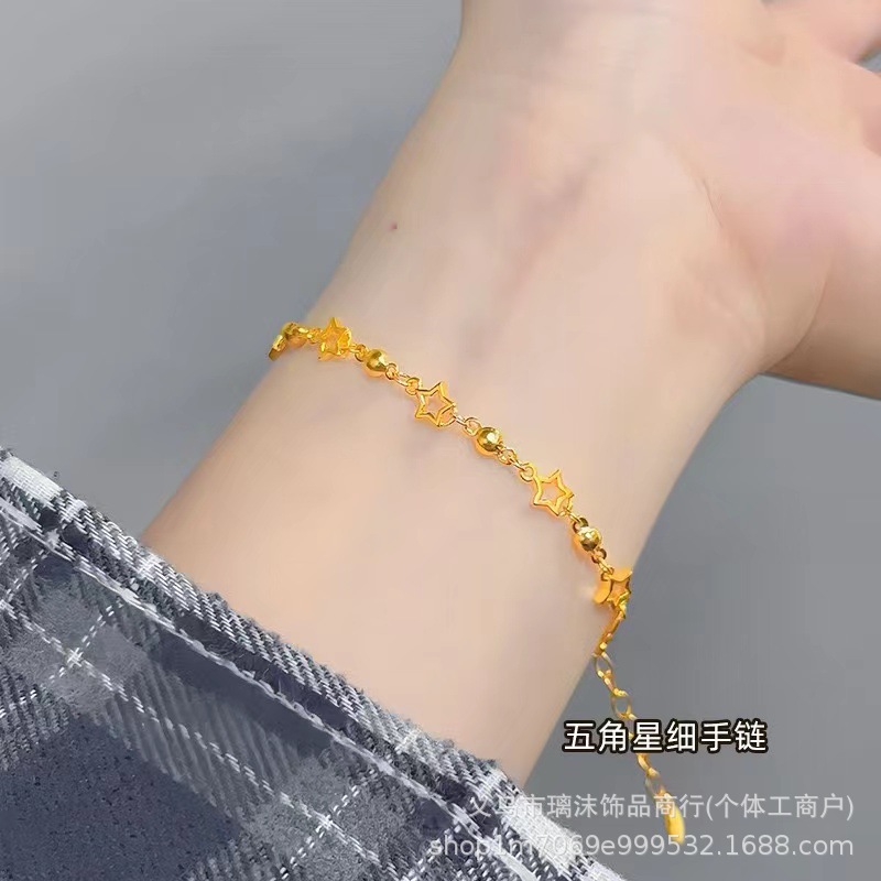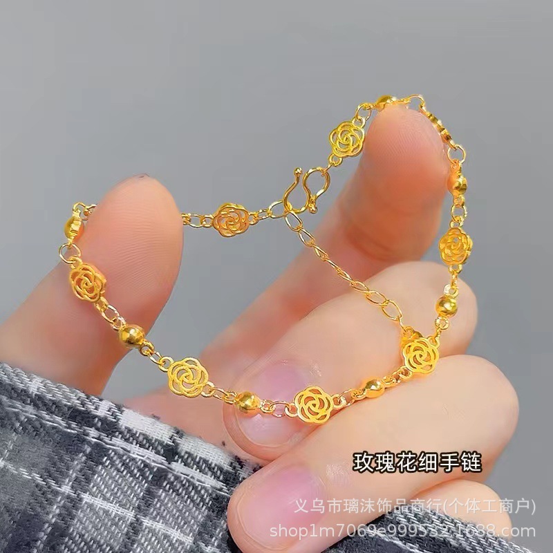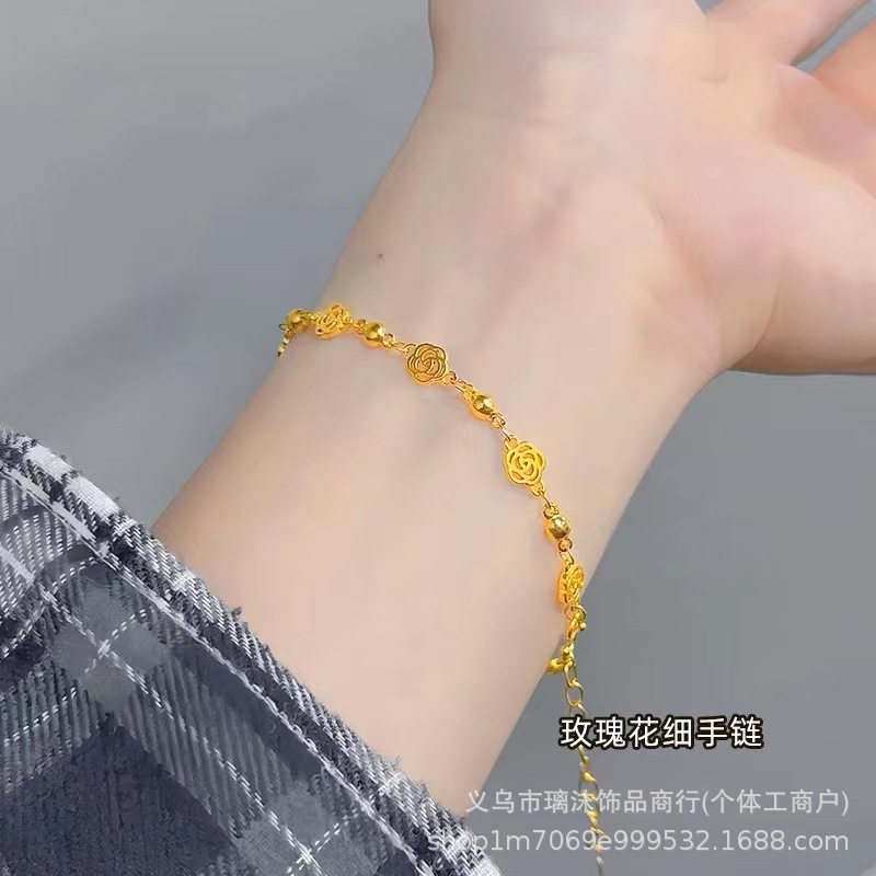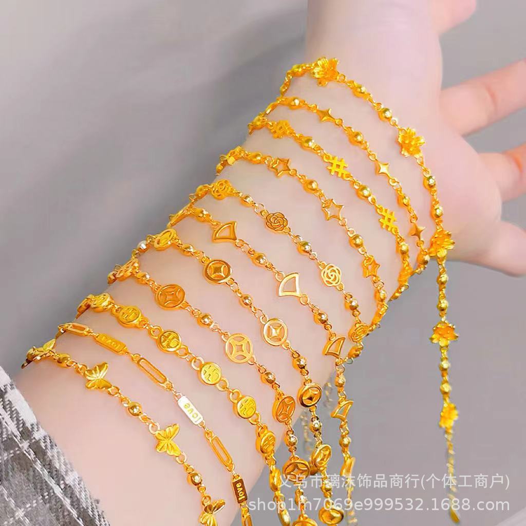 2025 New Arrival Sand Gold Exquisite Fine Bracelet Women's All-match Butterfly Rose Flower Star Bracelet Adjustable Live Supply