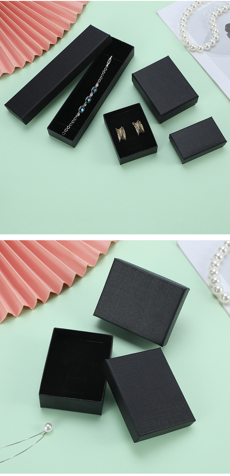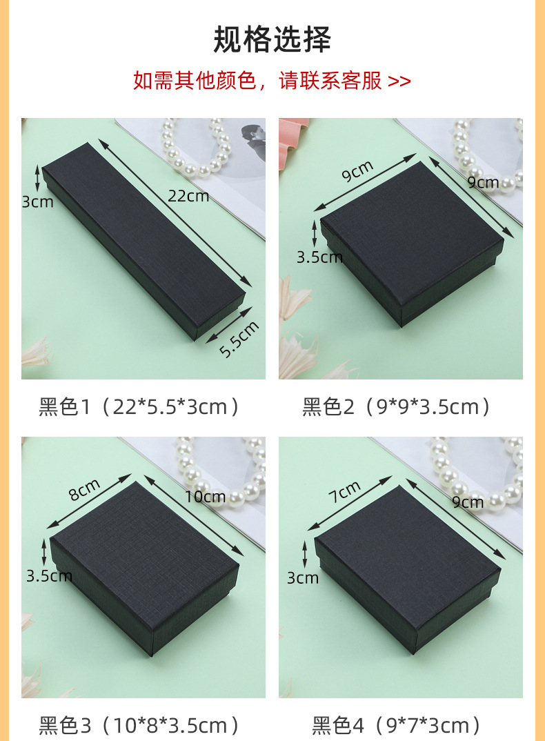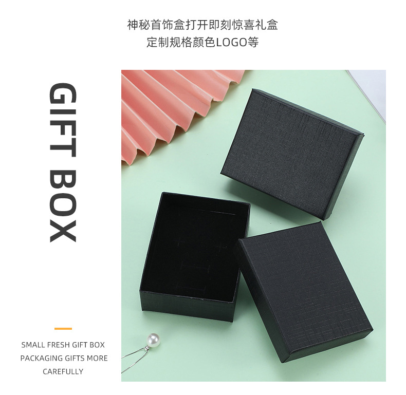 Heaven and Earth Cover Jewelry Box Jewelry Packaging Box Black Multi-Specification Jewelry Packaging Box Ring Necklace Storage Box Wholesale