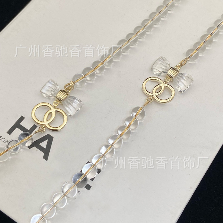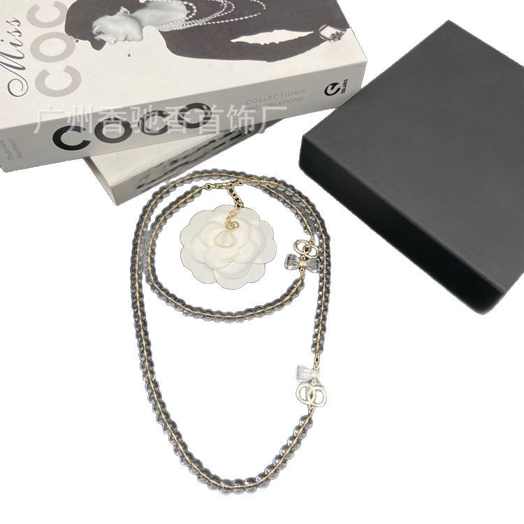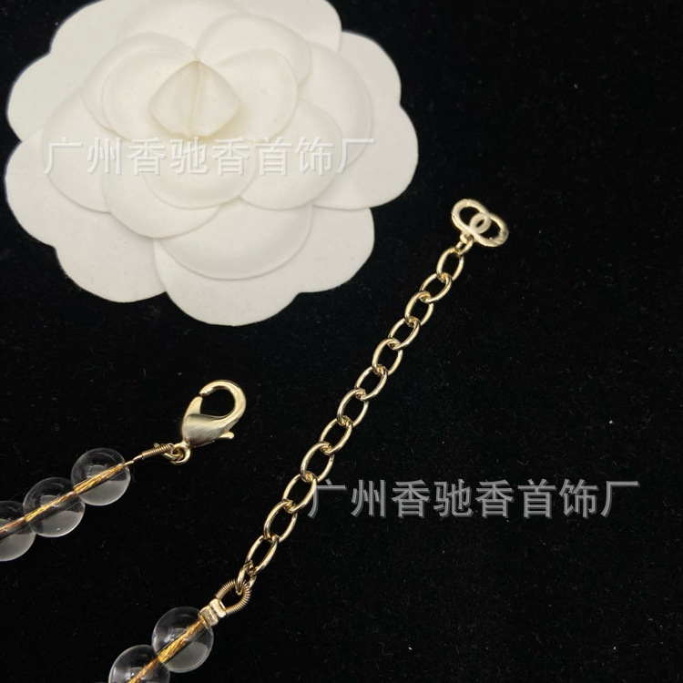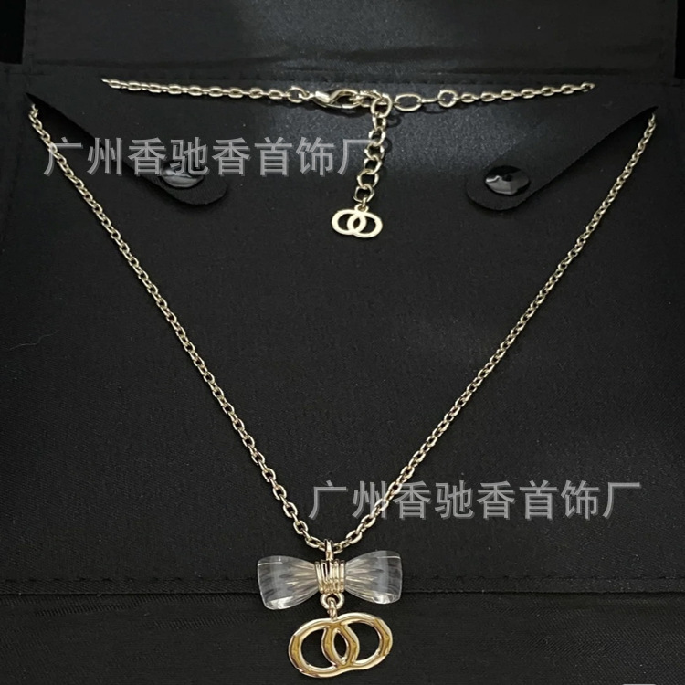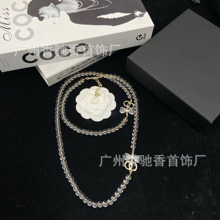 New Style Fragrant Granny high quality Transparent Crystal Bow Glaze Pearl Necklace Elegant All-match Earrings Woolen Chain