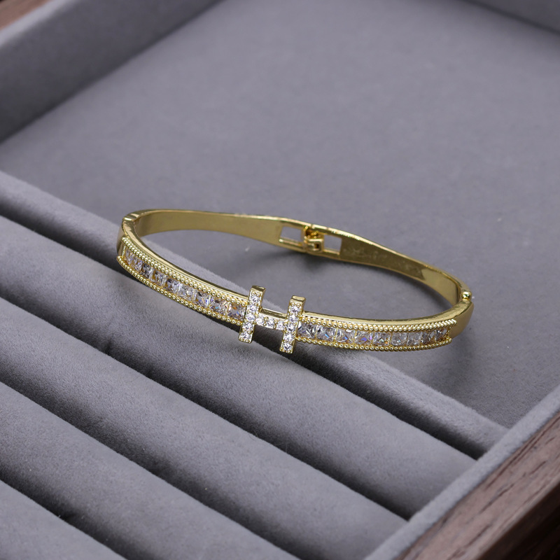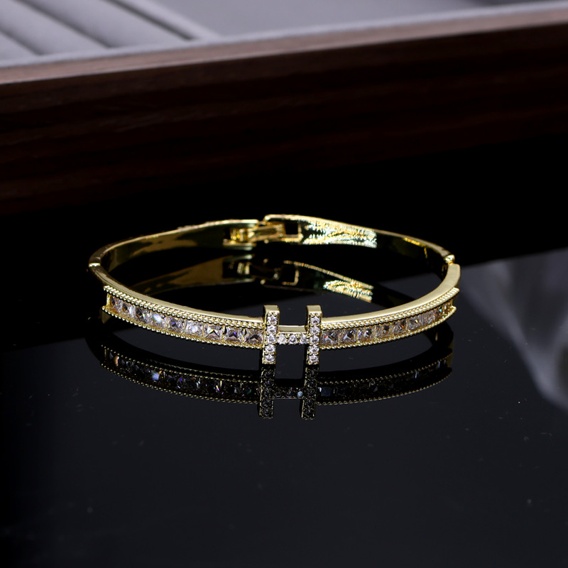 Cross-border Hot Sale Letter H-bayonet Design Bracelet Zircon Light Luxury All-match High-end Diamond-studded Exquisite Fashion Single Product