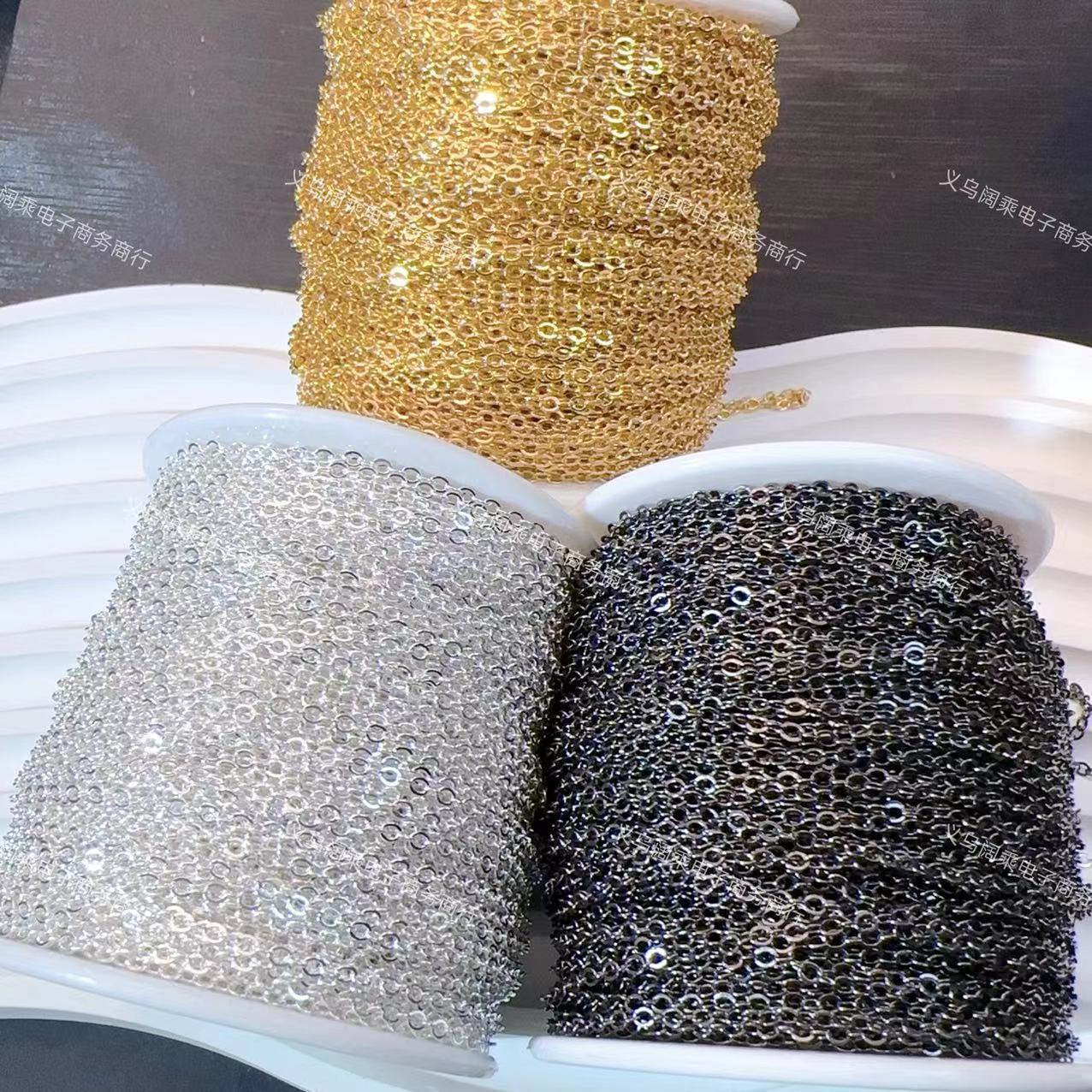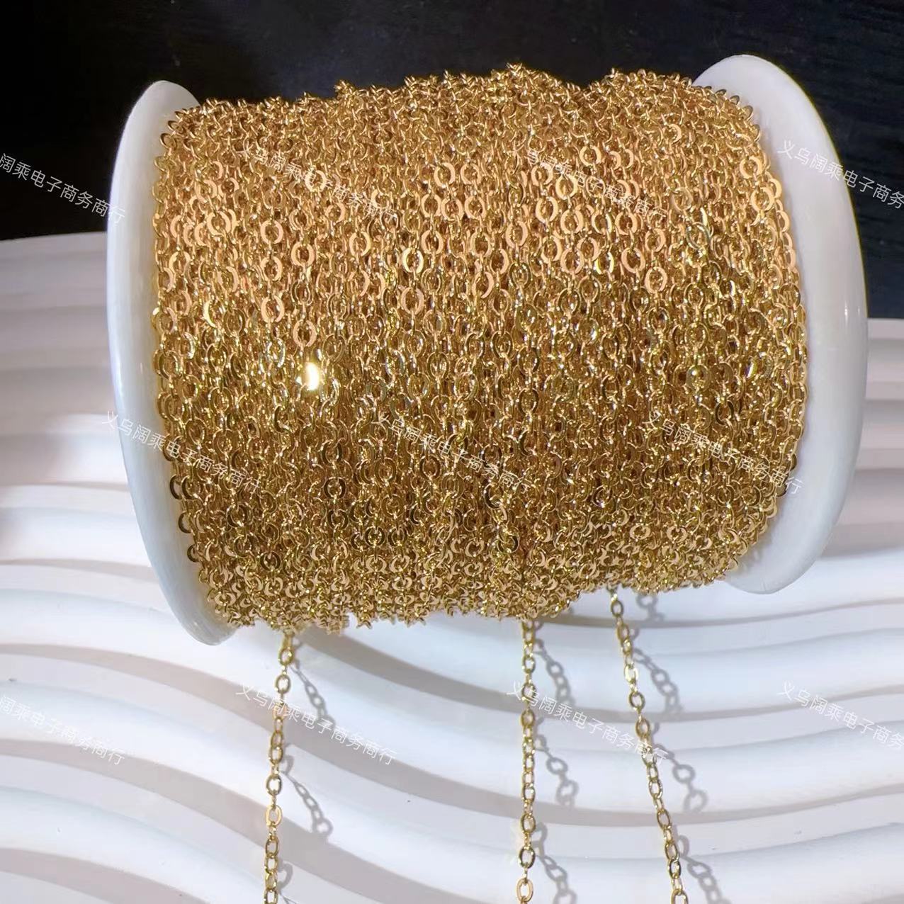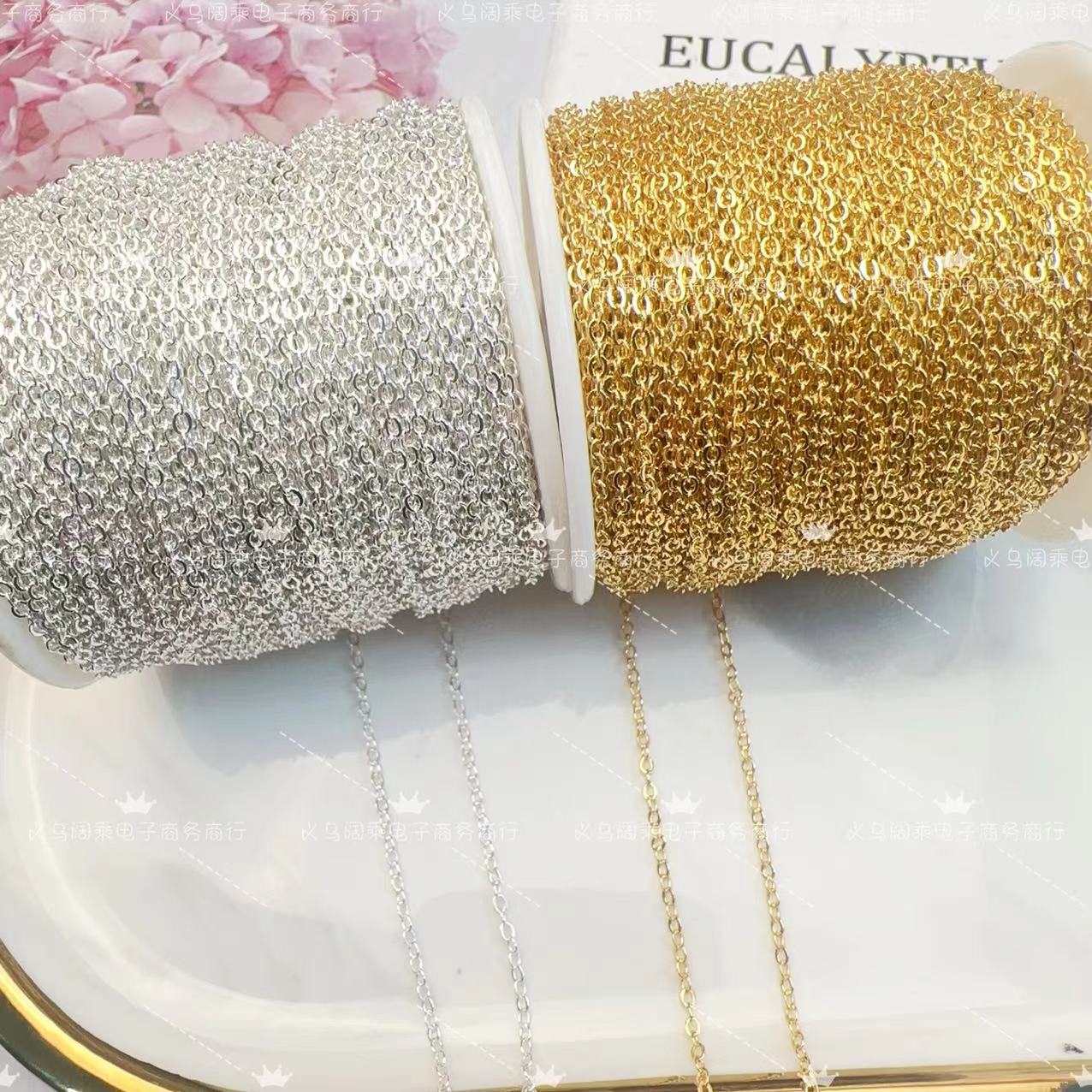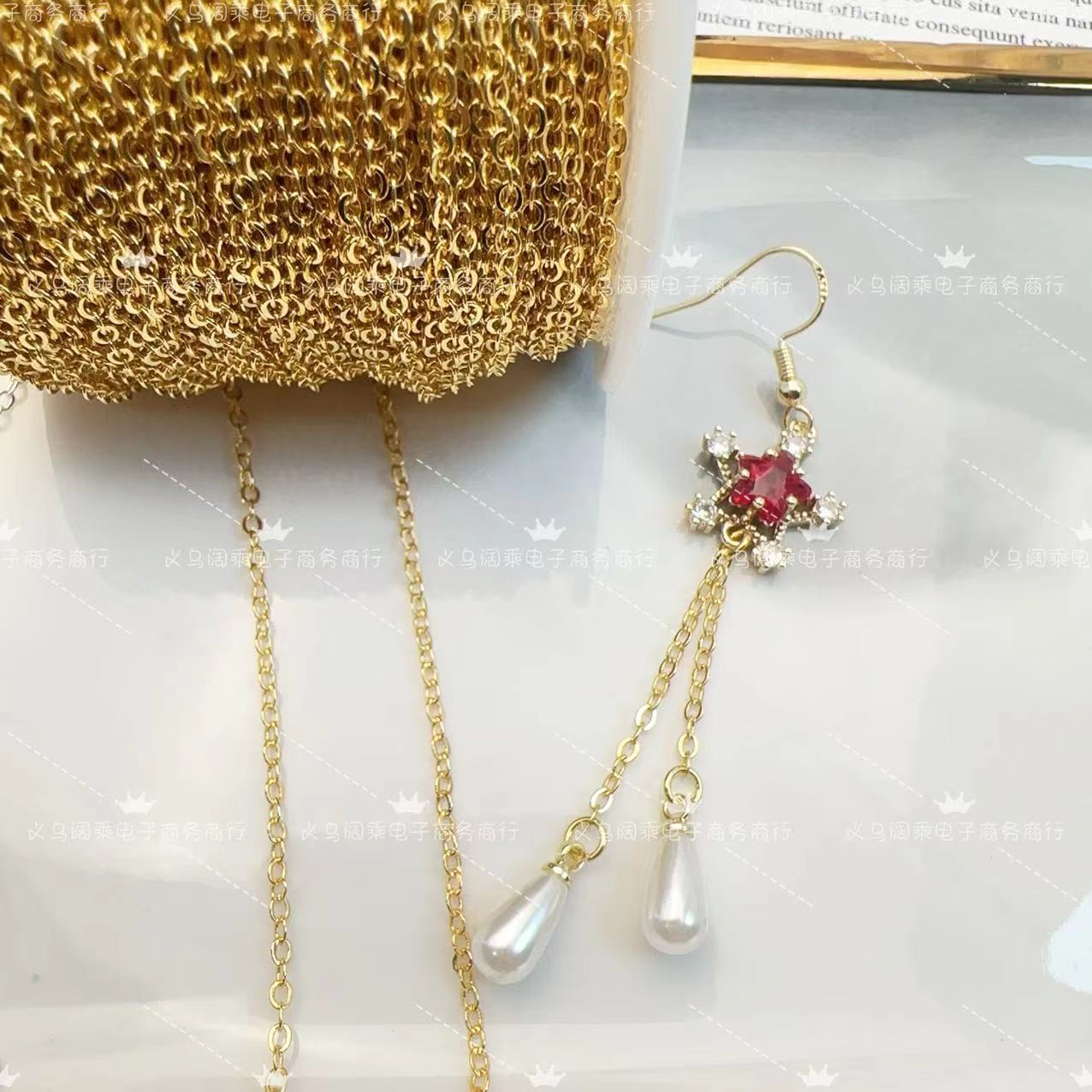 Pure Copper Color-Preserving Chain Flat O-Link Chain DIY Push-Pull Chain Bracelet Necklace Hairpin Earring Accessories Copper Chain DIY