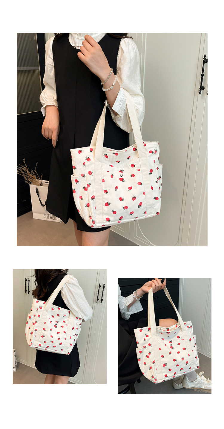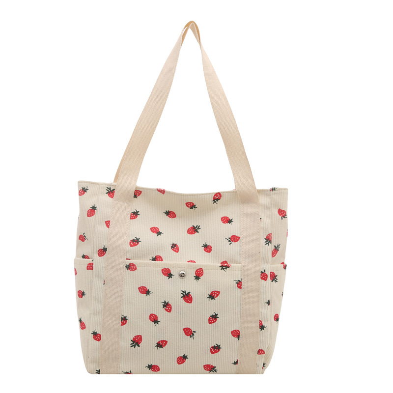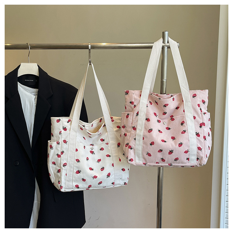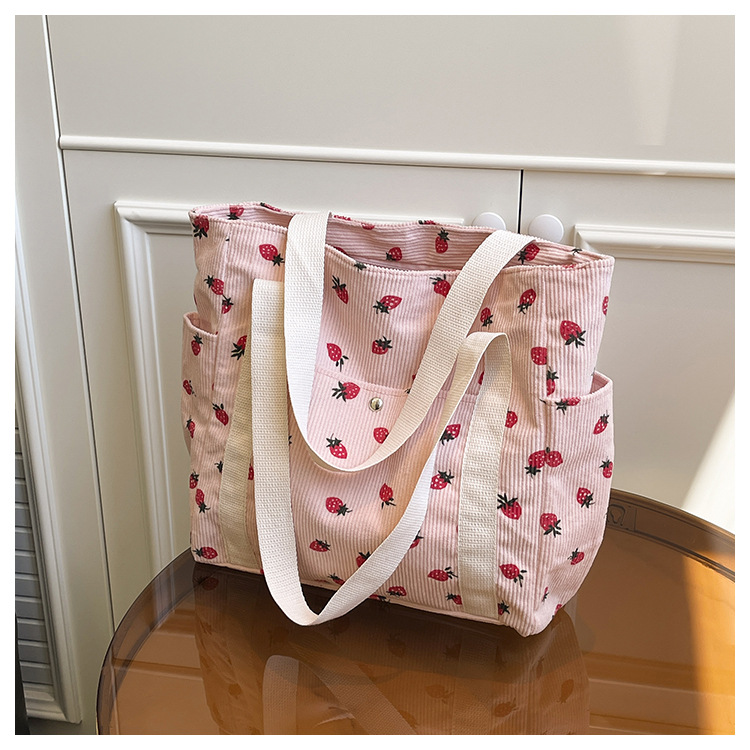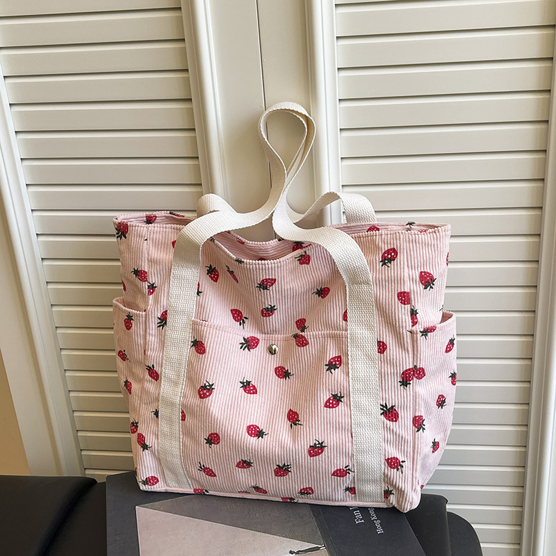 Simple Large Capacity Bag Women's 2025 New Style Fresh Strawberry Tote Bag Fashionable All-match Class Commuter Shoulder Bag
