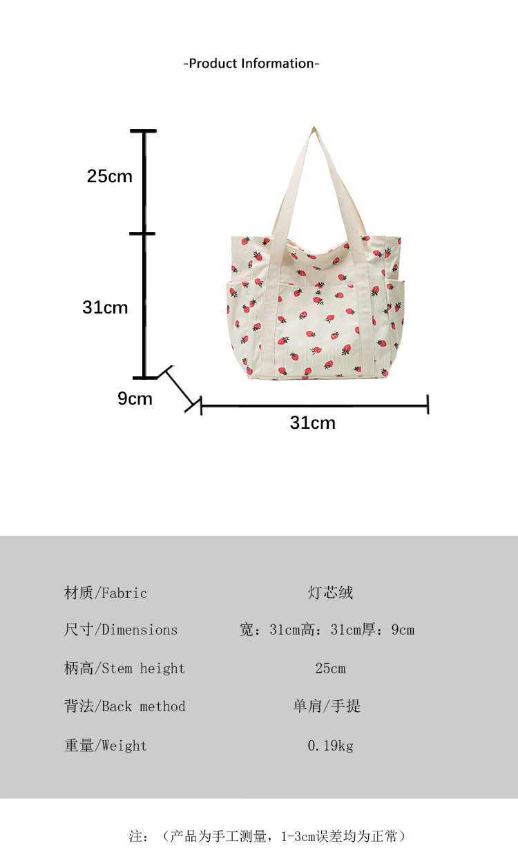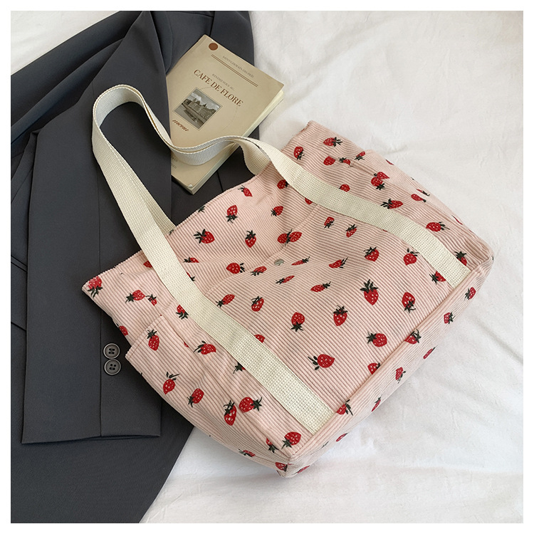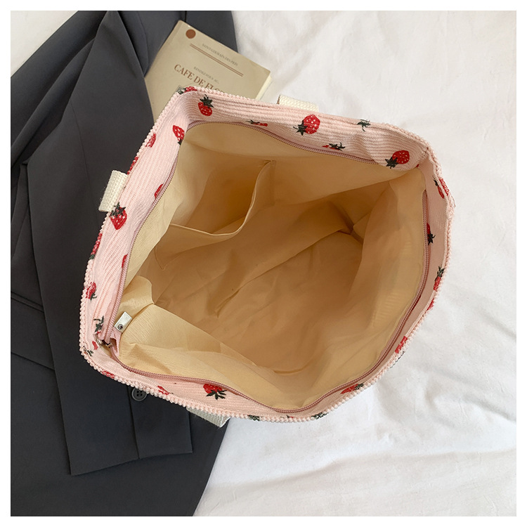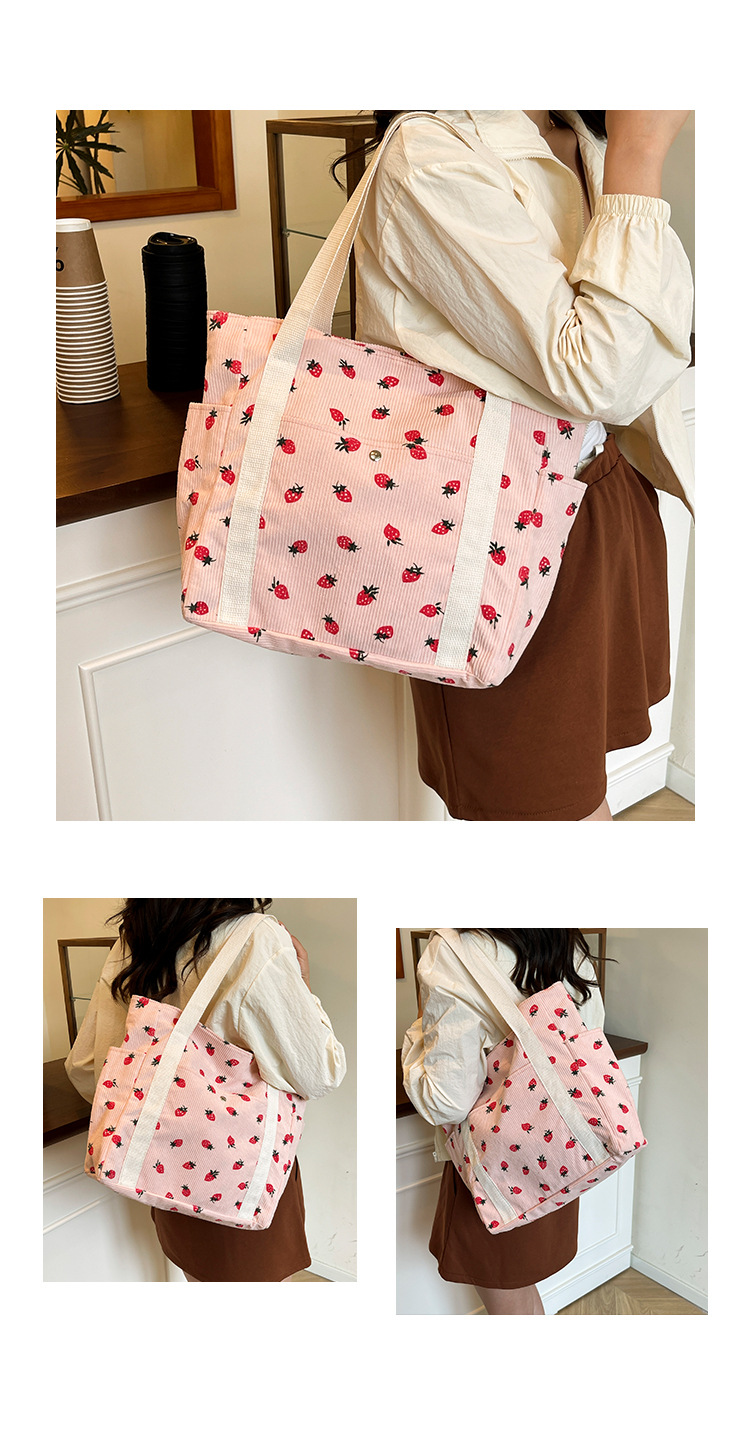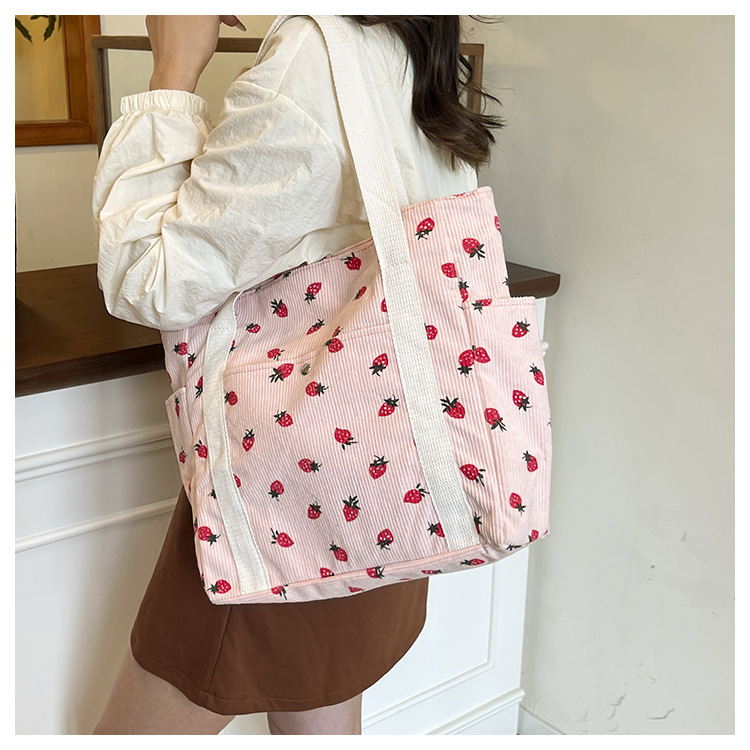 Simple Large Capacity Bag Women's 2025 New Style Fresh Strawberry Tote Bag Fashionable All-match Class Commuter Shoulder Bag