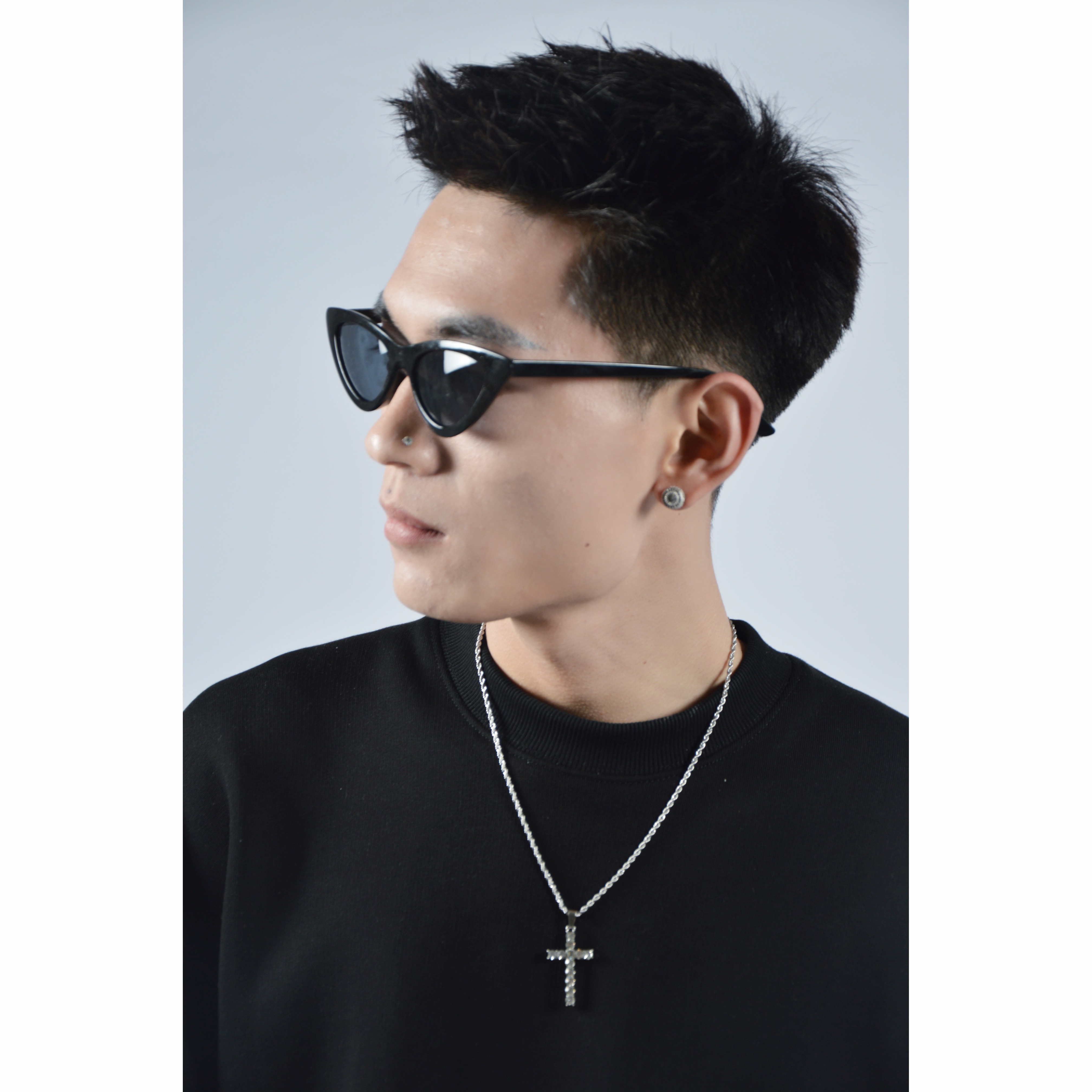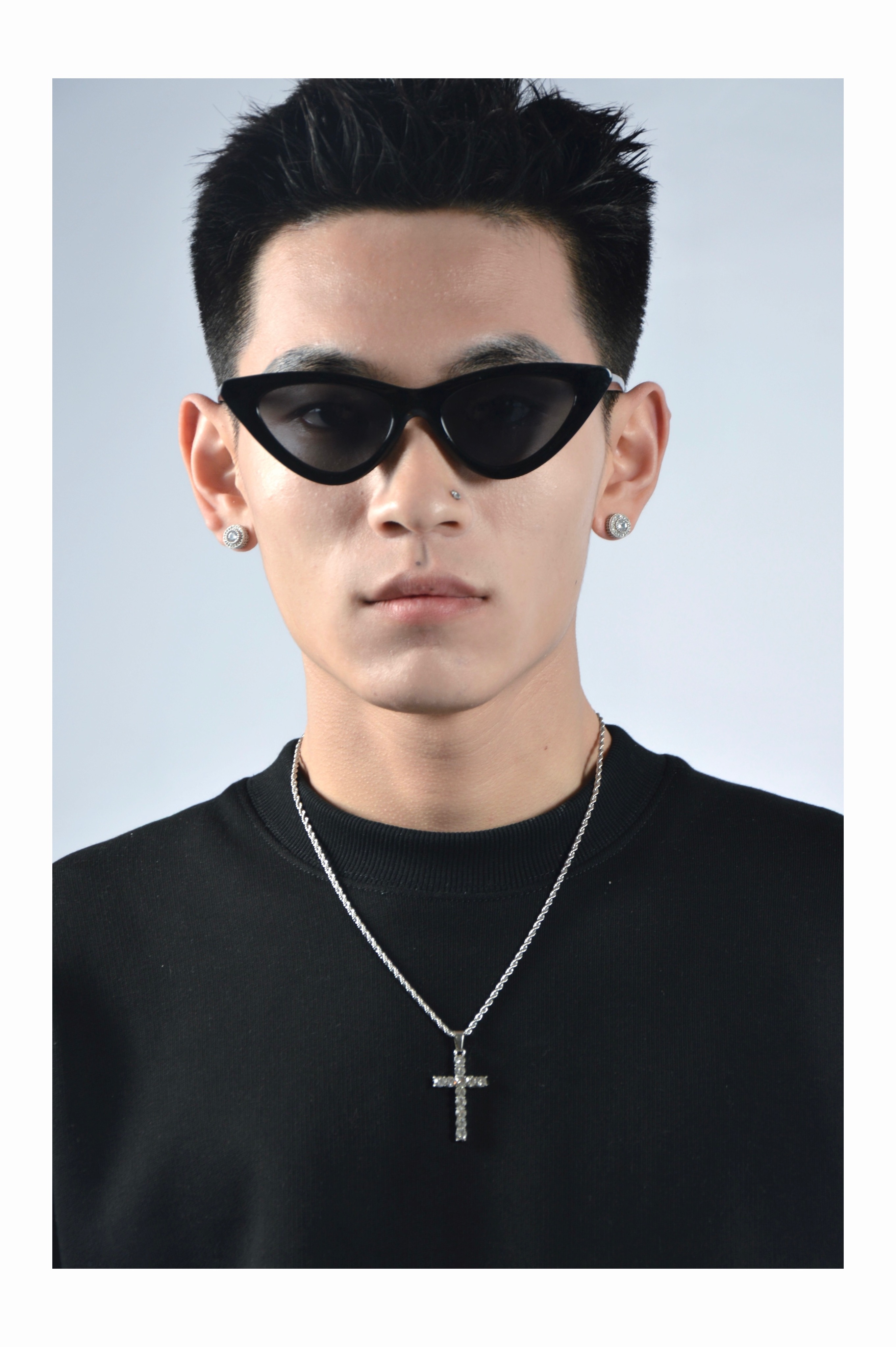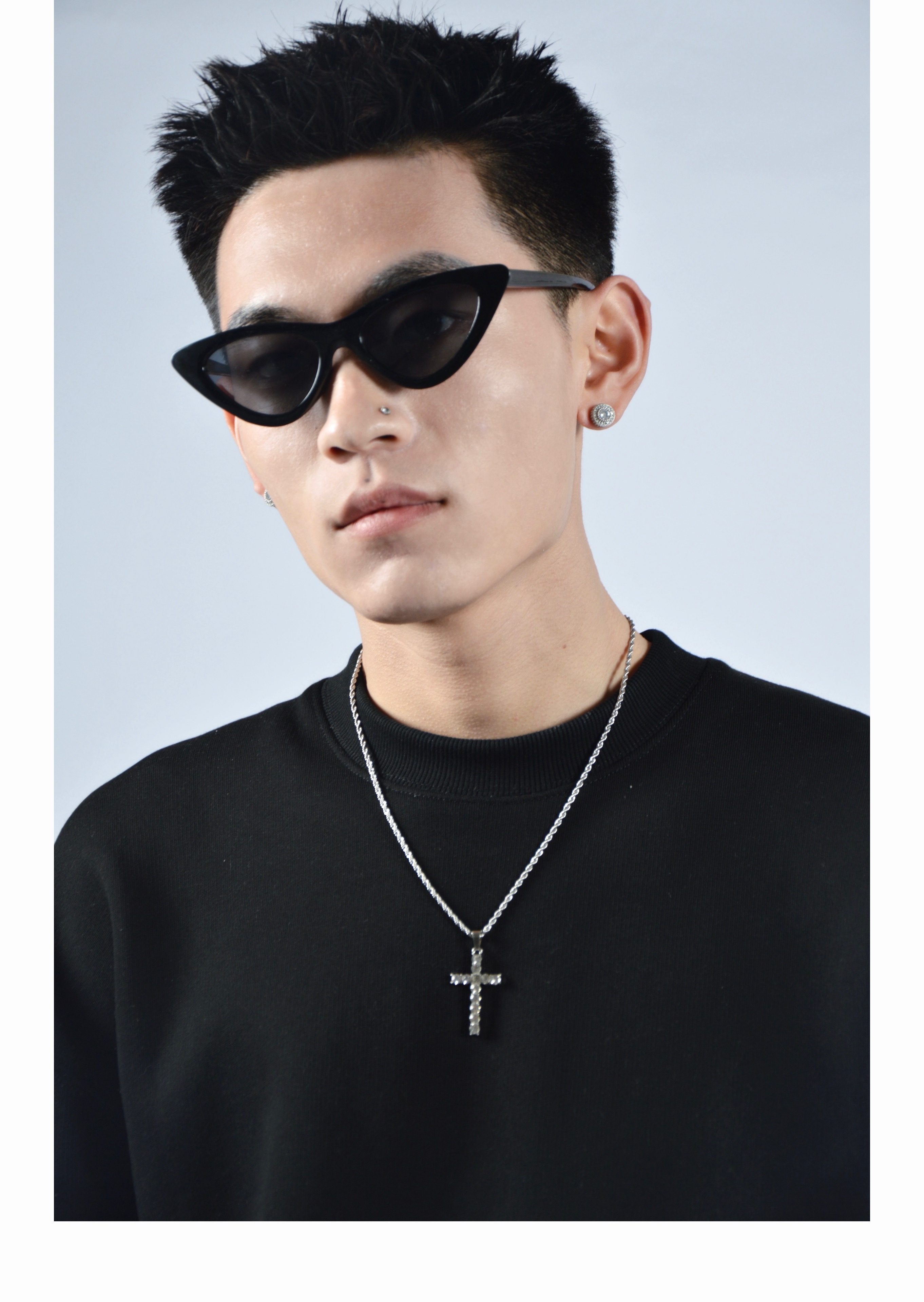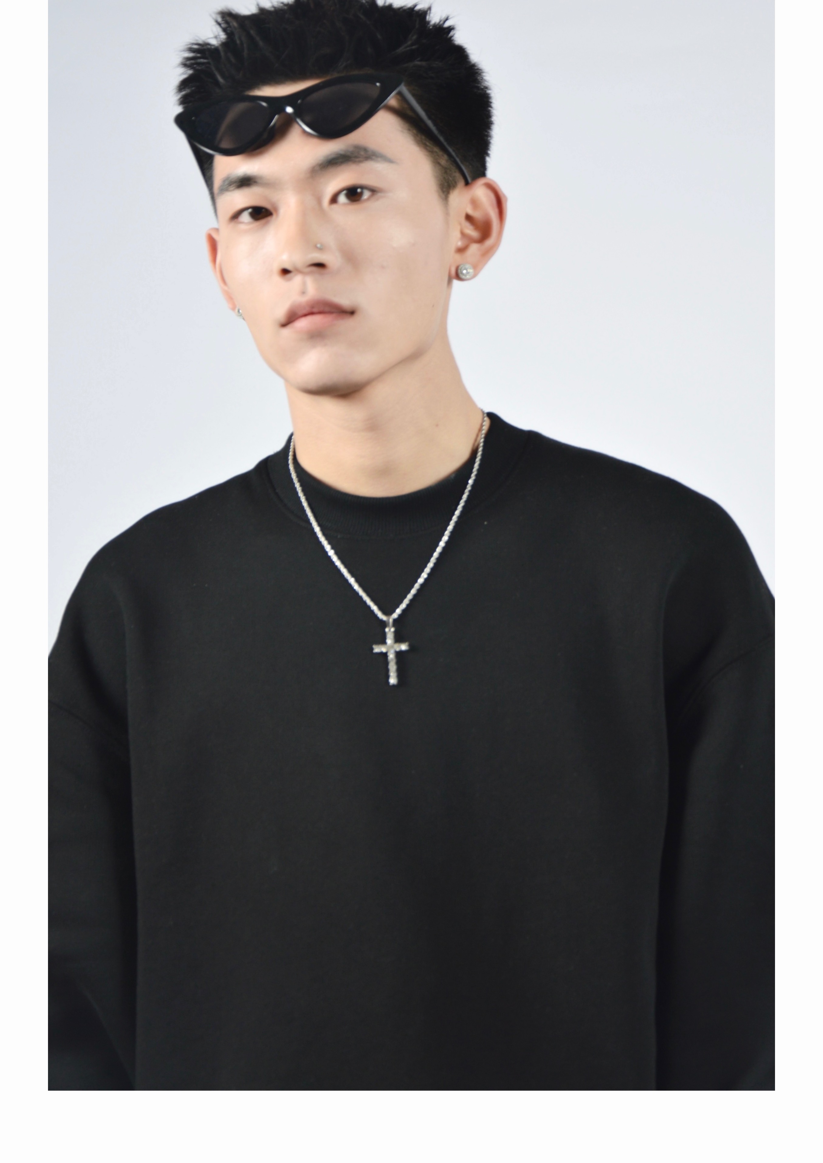 Cross-border diamond cross titanium steel necklace zircon European and American rap hip-hop men and women clavicle chain personalized sweater chain