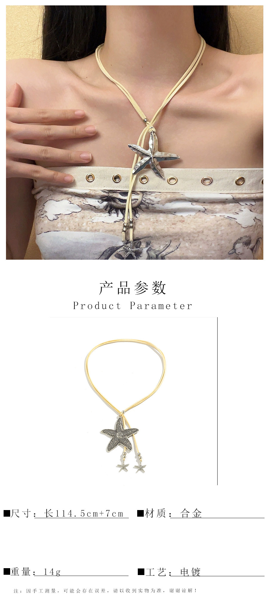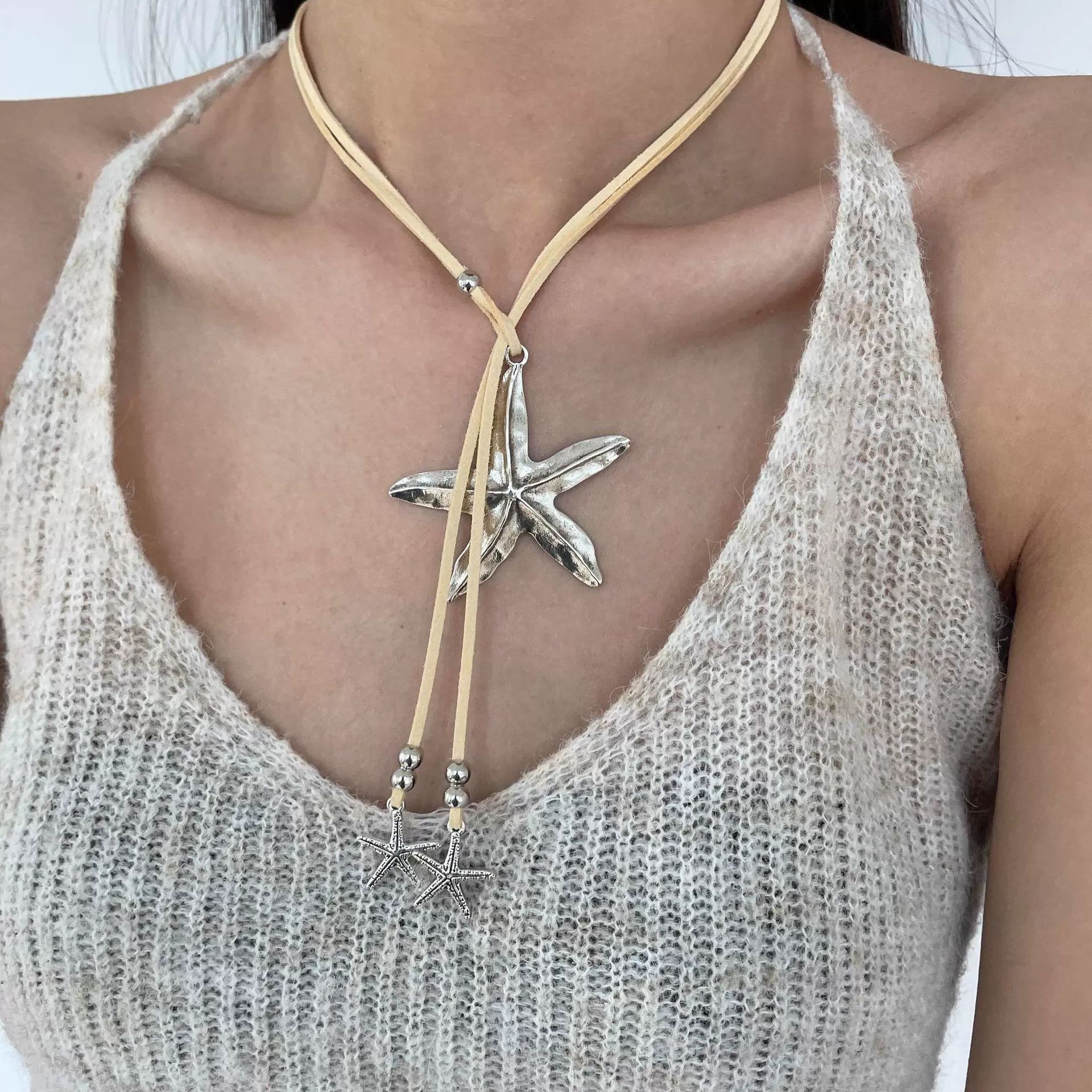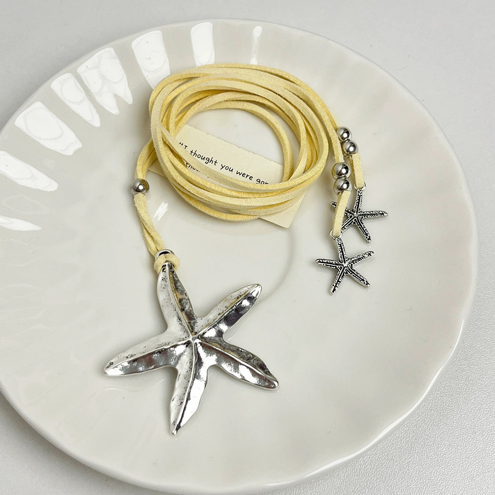 Bohemian Starfish Alloy Pendant Artistic Vintage Women's Leather Necklace Korean Velvet Lariat Necklace