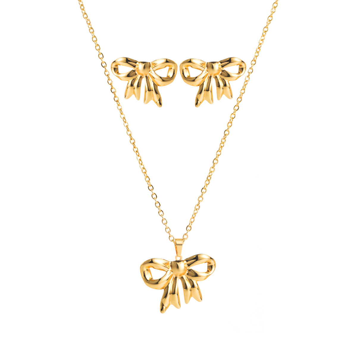 ZN0561 Cross Border Fashion Stainless Steel Jewelry suit Temperament Marine Elements Love Bow Earrings Necklace