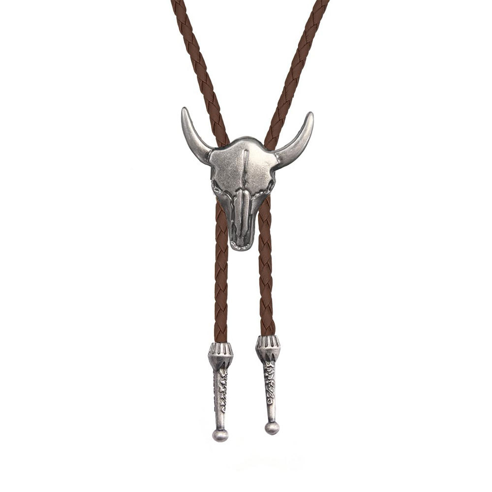 Color: Antique silver ox head - brown cord