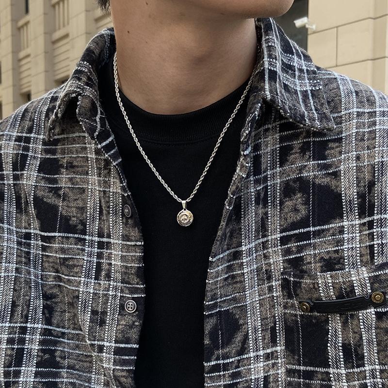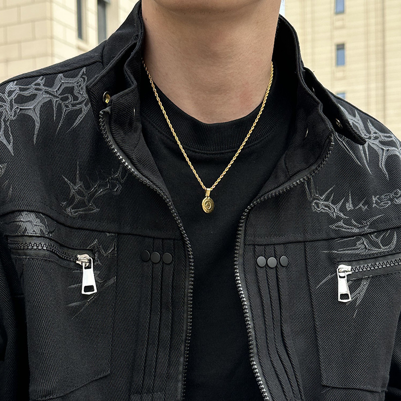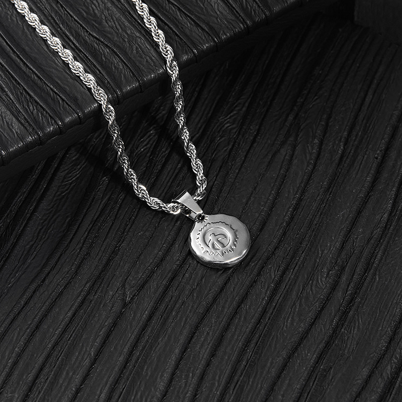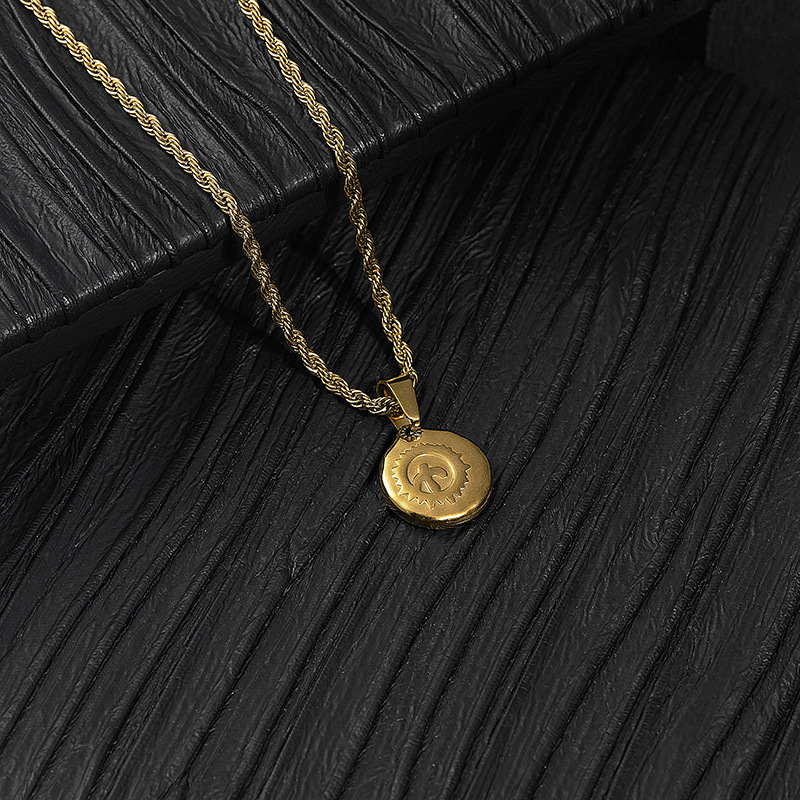 European and American gold disc twist necklace men's personality simple non-fading pendant fashion pendant chain