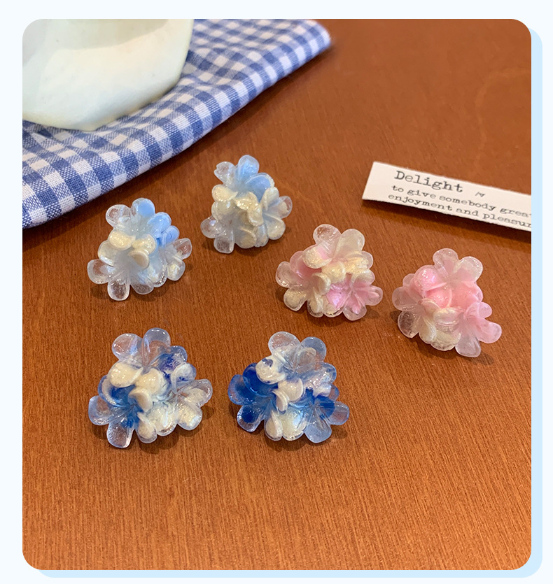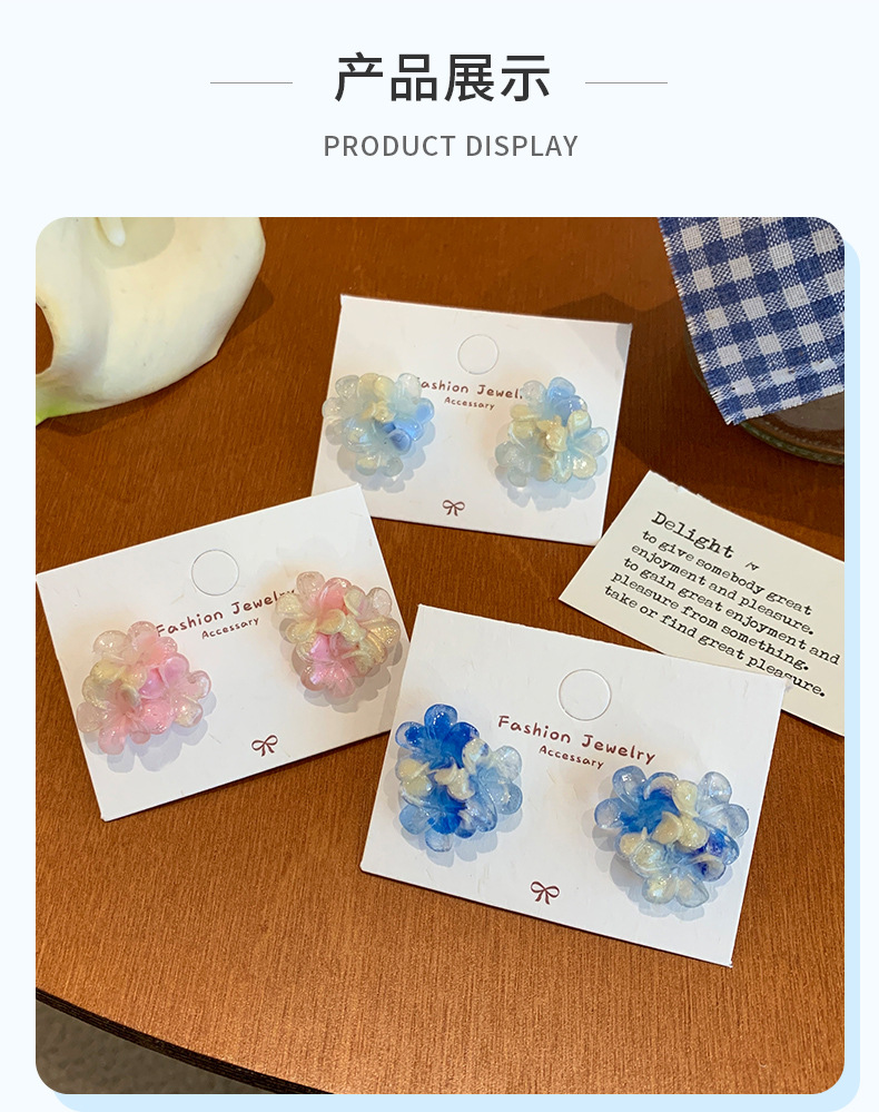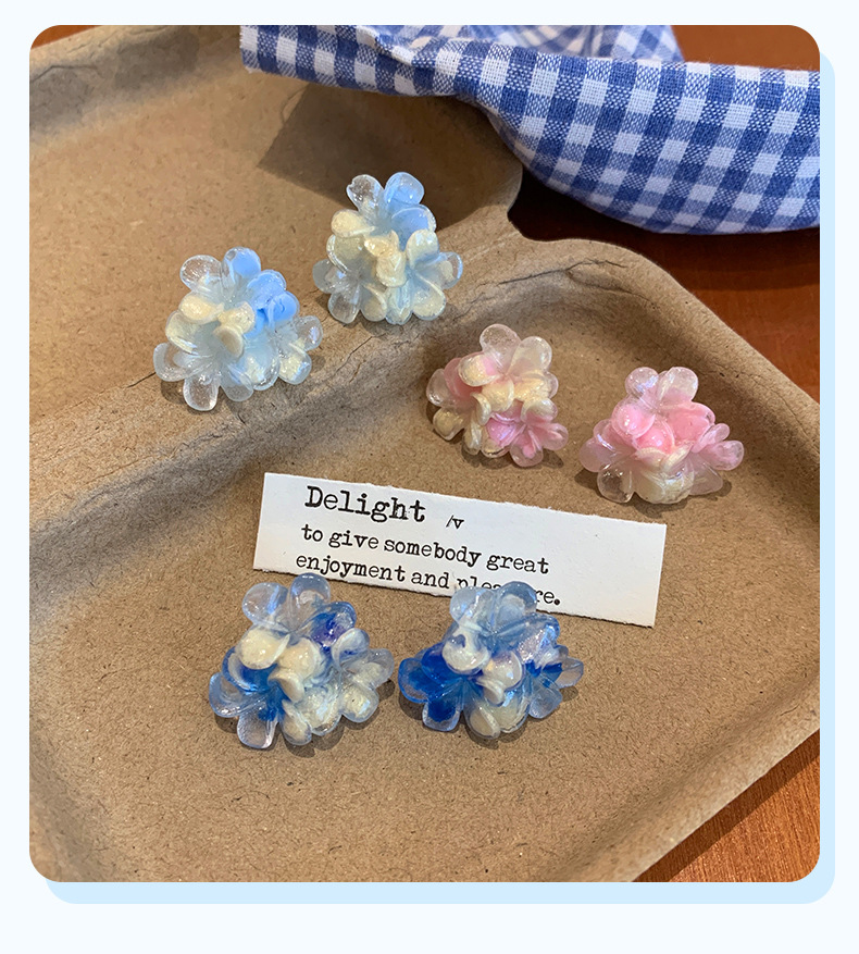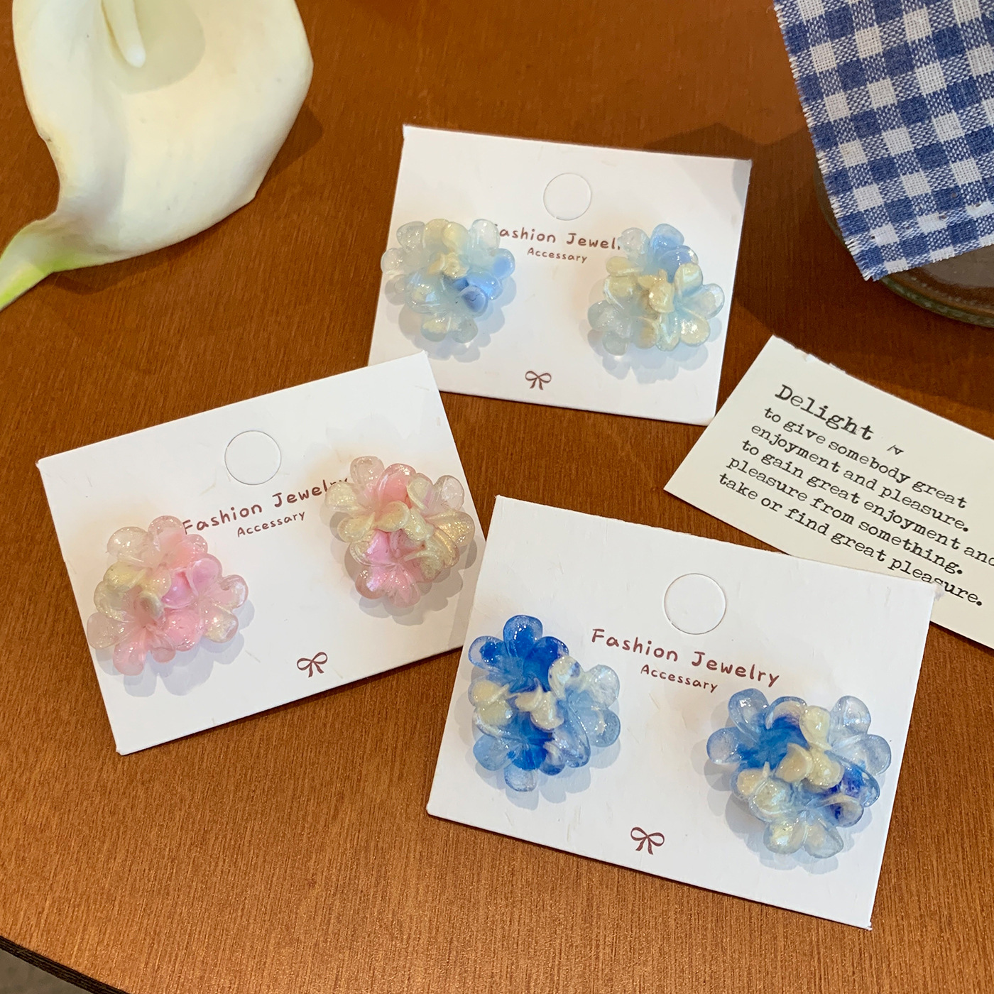 Spring and Summer Gradient Color Resin Three-petal Flower Earrings Design Niche Women's Silver Needle Mori Sweet Pastoral Earrings