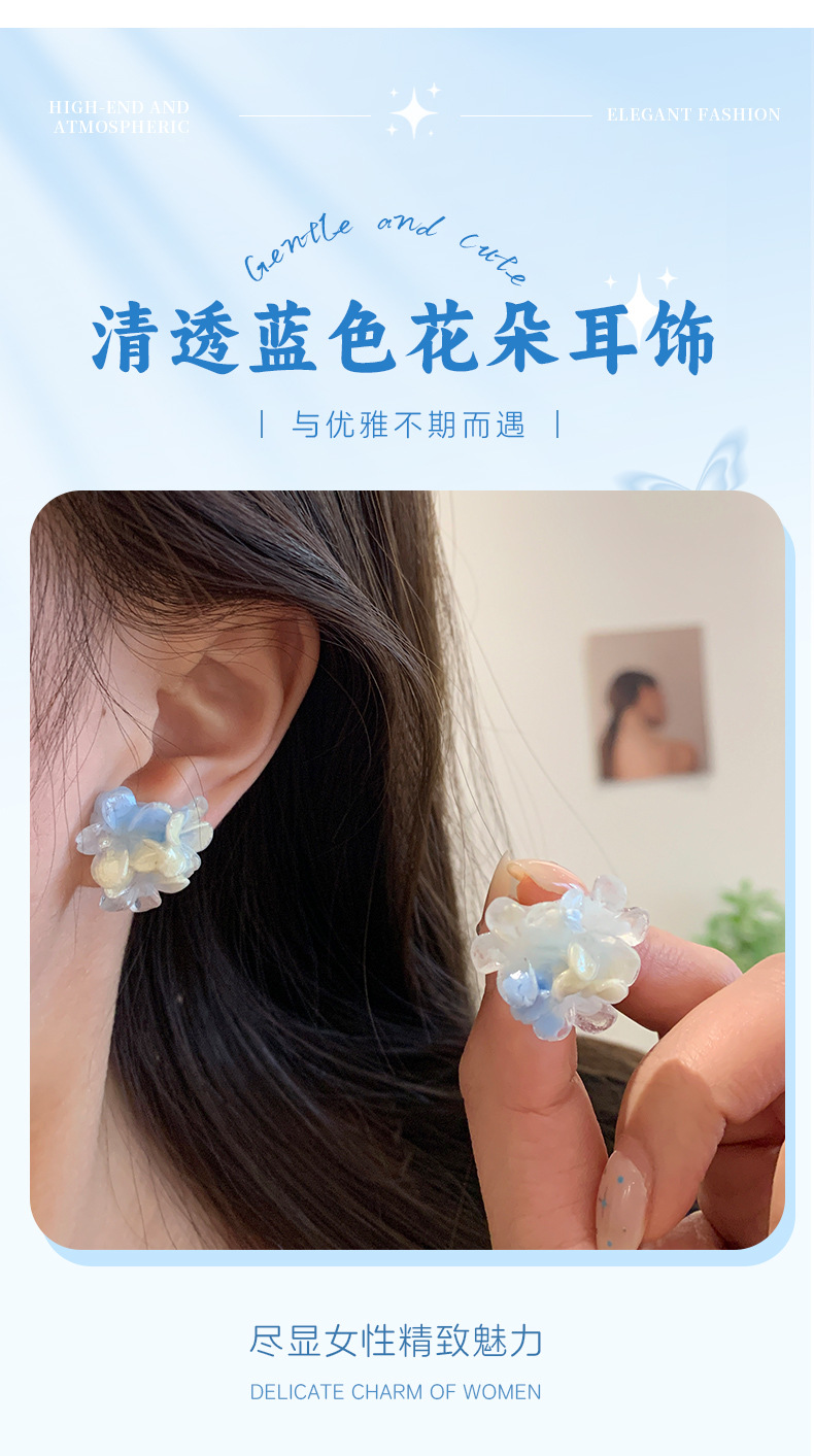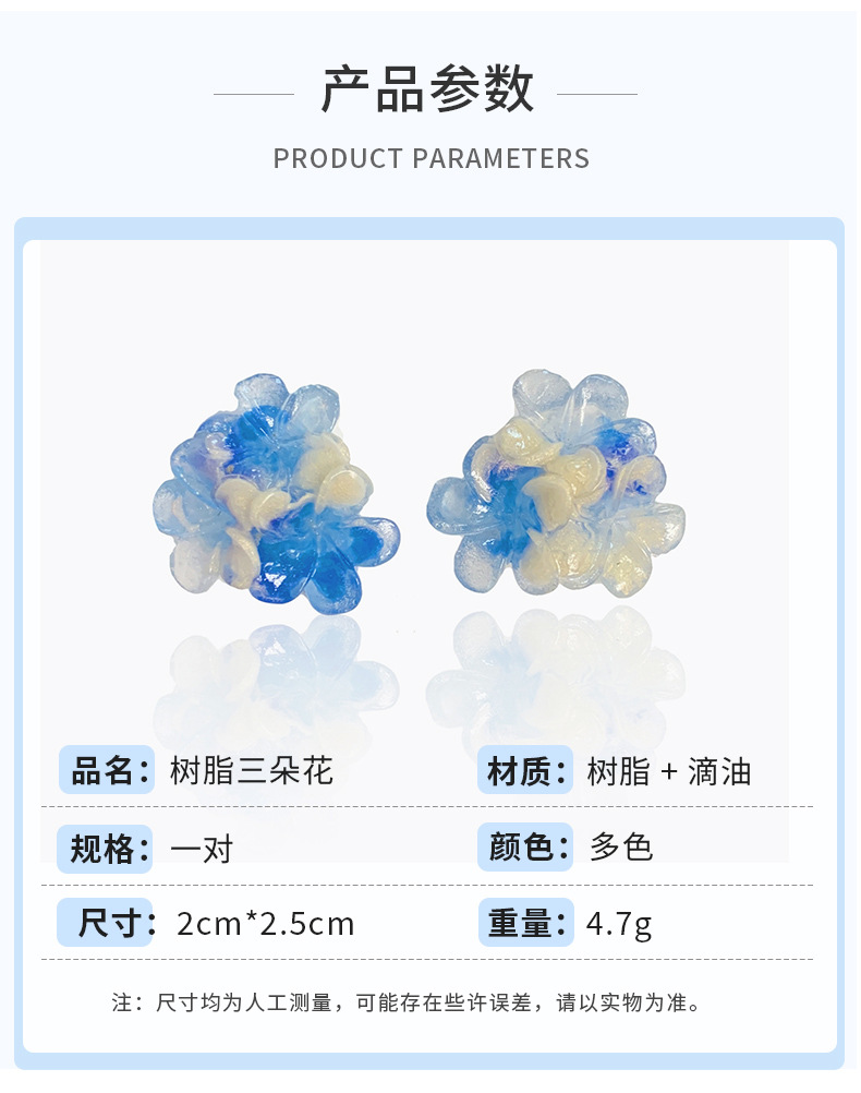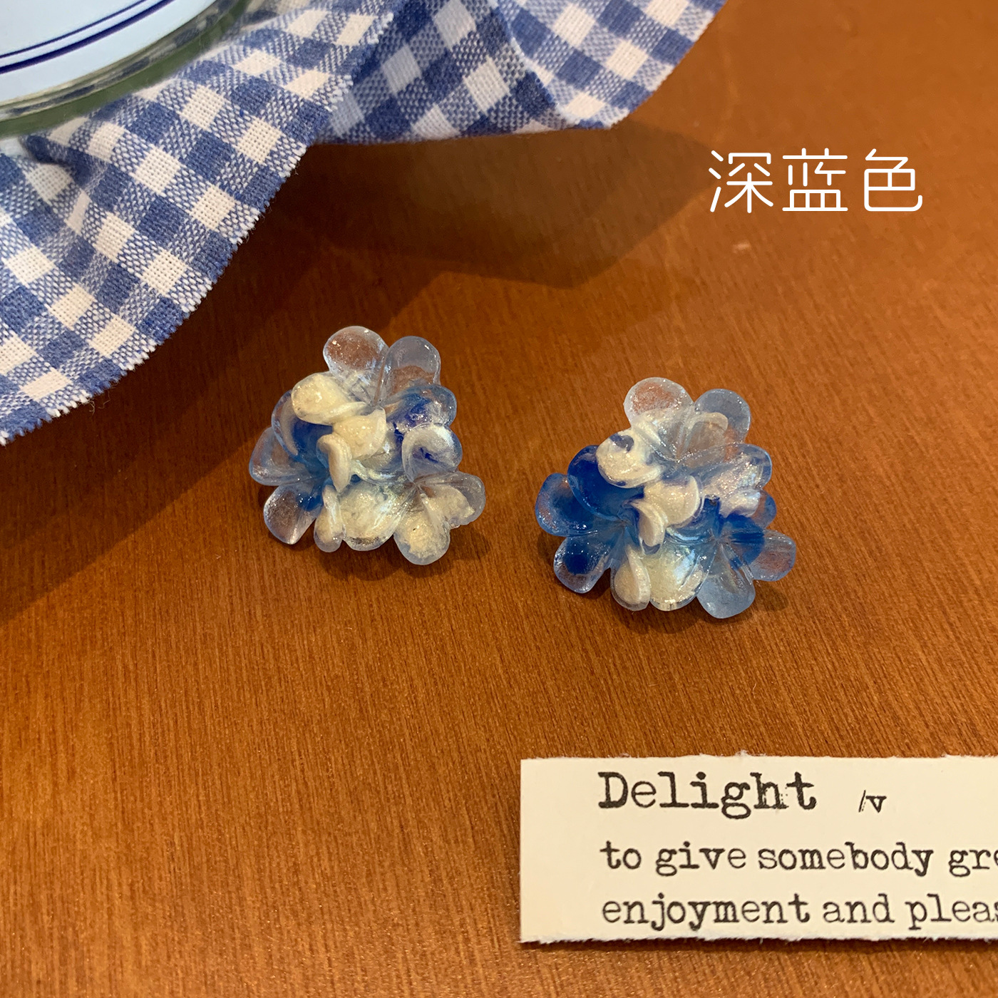 Spring and Summer Gradient Color Resin Three-petal Flower Earrings Design Niche Women's Silver Needle Mori Sweet Pastoral Earrings