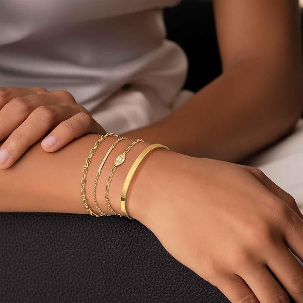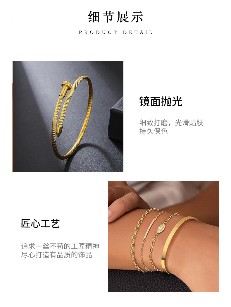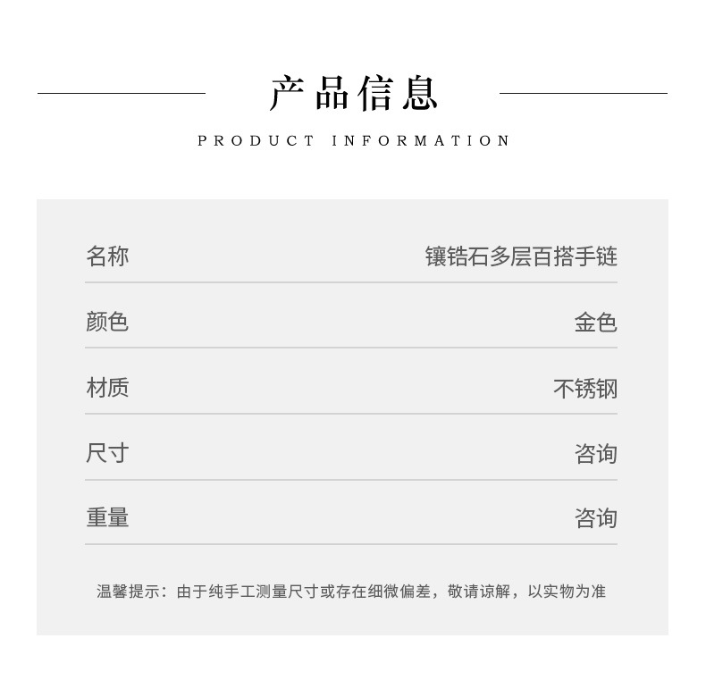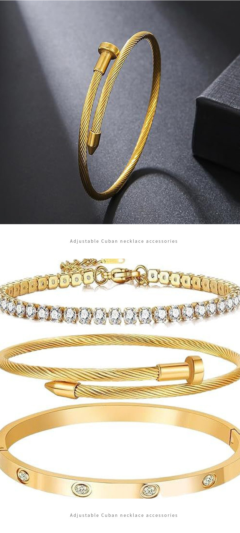 Fashion inlaid white stone claw chain simple bracelet stainless steel round bead clip bracelet female snake bone bracelet suit