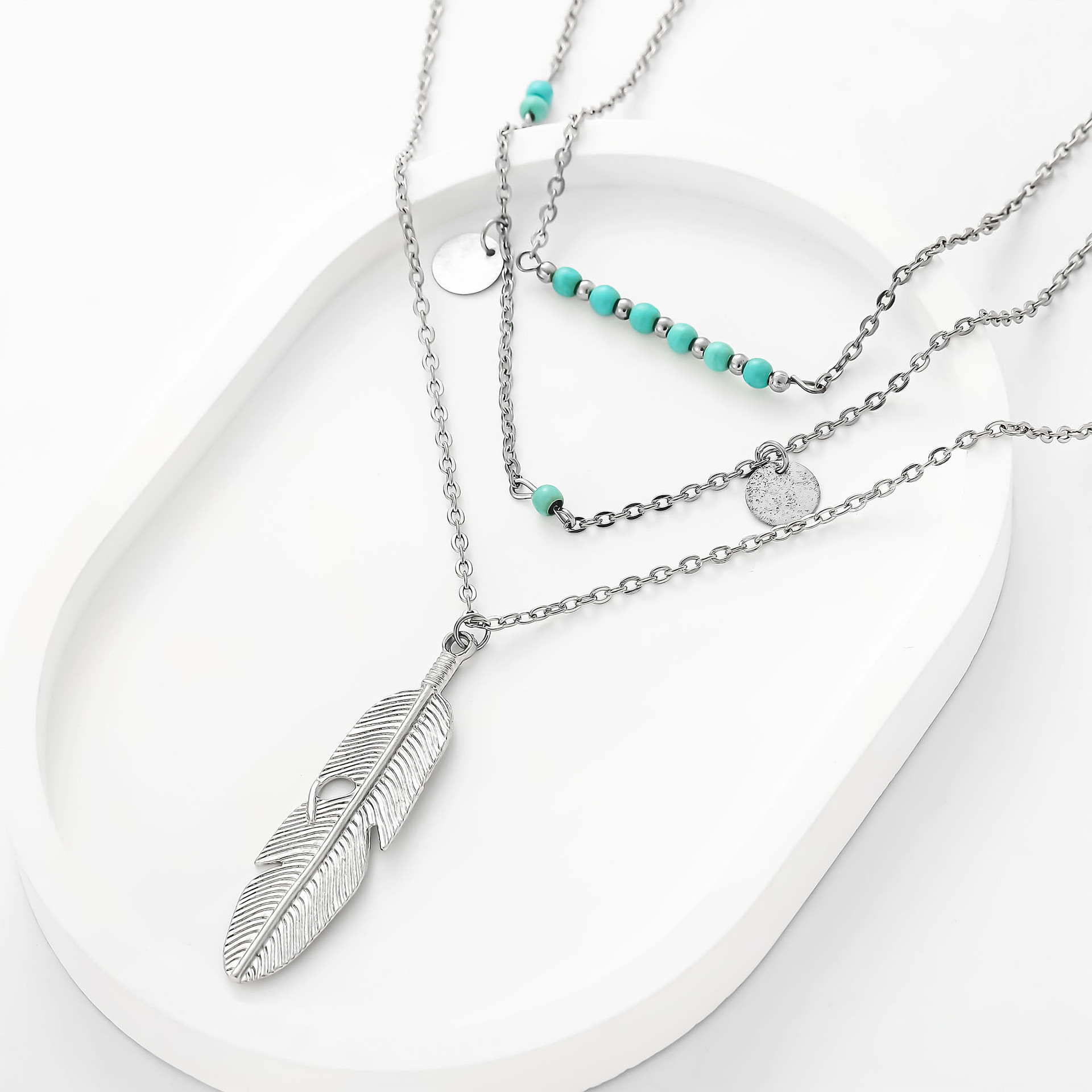 Foreign Trade Cross-border Promotion Multi-layer Necklace Europe and America Retro Bohemian Feather Pendant 3-layer Necklace Necklace Wholesale