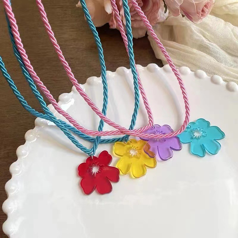 Cute Contrast Color Flower Collarbone Necklace Color Twist String Acrylic Flower Pendant Necklace Holiday Style Photo