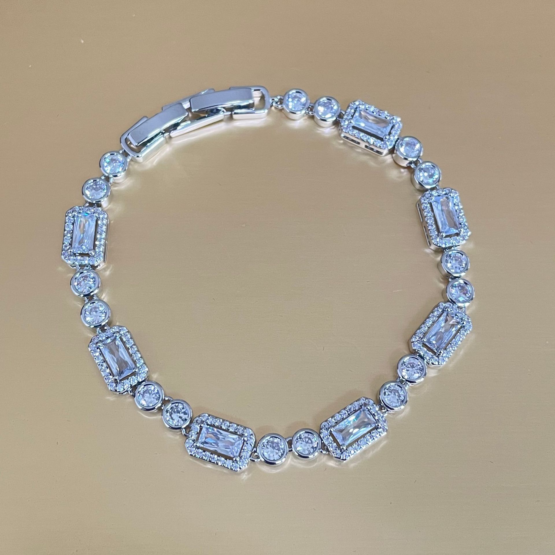 Color: White gold full diamond zircon geometric bracelet