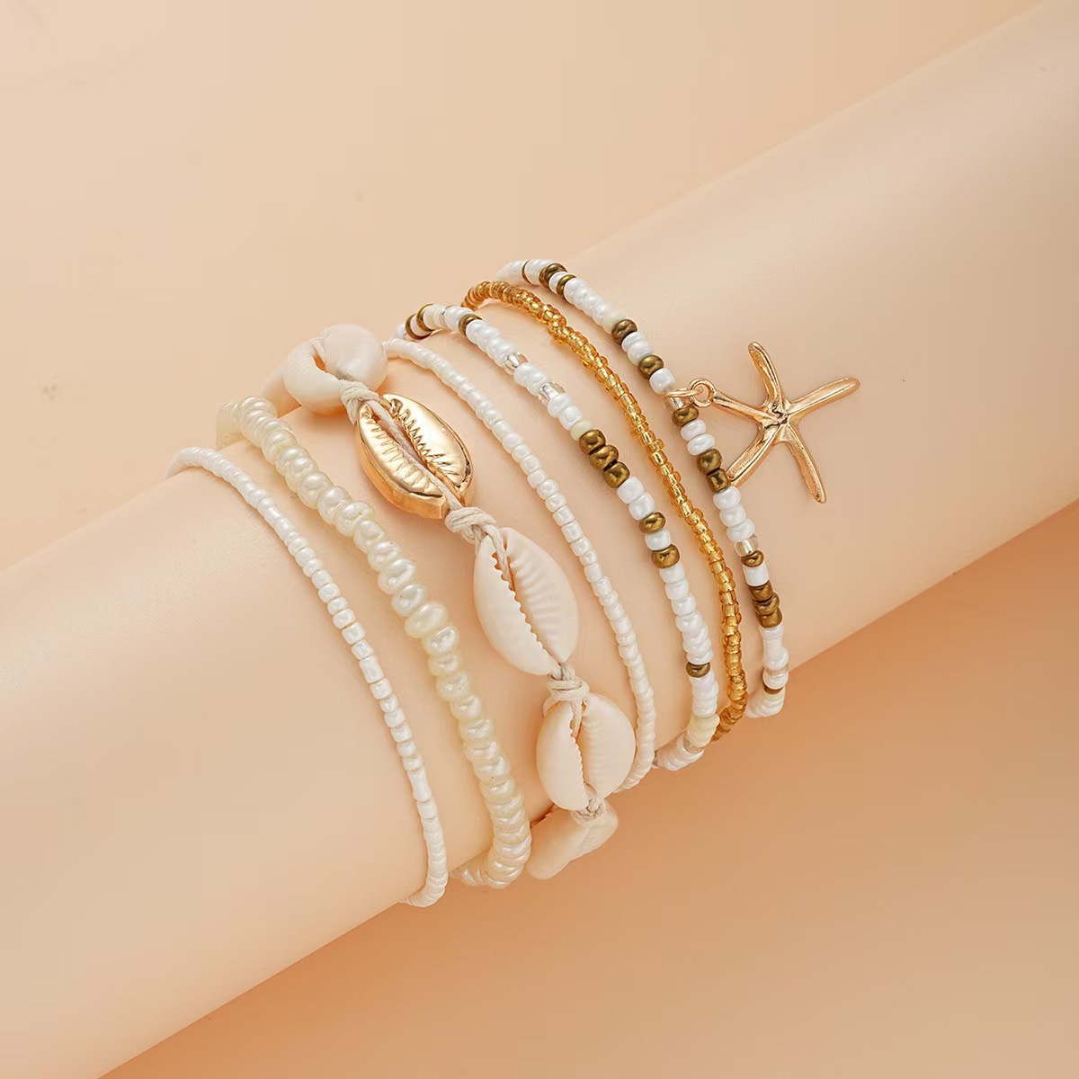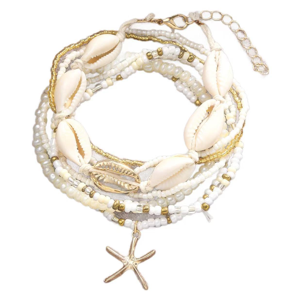 Europe and the United States hot jewelry Hawaii beach wind shell seven-piece foot decoration woven anklet suit wholesale