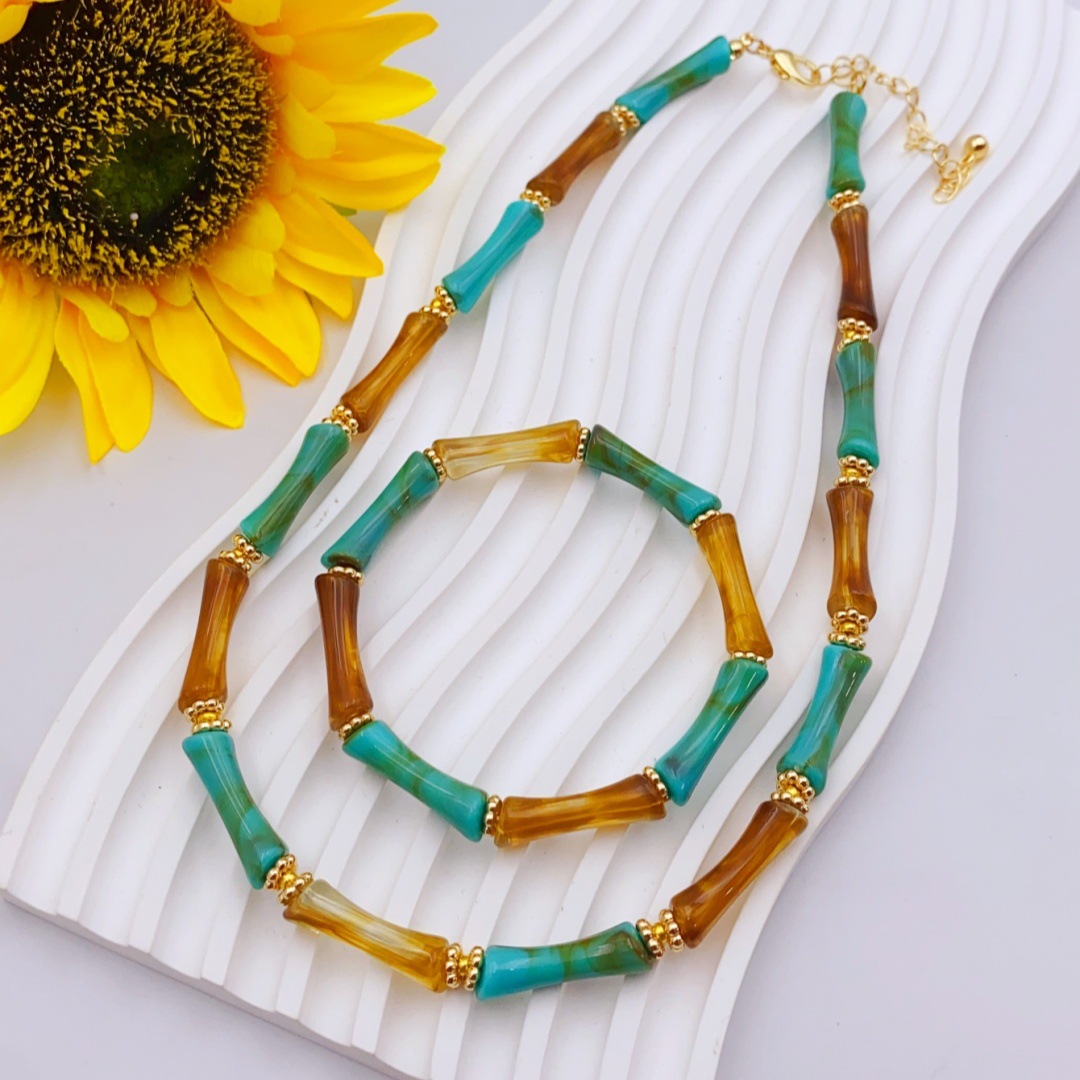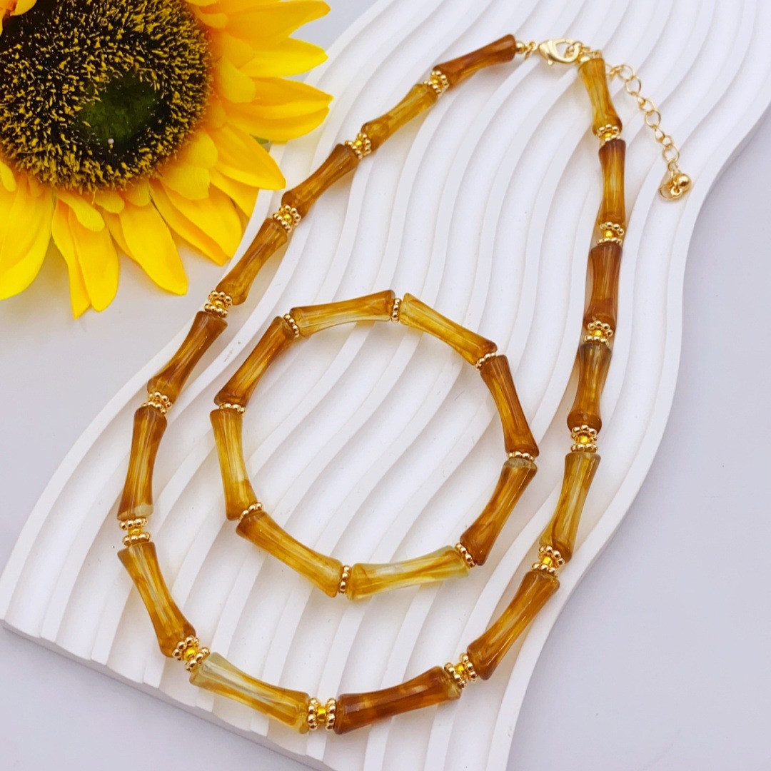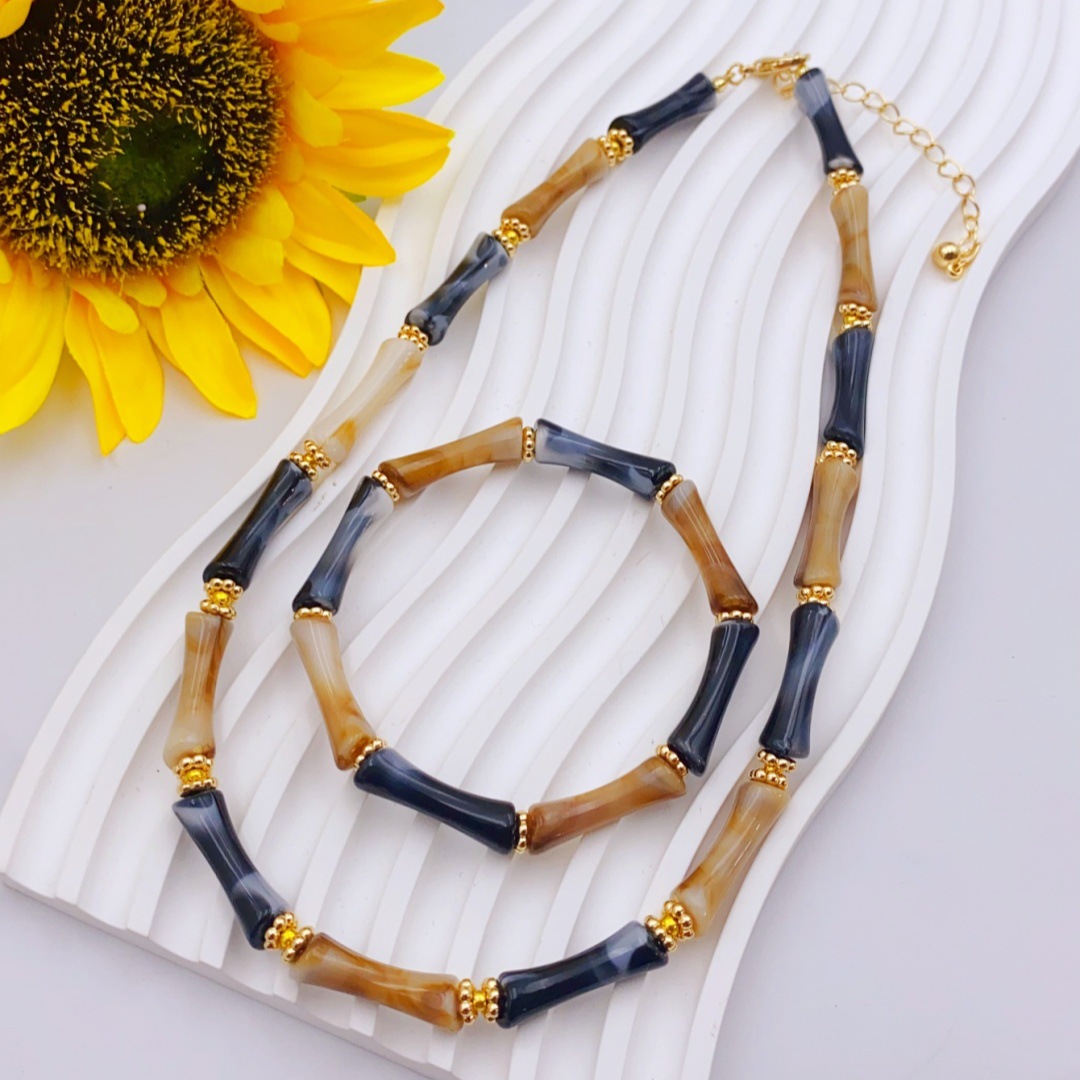 Amazon Cross-Border Acrylic Bamboo Necklace Bracelet Set Fashion Personality Trendy Women's Necklace Factory Wholesale