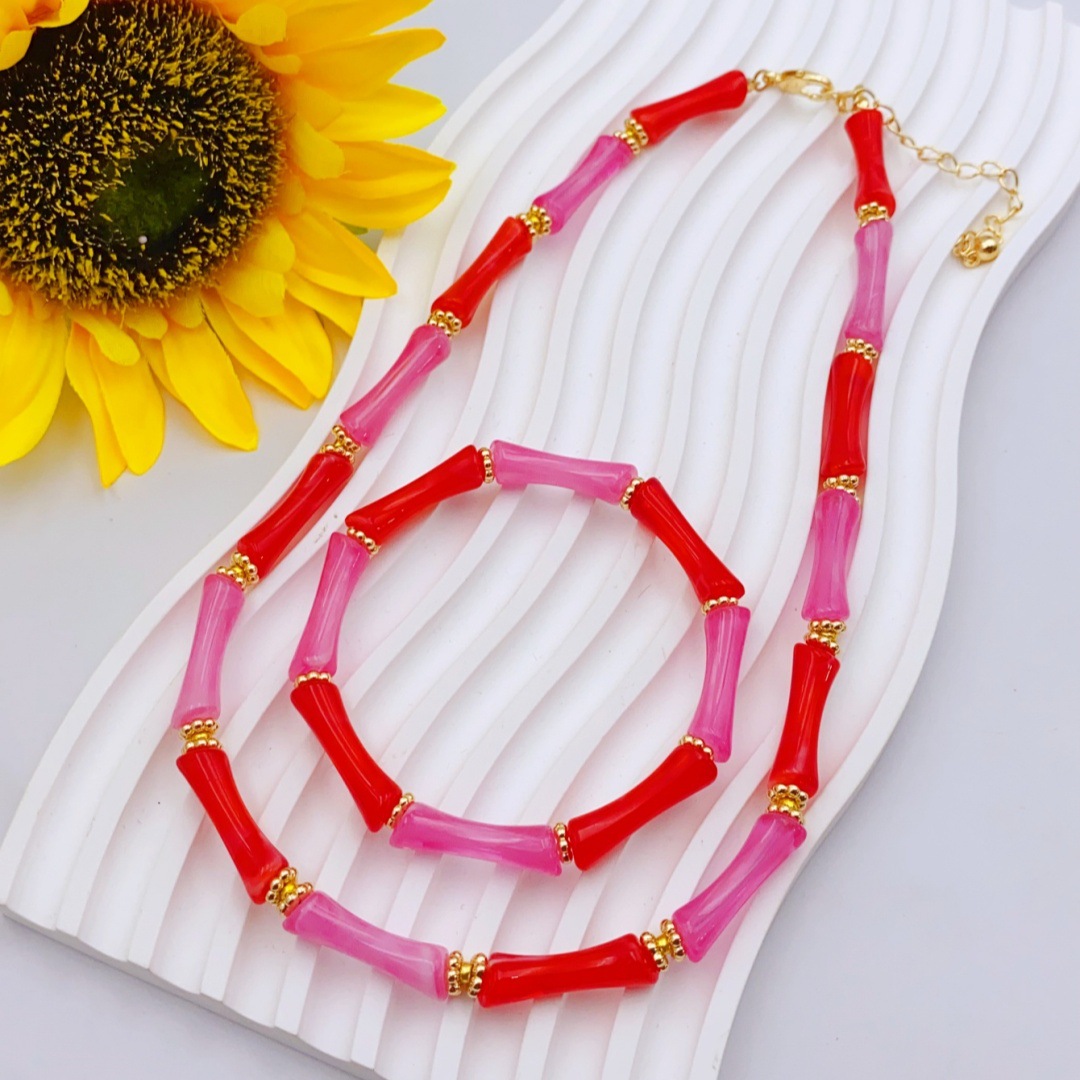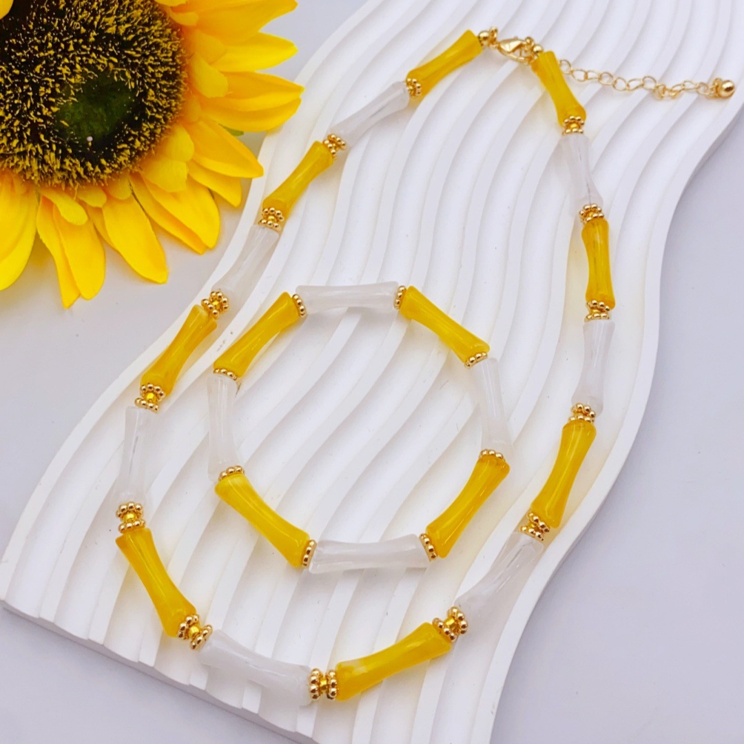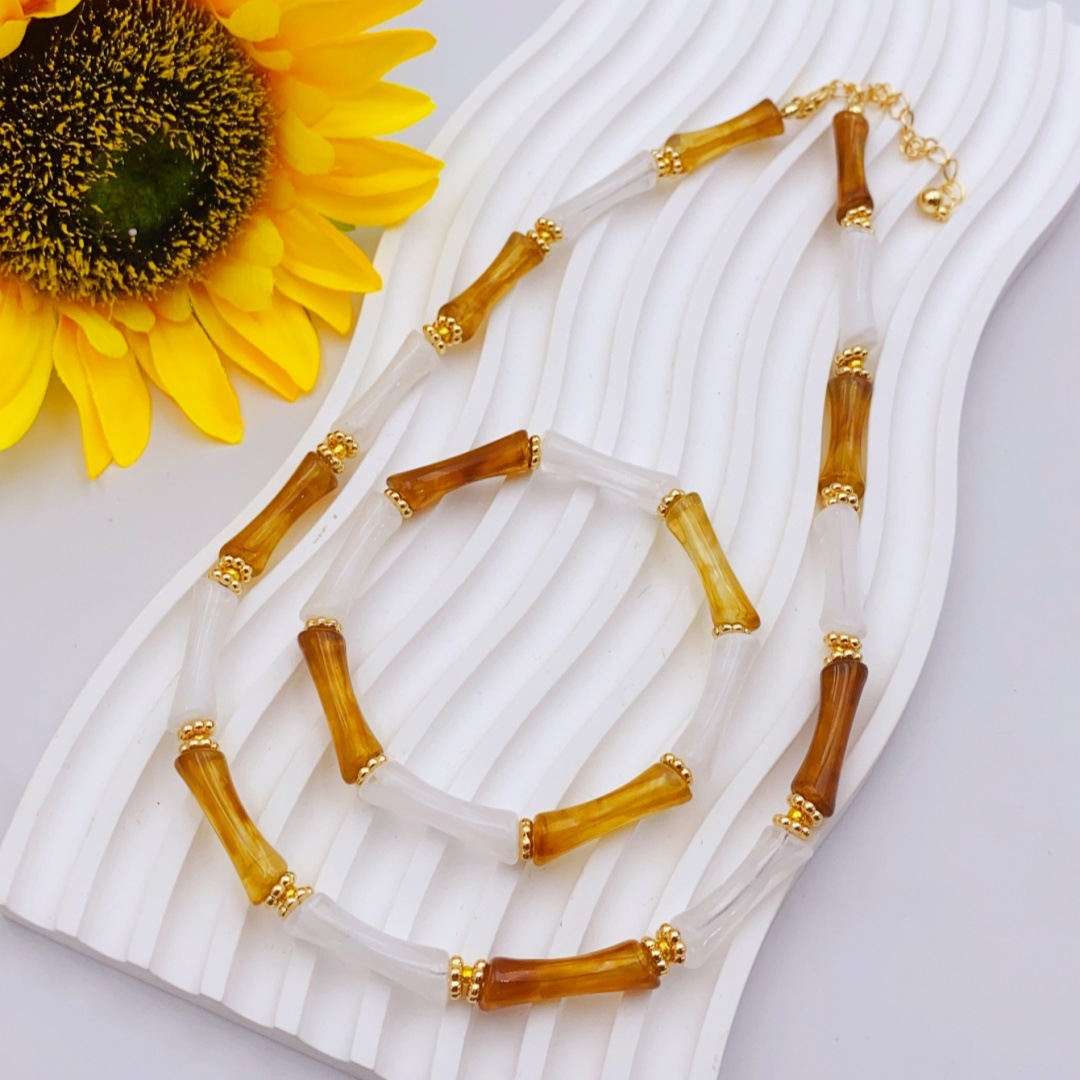 Amazon Cross-Border Acrylic Bamboo Necklace Bracelet Set Fashion Personality Trendy Women's Necklace Factory Wholesale