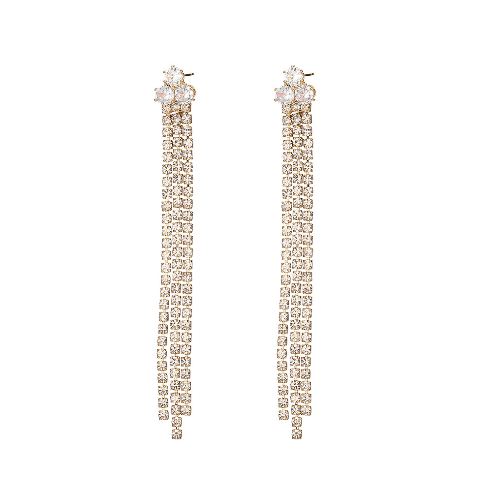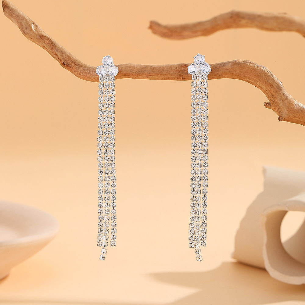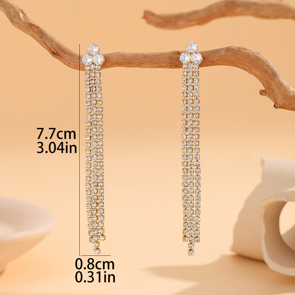 European and American Cross-border Jewelry Tassel Diamond Tassel Earrings High-end Light Luxury Elegant Full Diamond Rhinestone Earrings for Women