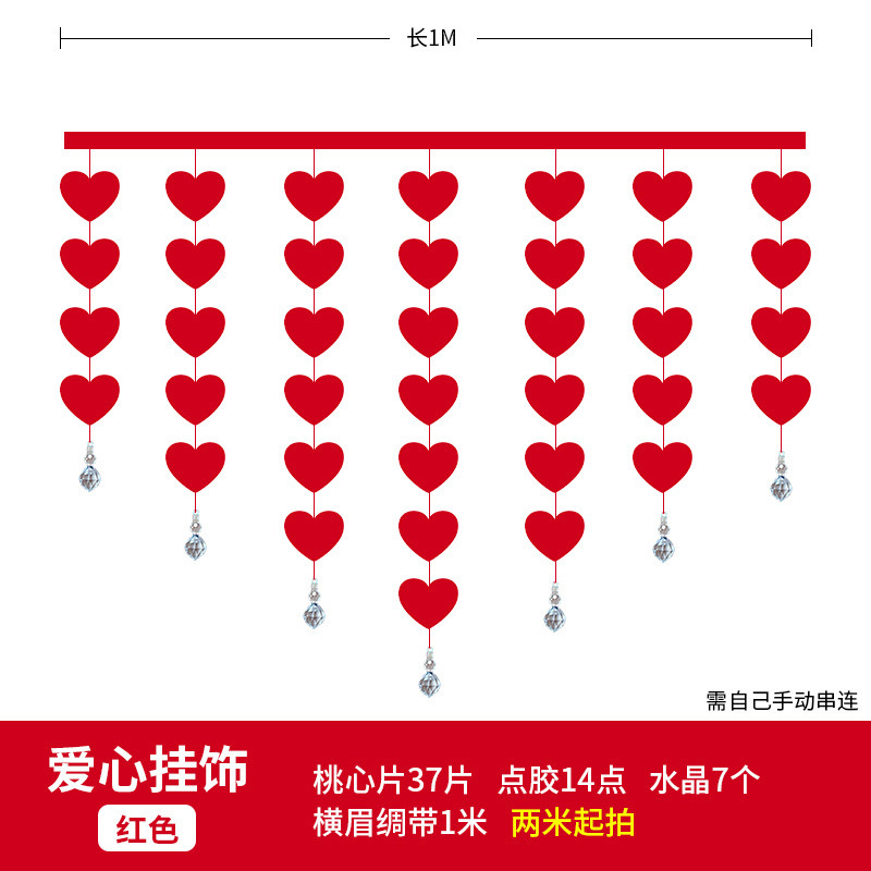 DIY Red Heart Pendant Jewelry Store Creative Decoration Anniversary Store Celebration Event Ceiling Crystal Curtain