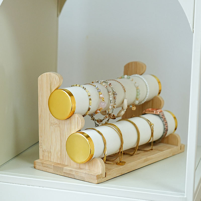 Color: Bamboo wood detachable double-layer bracelet stand (rice velvet)