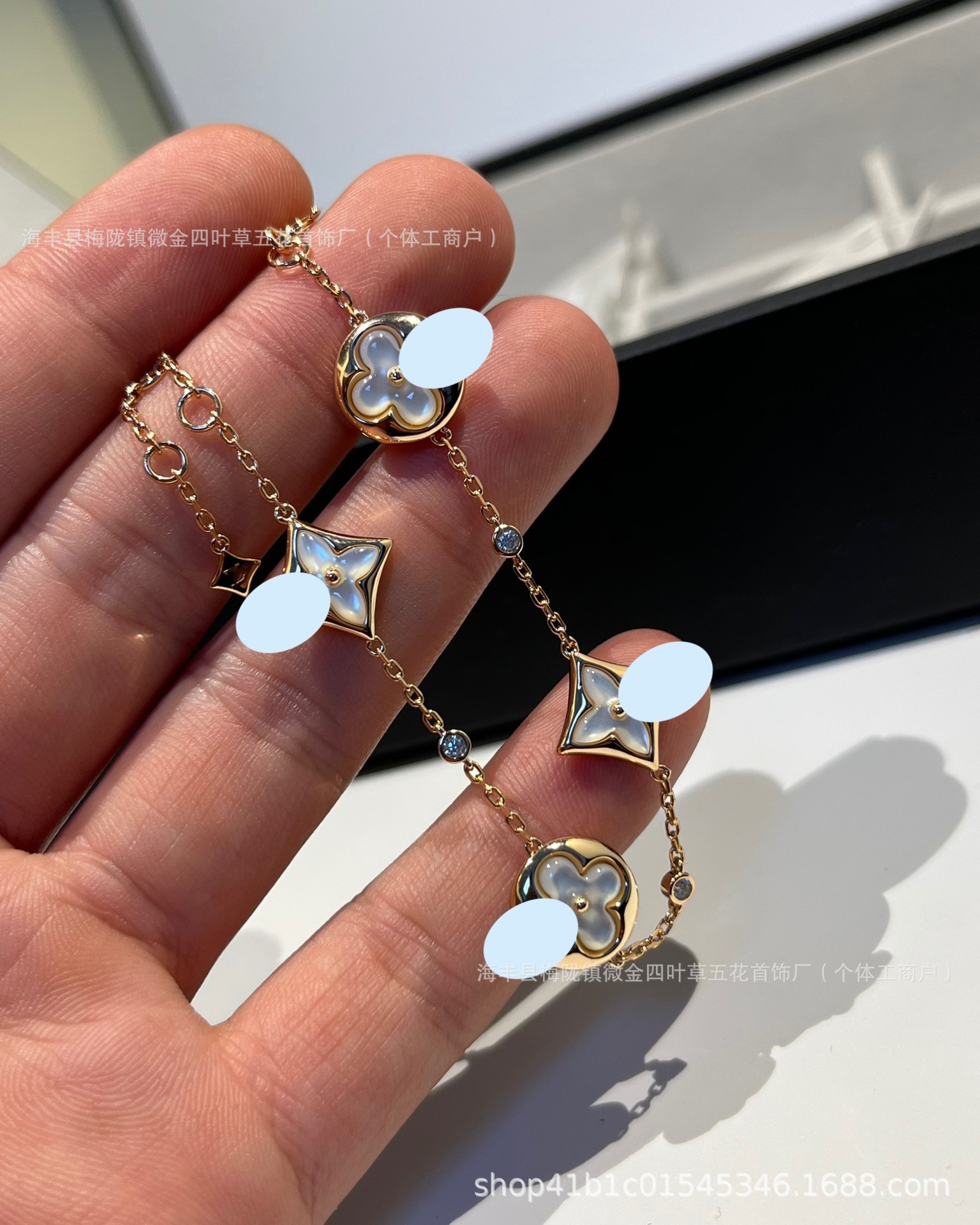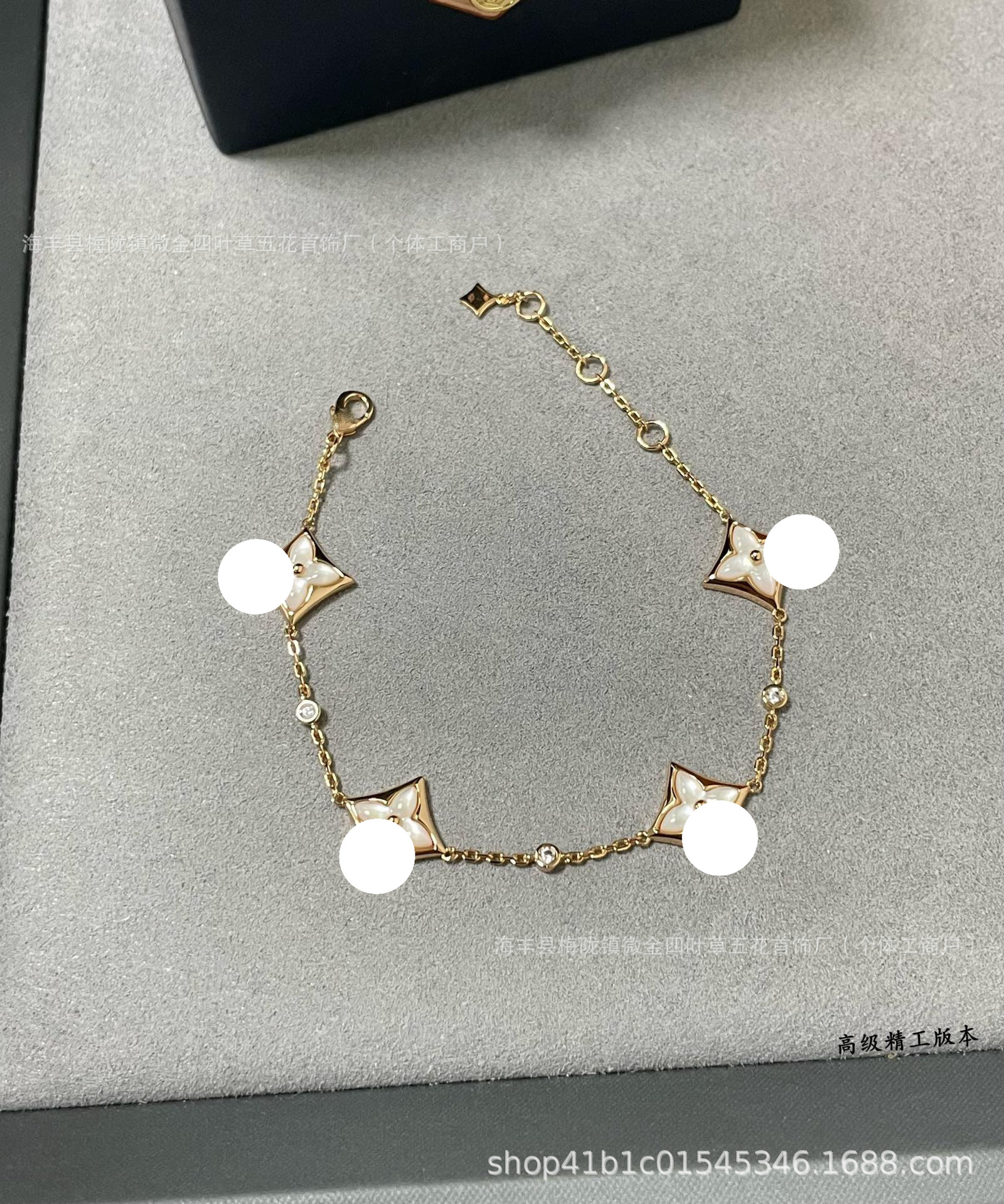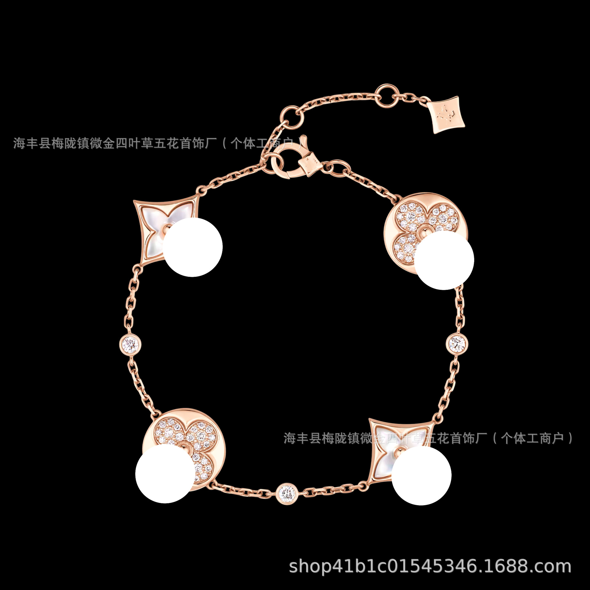Color: Diamond-shaped white mother-of-pearl four-flower bracelet