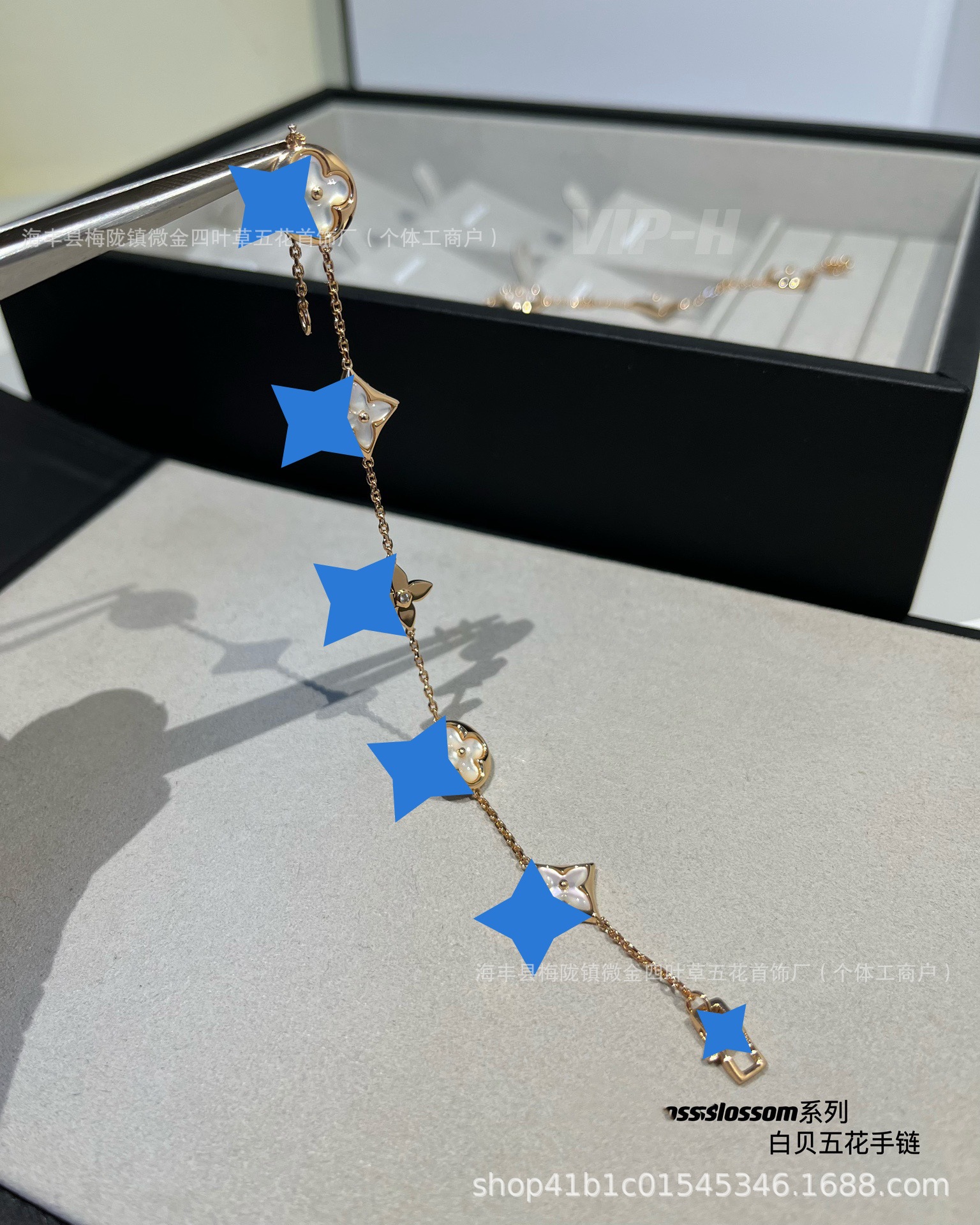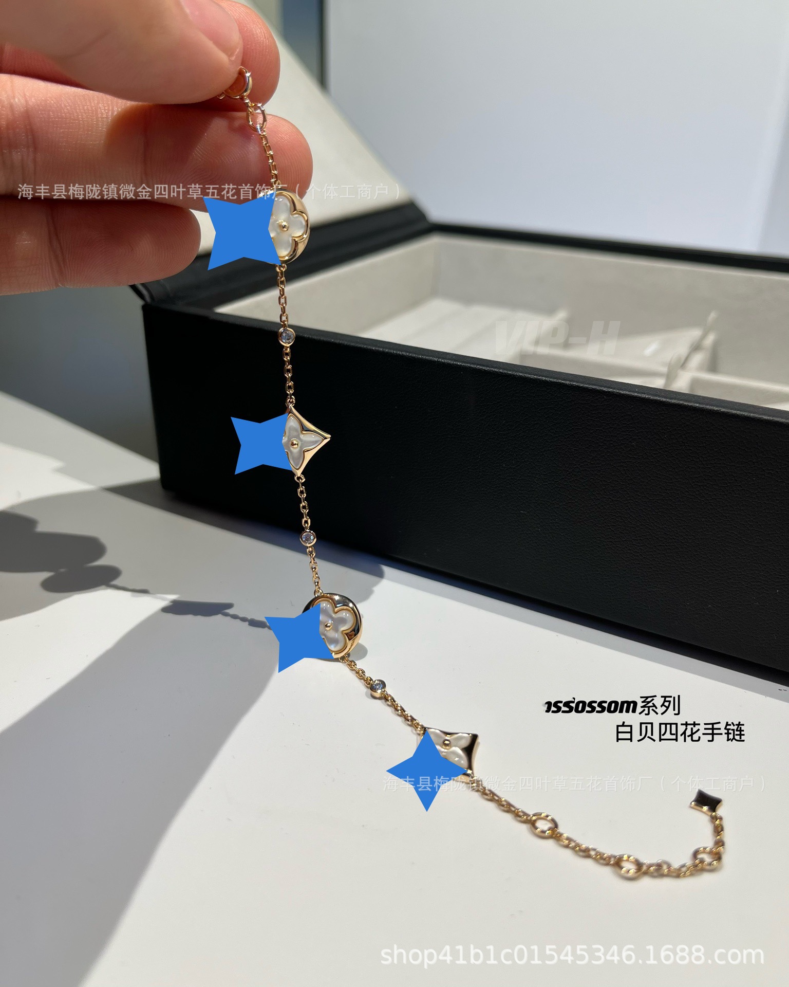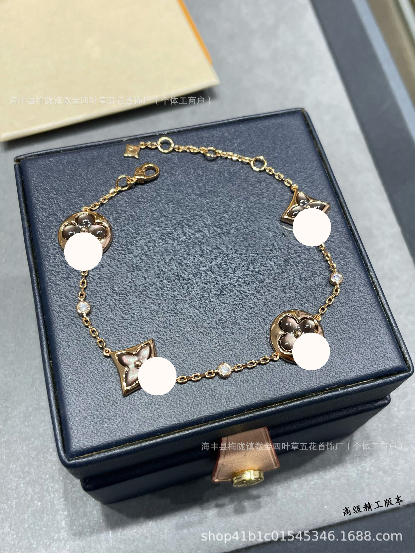 Color: Diamond-shaped white mother-of-pearl four-flower bracelet
