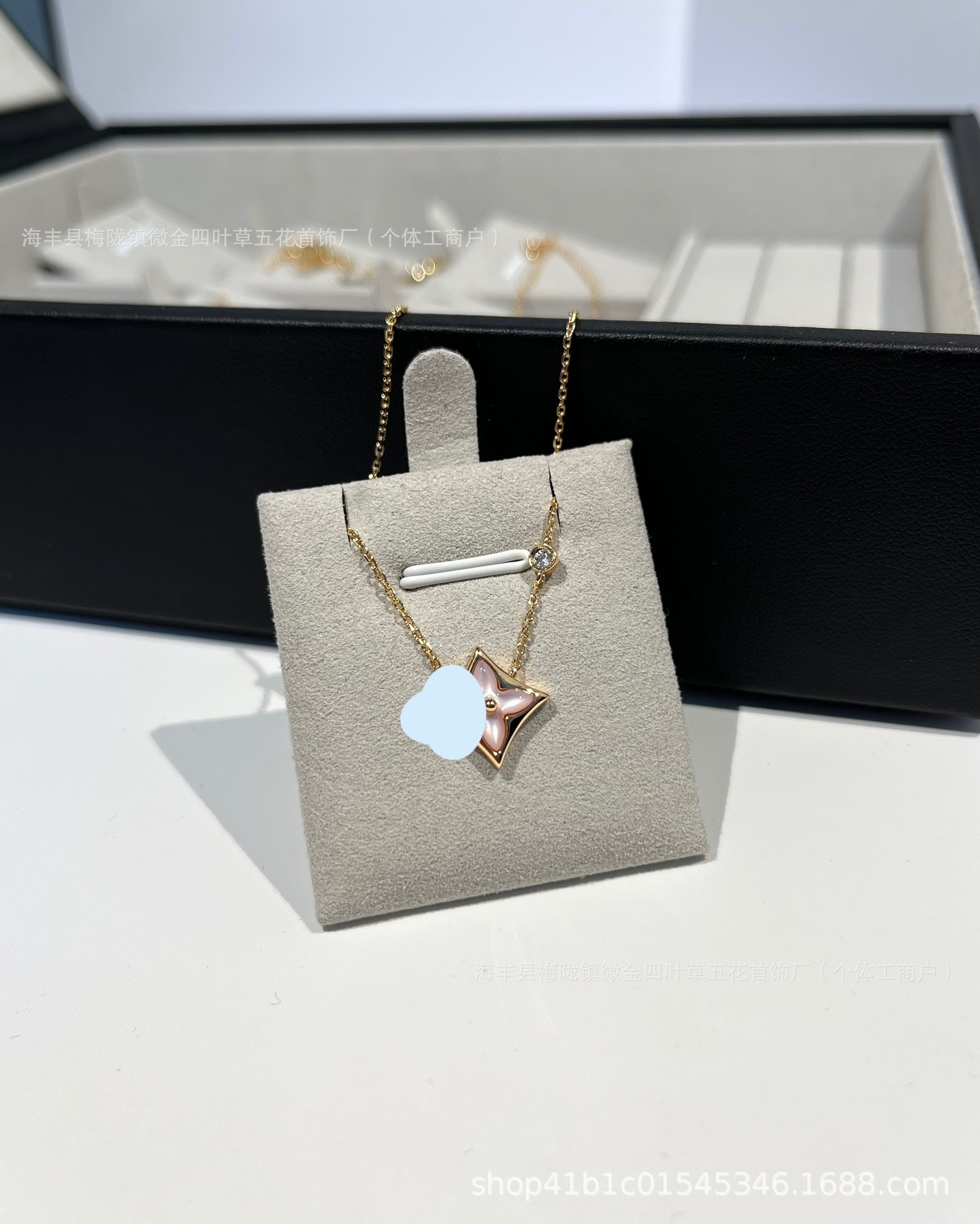 Color: Pink mother-of-pearl diamond necklace