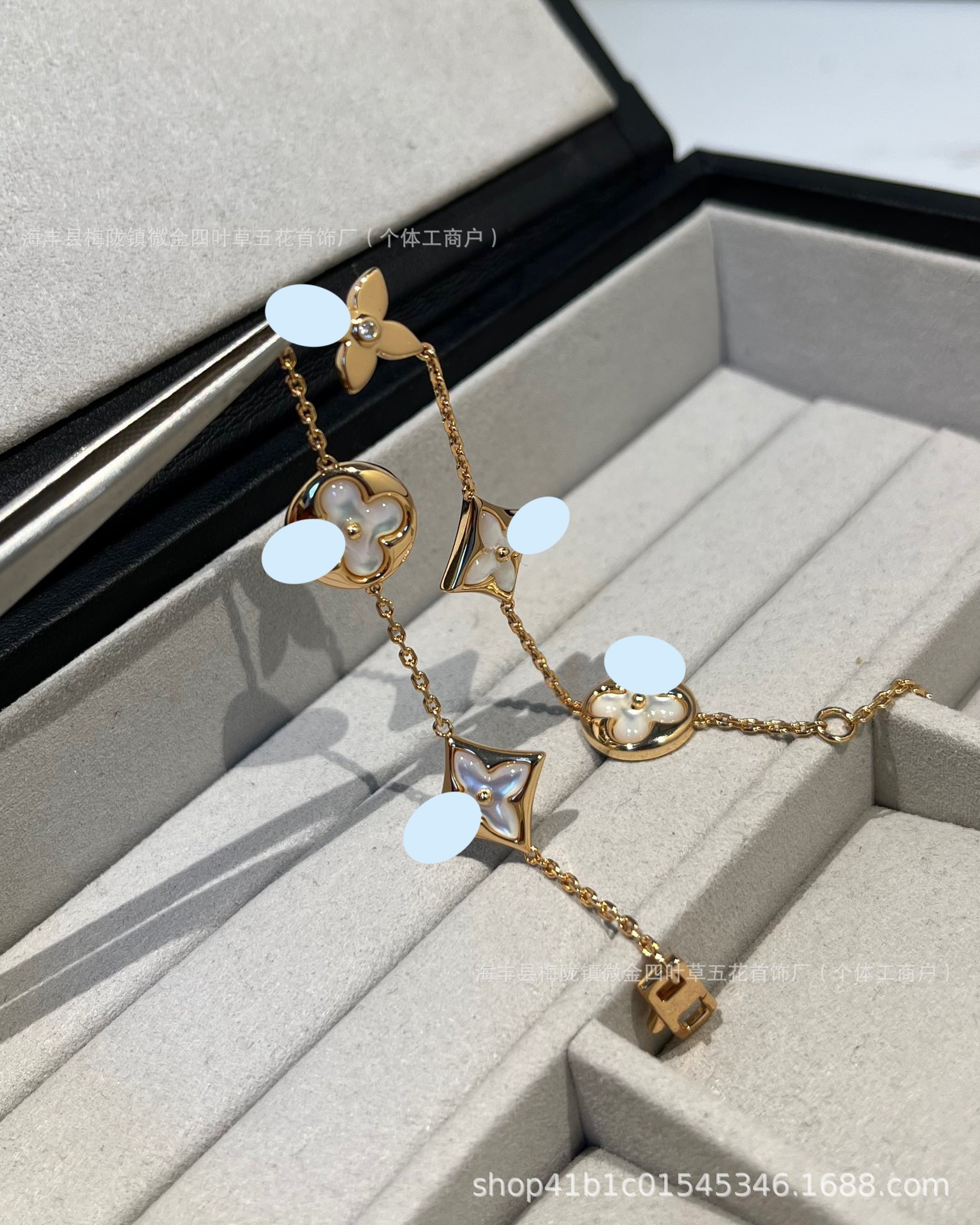 Color: White fritillary diamond four flower bracelet