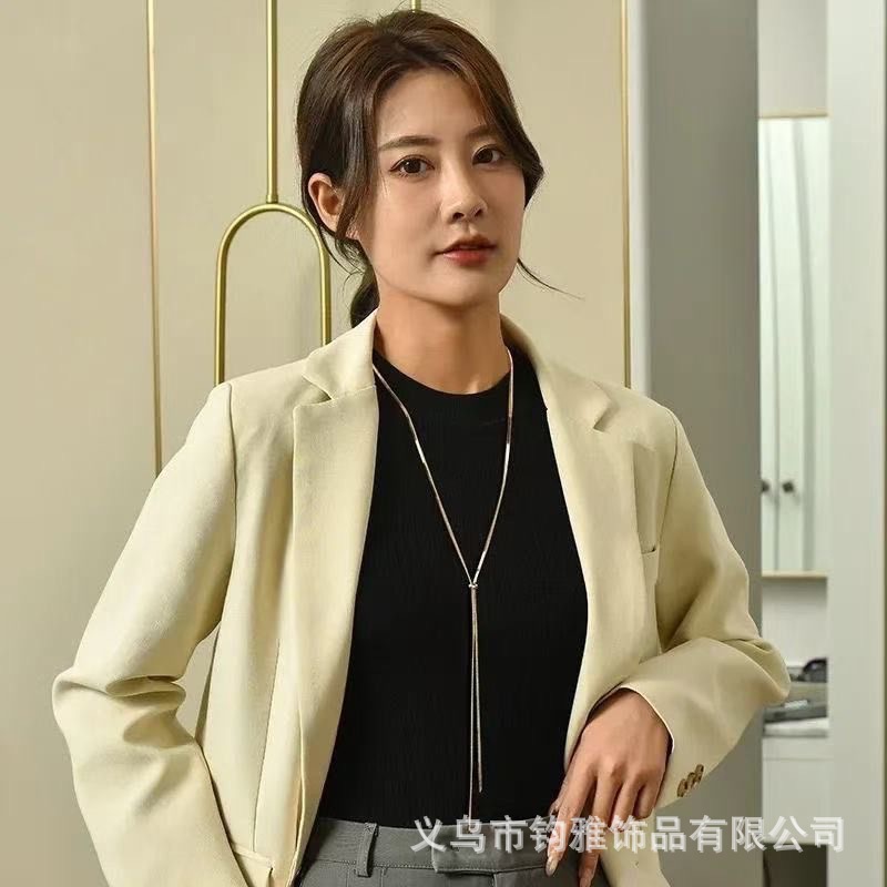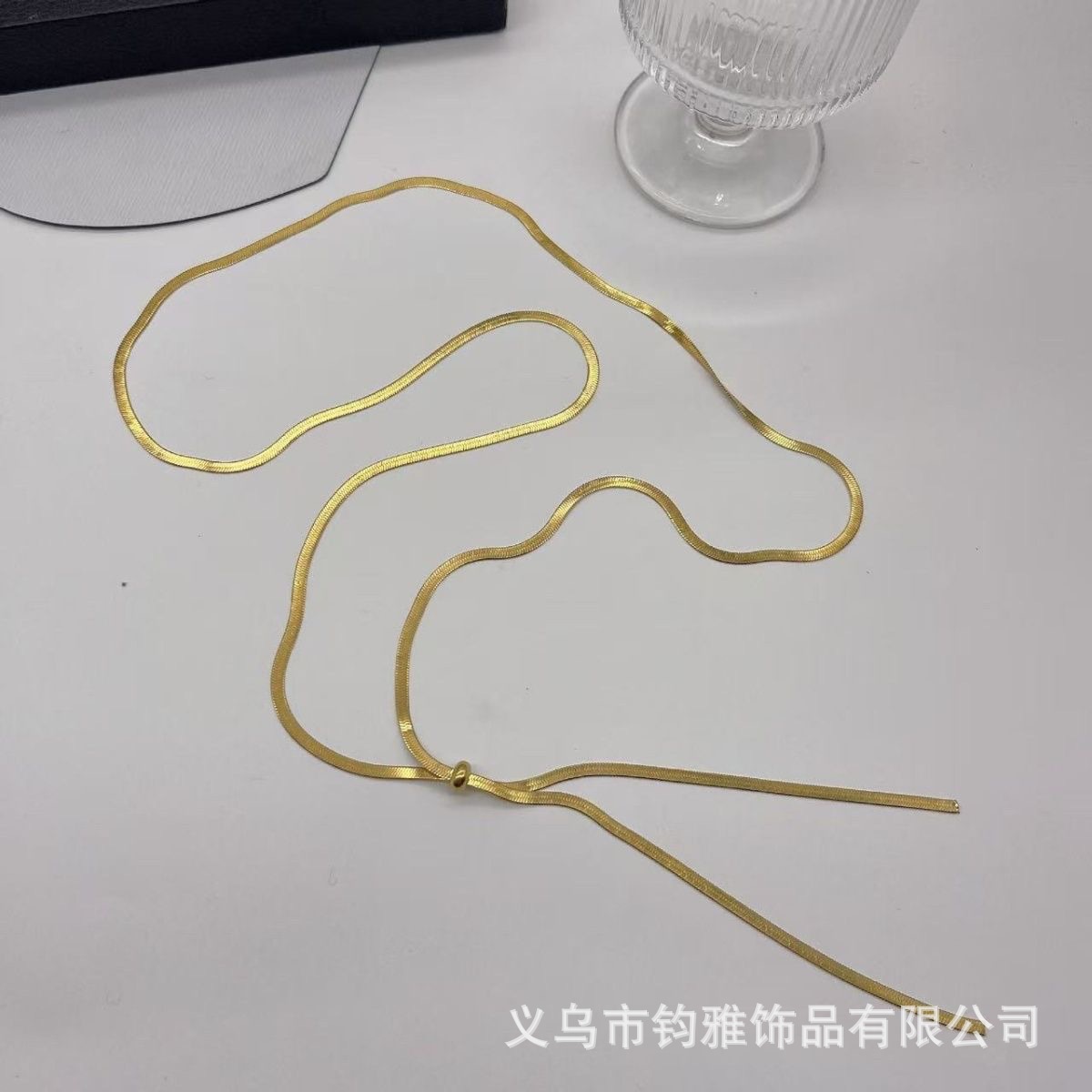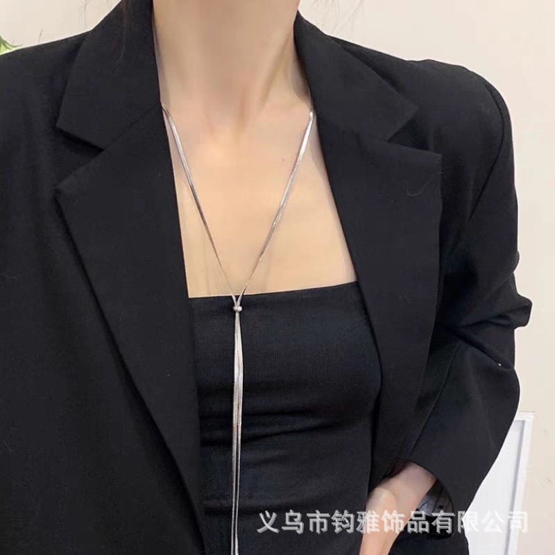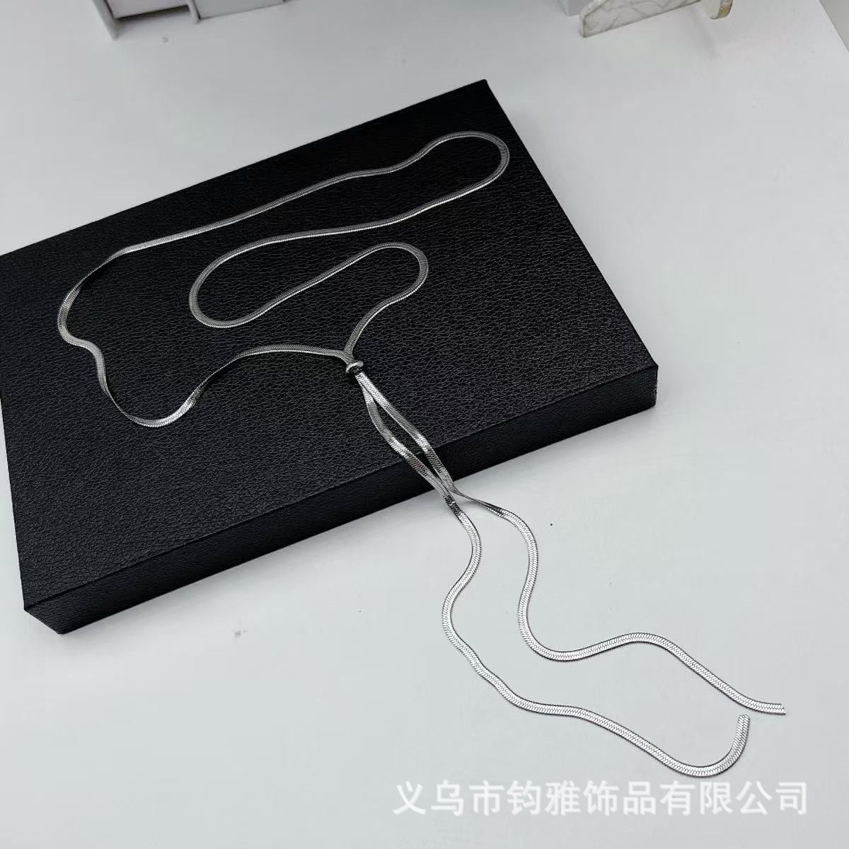 S925 Adjustable Blade Chain Flat Snake Pull-out Long Necklace Wool Chain Titanium Steel Color-retaining Long Necklace Collocation