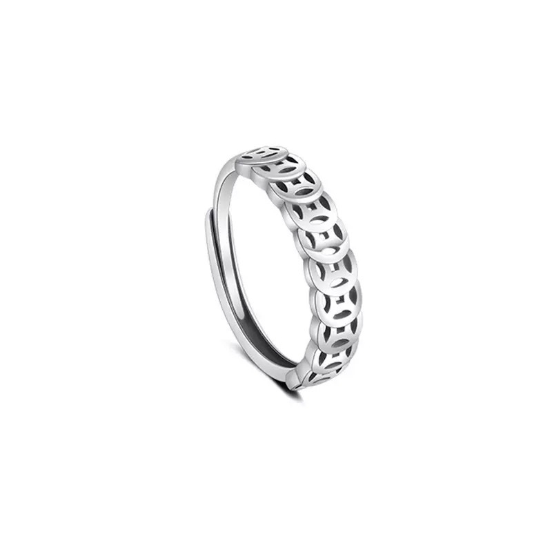 S925 Sterling Silver Vintage Ring for Women, Wealth-Attracting Coin Design, Minimalist Ins Niche Open-Ended Fortune Ring