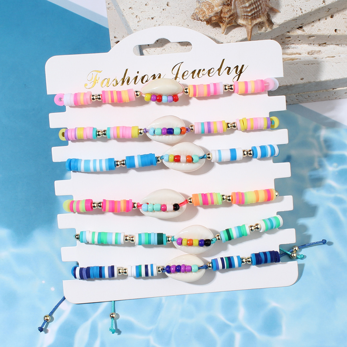 Europe and the United States hot-selling Hawaiian soft pottery shell bracelet rice beads hand-woven colorful hand rope 6 jewelry wholesale