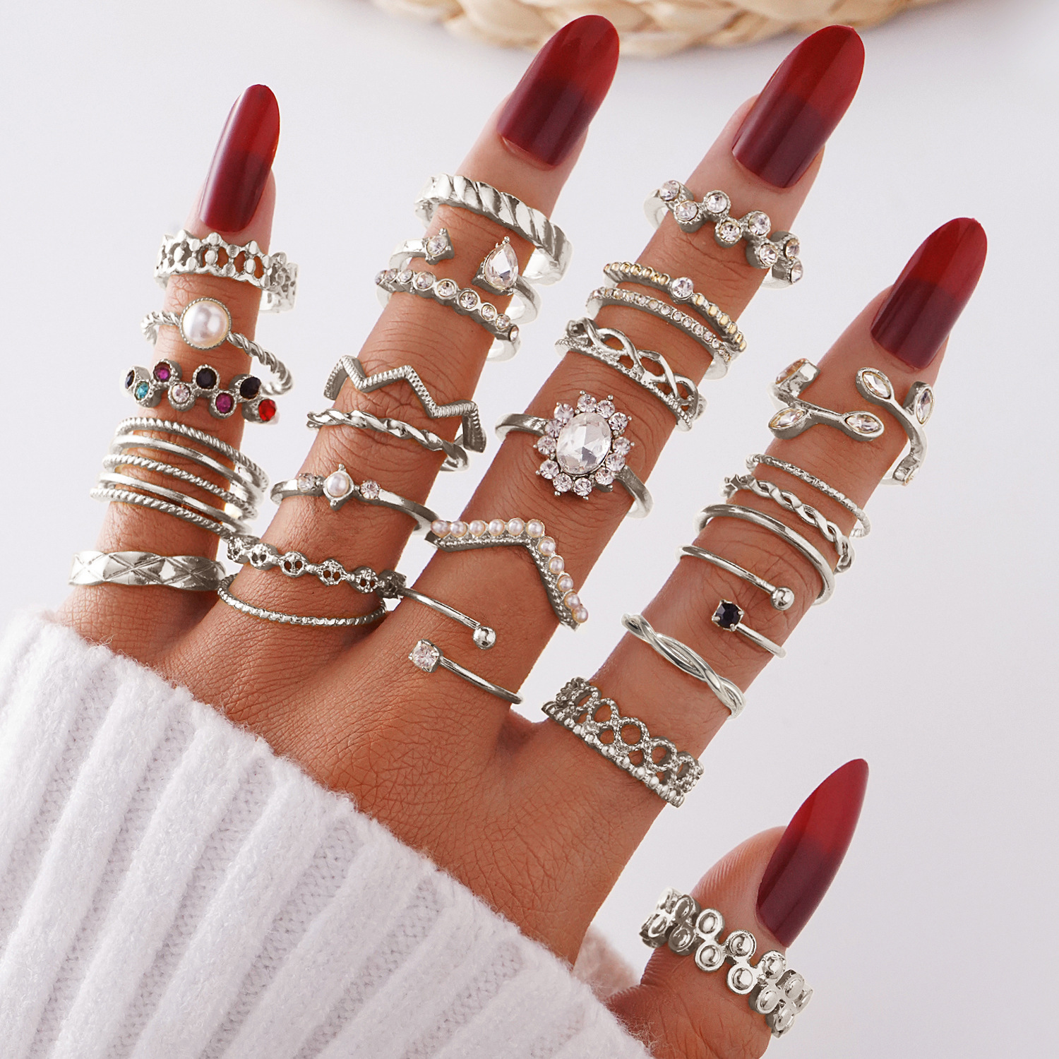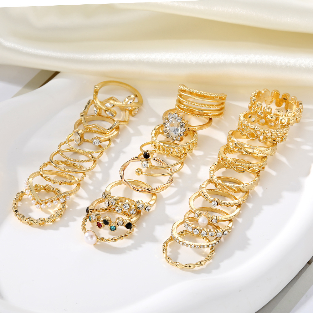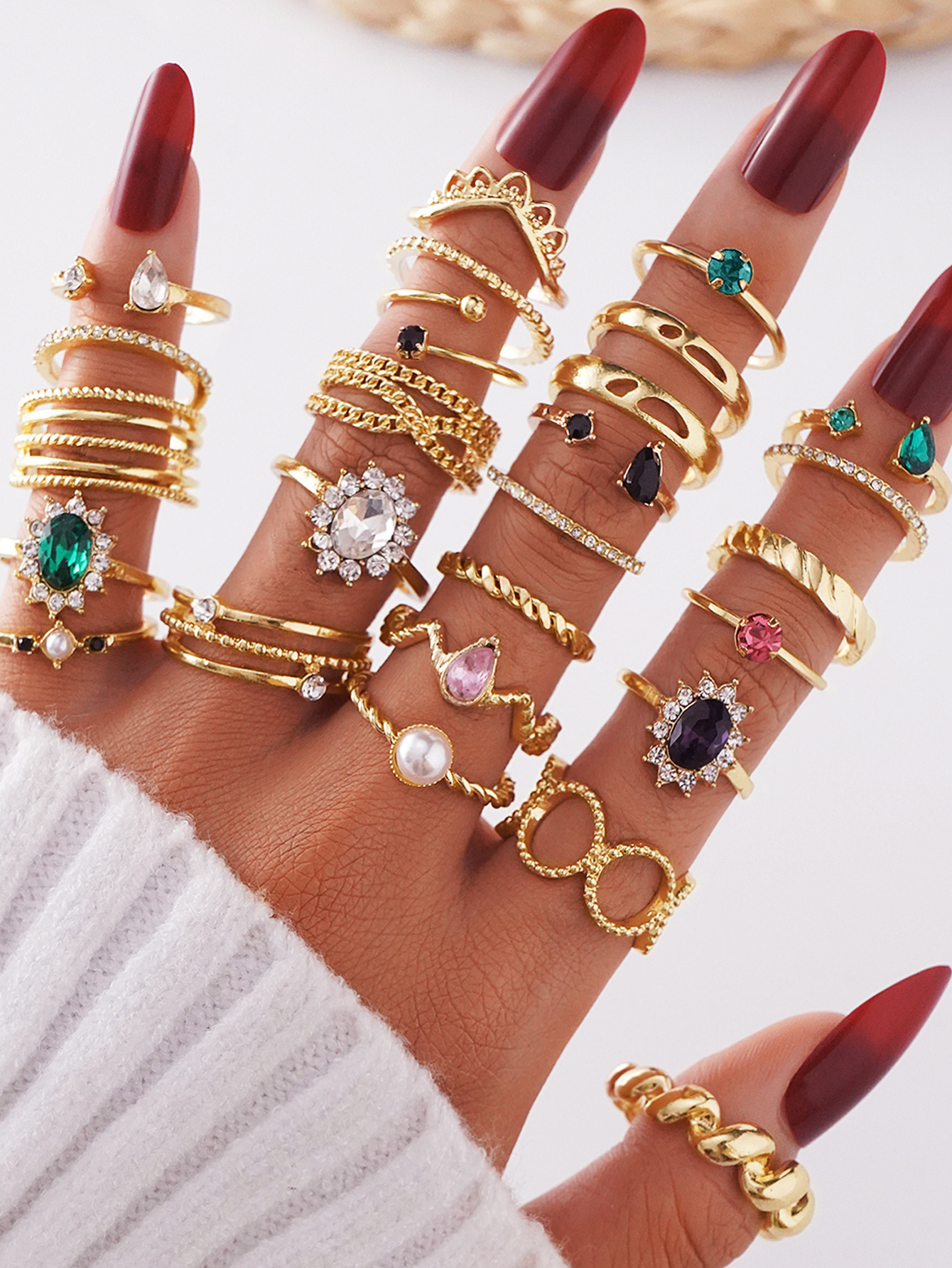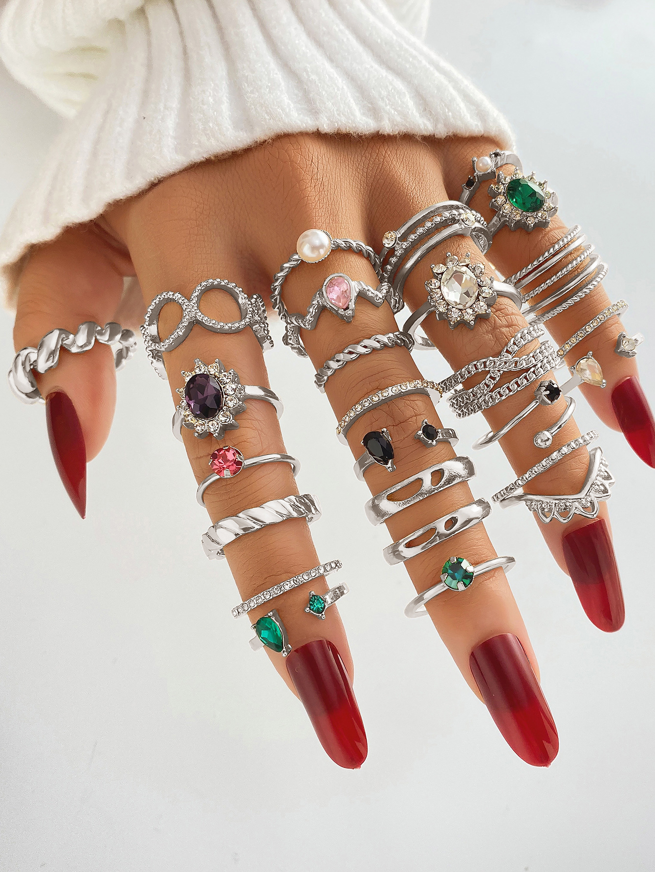 Europe and the United States cross-border hot selling exotic color gemstone pearl ring diamond glue vintage snake ring suit