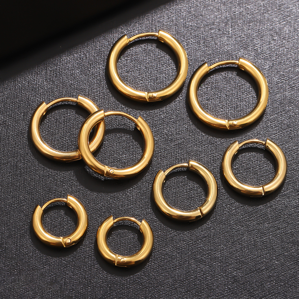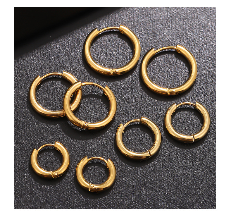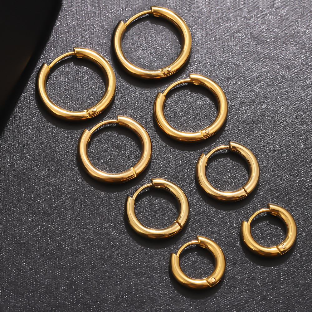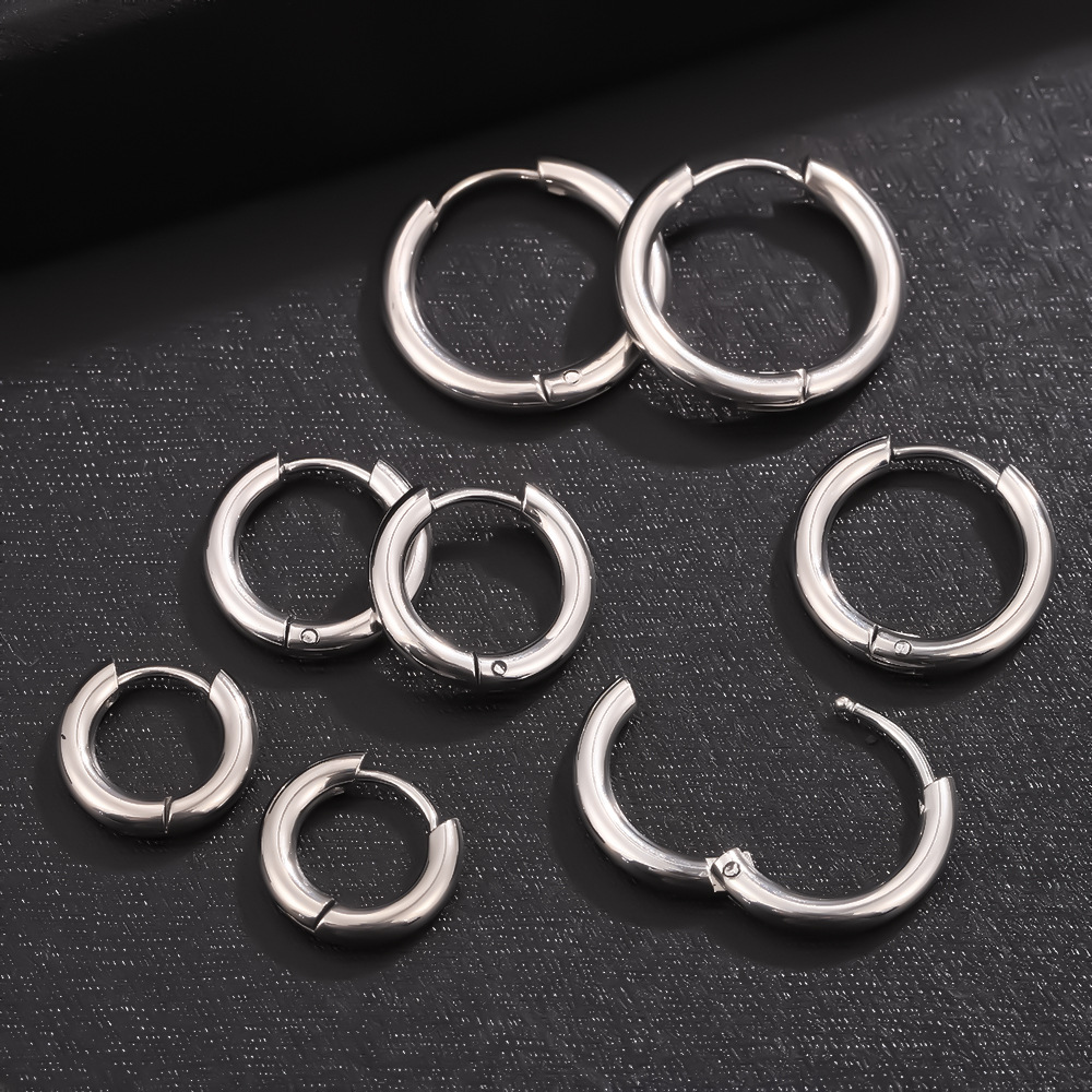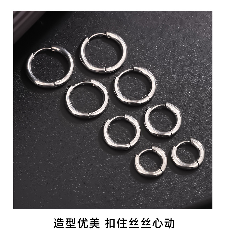 Casual Plain Hoop Earrings Glossy European and American Neutral Hoop Earrings Punk Trendy Fashion Stainless Steel Round Earrings