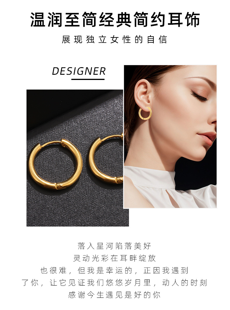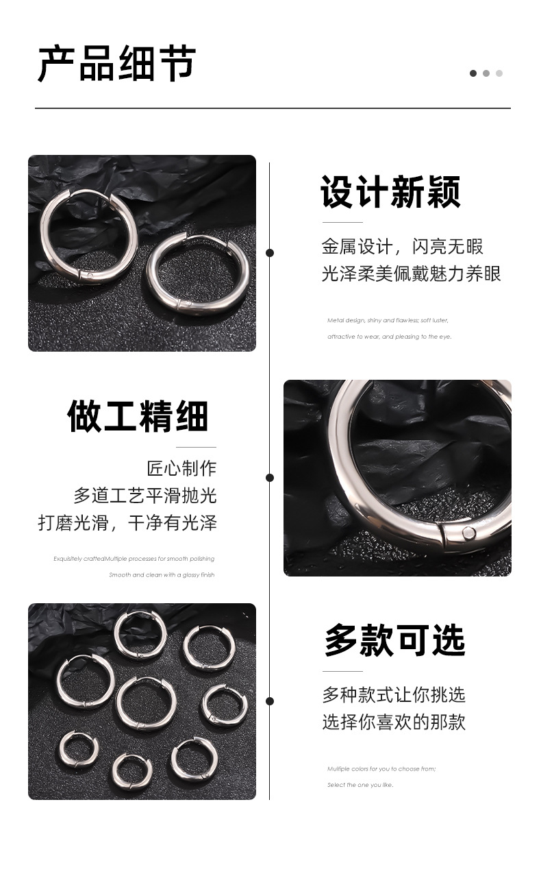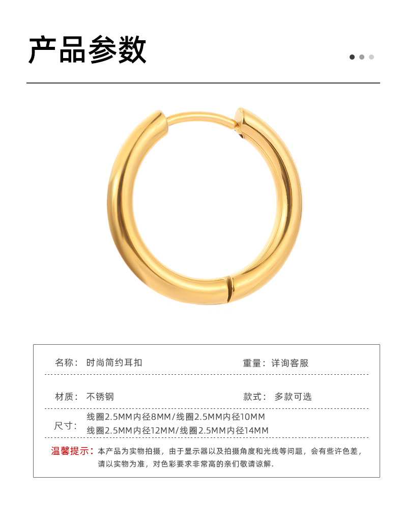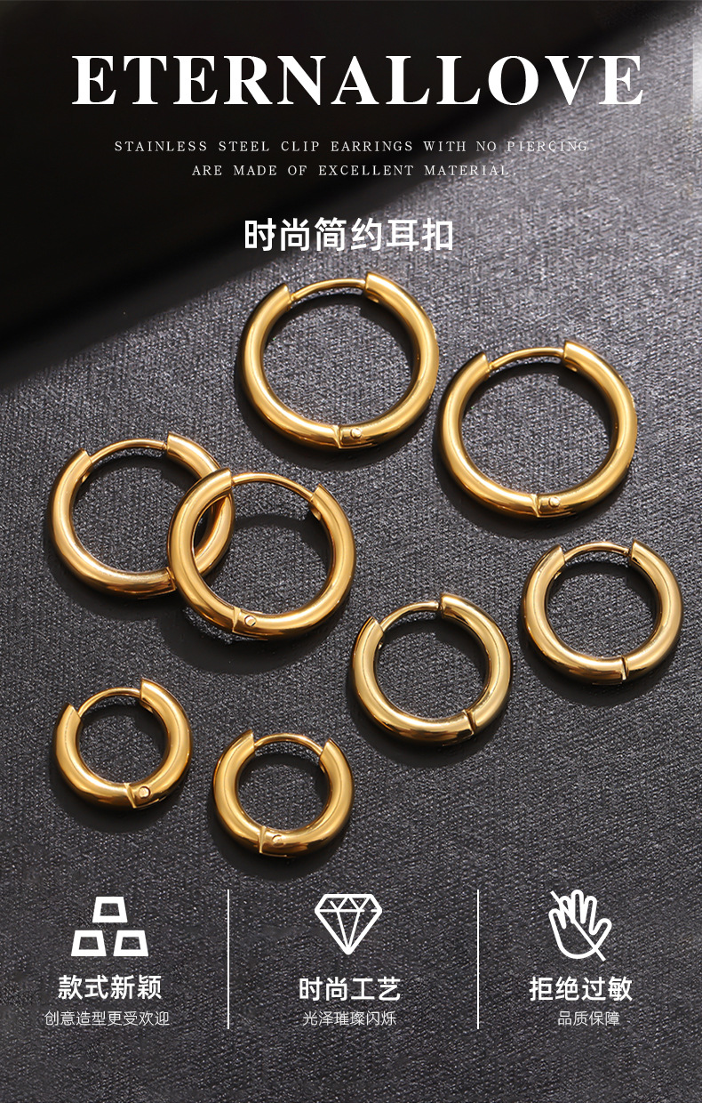 Casual Plain Hoop Earrings Glossy European and American Neutral Hoop Earrings Punk Trendy Fashion Stainless Steel Round Earrings