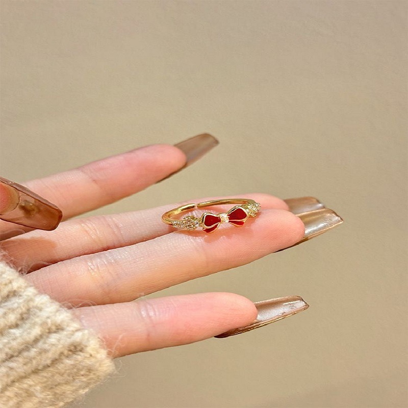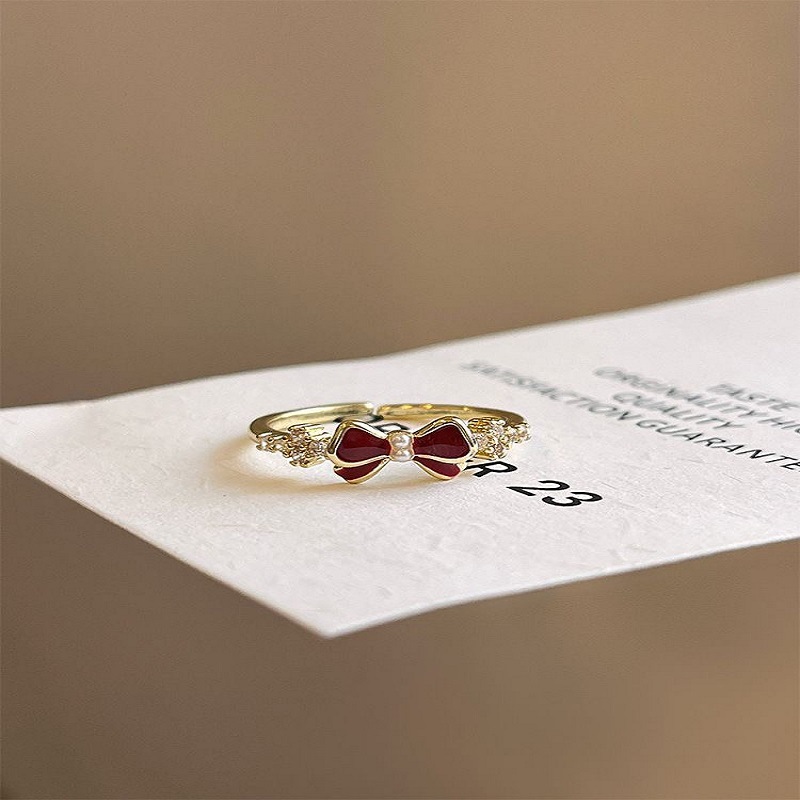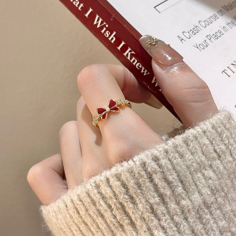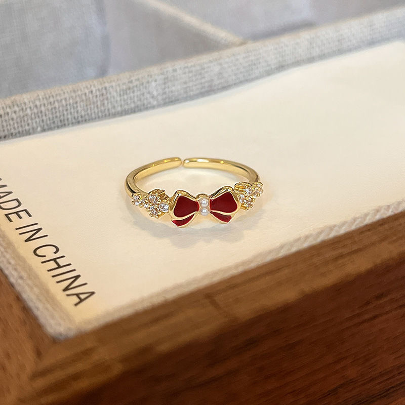 Palace Retro Flower Bow Niche Design Ring Women's Fashion Distinctive Opening Adjustable Temperament Ring