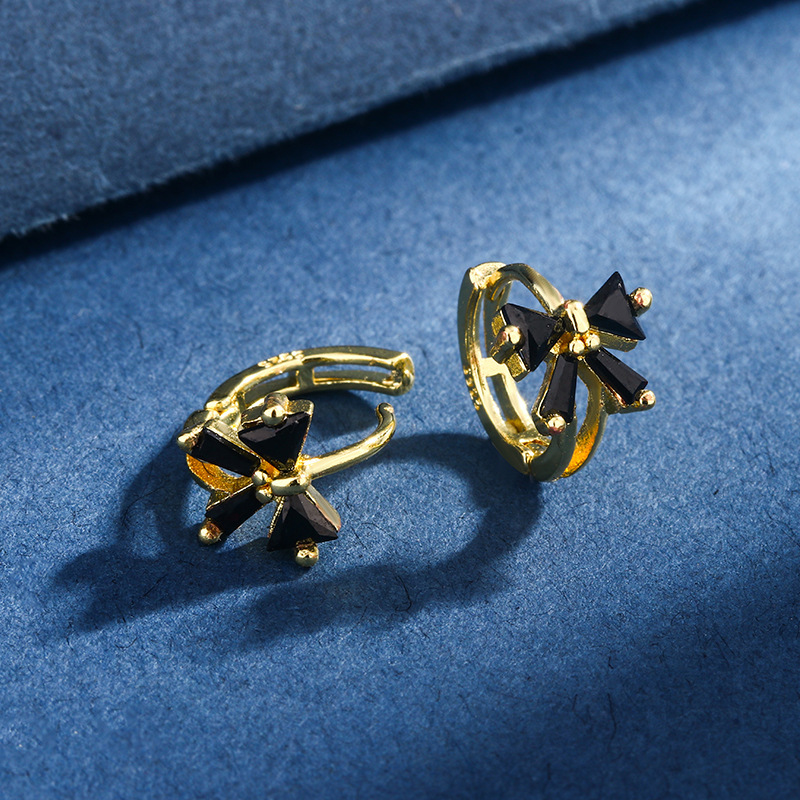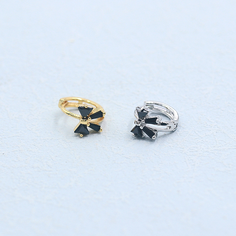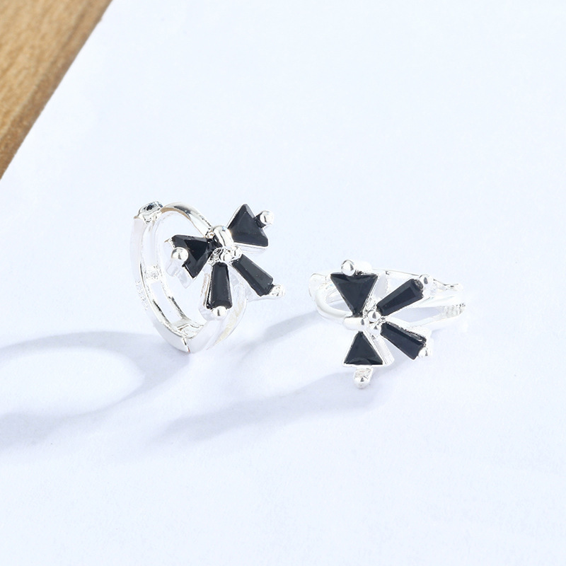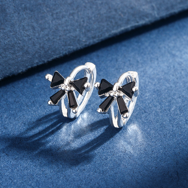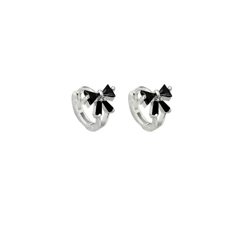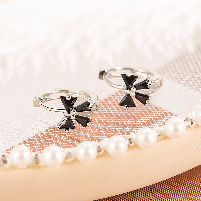 925 Sterling Silver Black Bow Earrings Women's Sweet Bow Earrings Simple Ins Cold Style Elegant Ear Jewelry