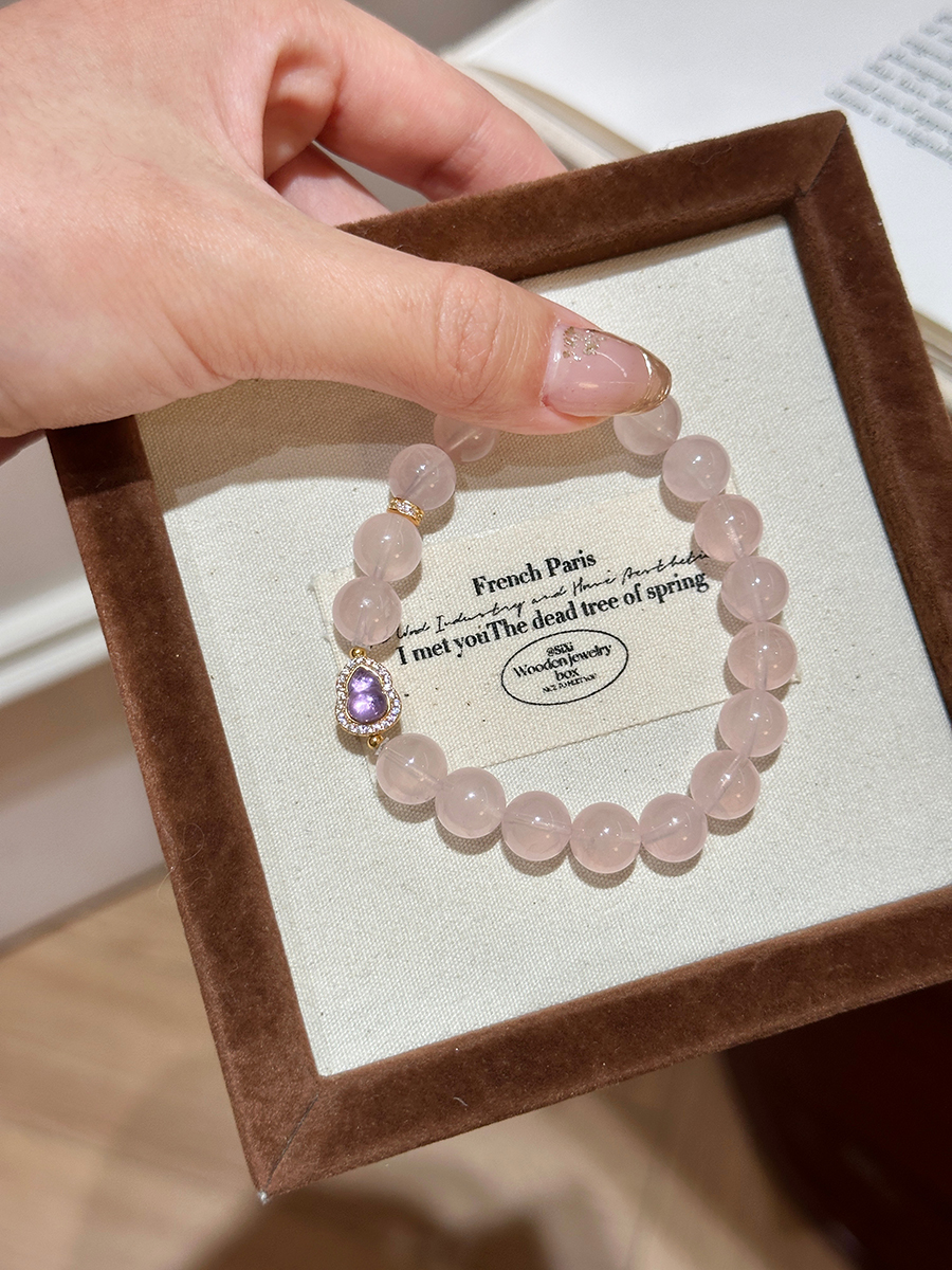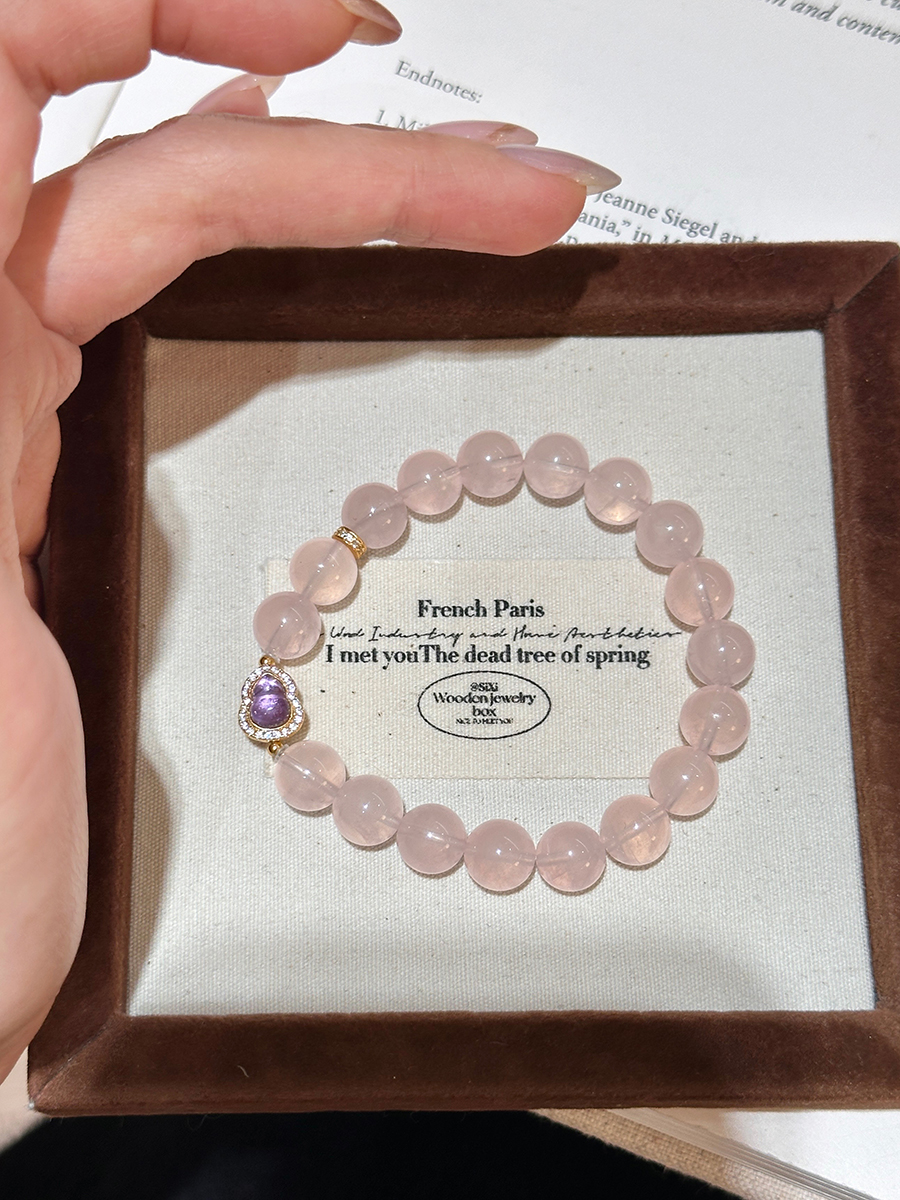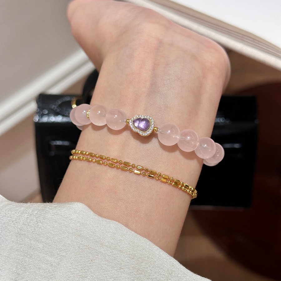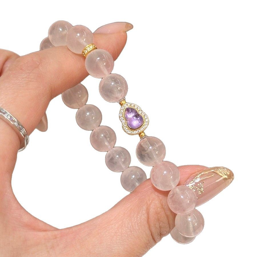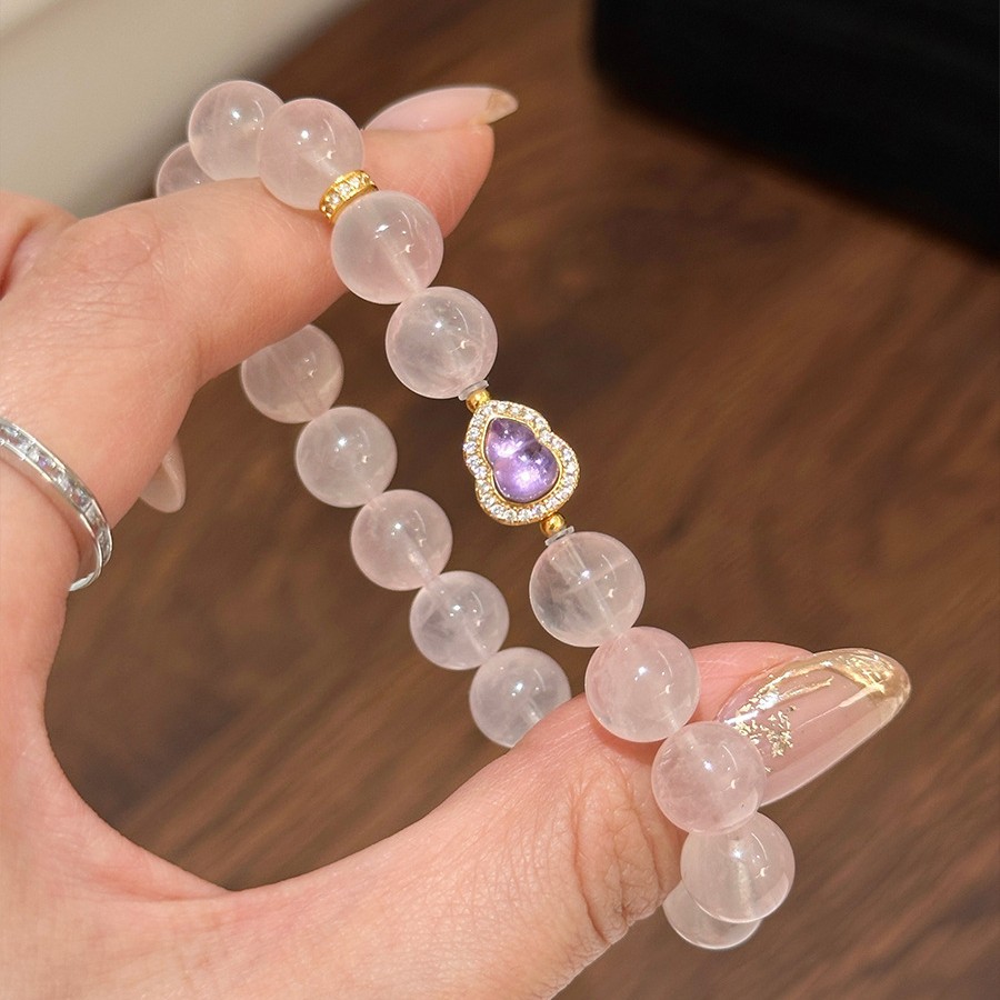 Imitation Natural Horse Pink Crystal Bracelet Women's Light Luxury Design Sense Peach Blossom Transfer Bracelet Purple Gourd Shore Bracelet for Women