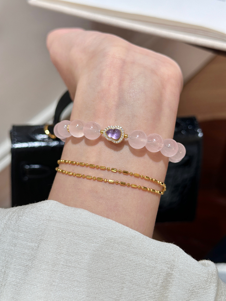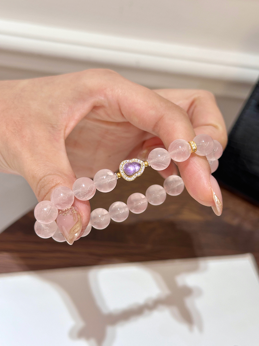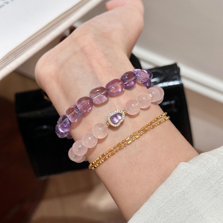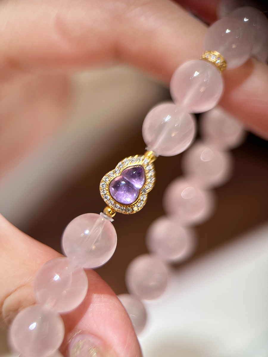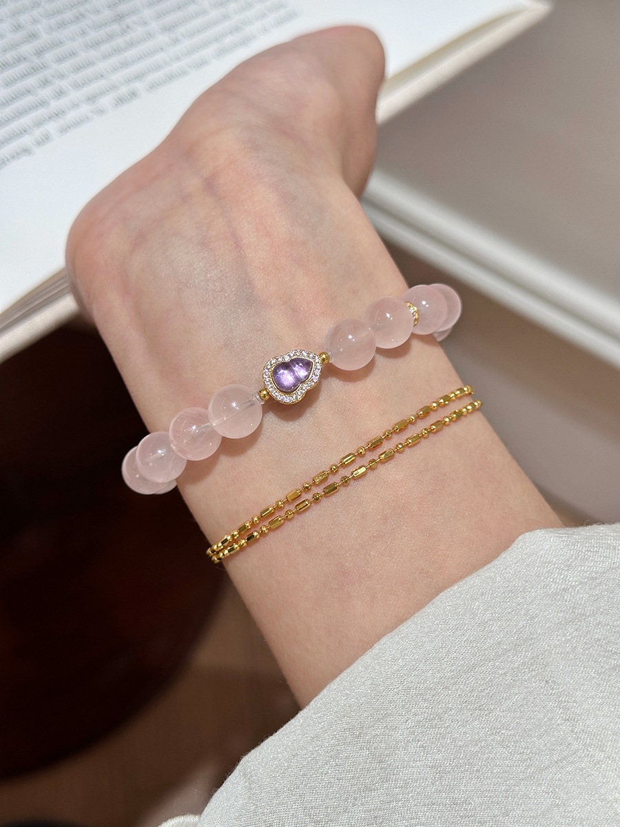 Imitation Natural Horse Pink Crystal Bracelet Women's Light Luxury Design Sense Peach Blossom Transfer Bracelet Purple Gourd Shore Bracelet for Women