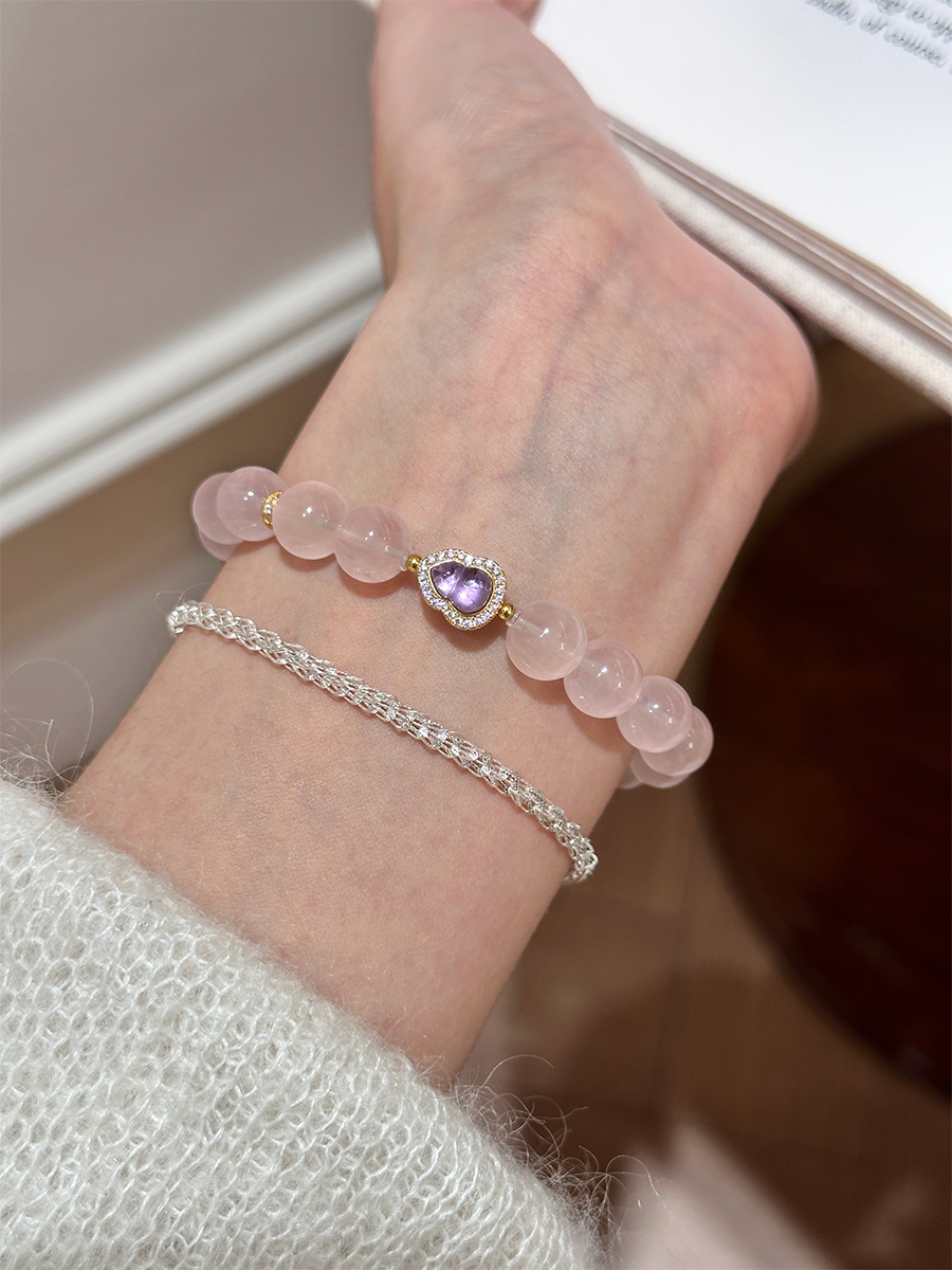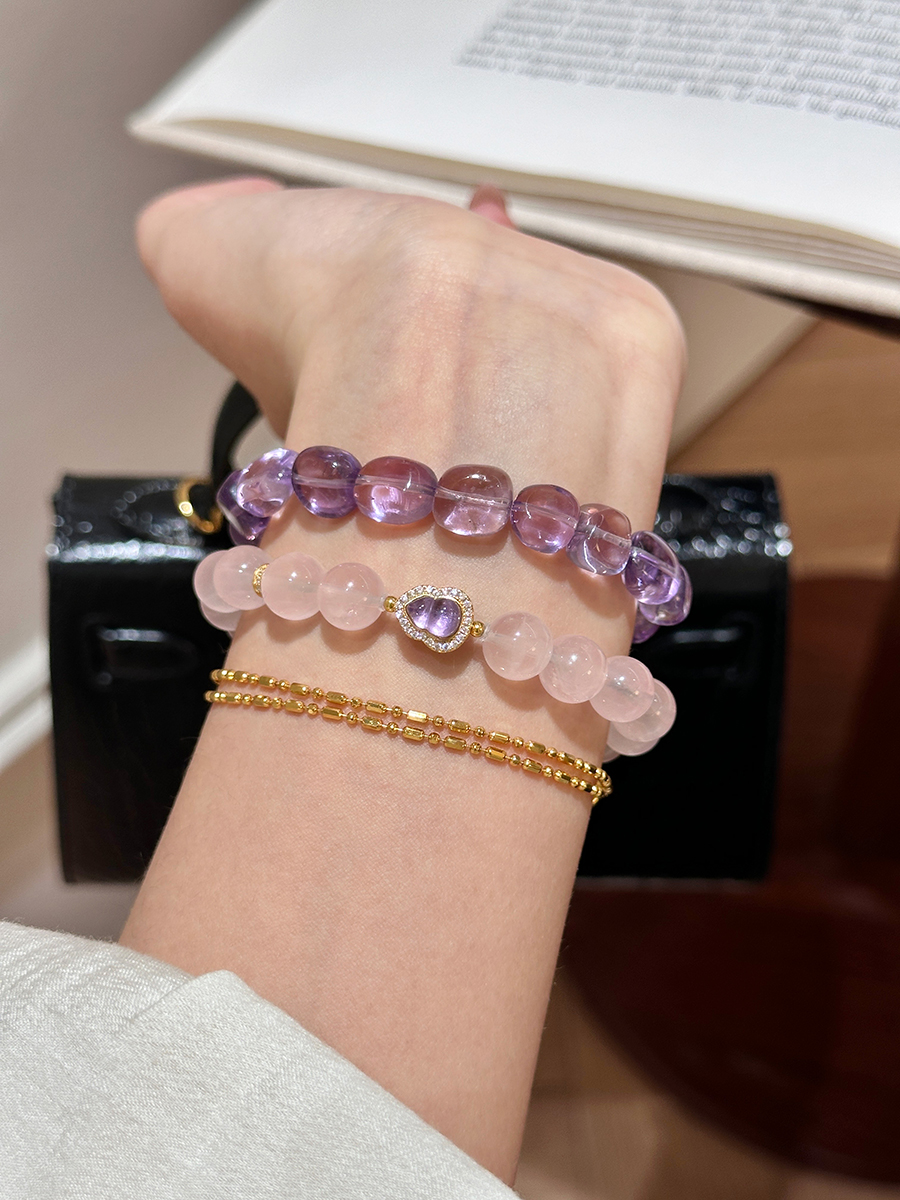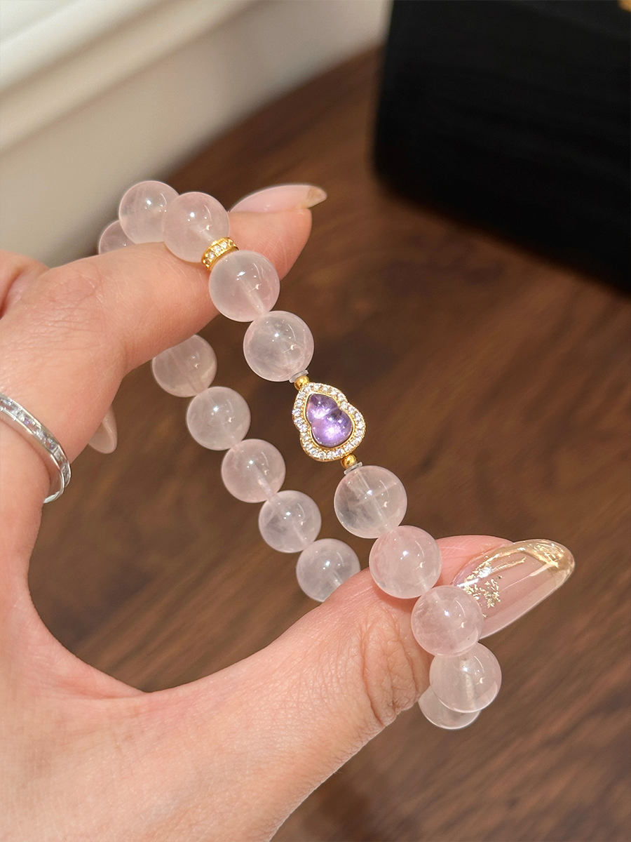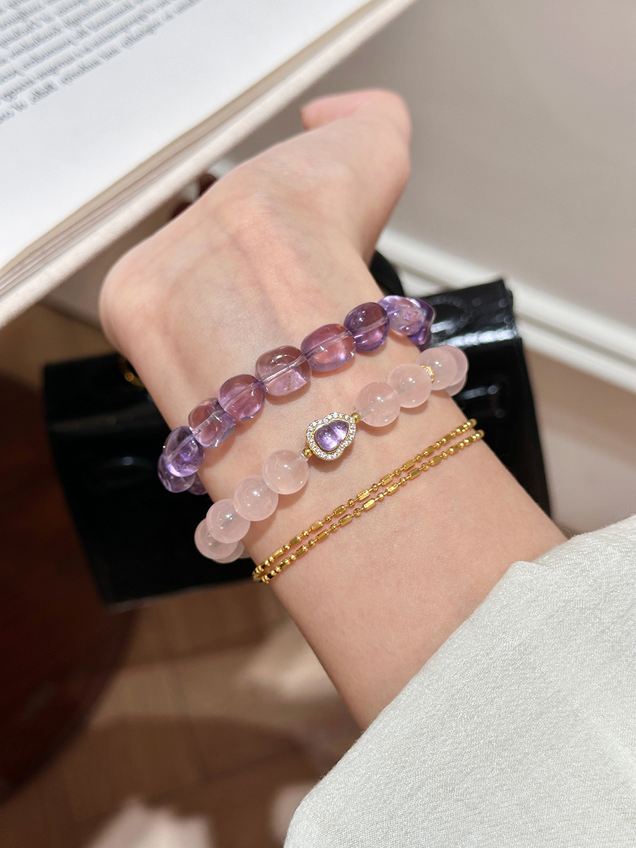 Imitation Natural Horse Pink Crystal Bracelet Women's Light Luxury Design Sense Peach Blossom Transfer Bracelet Purple Gourd Shore Bracelet for Women