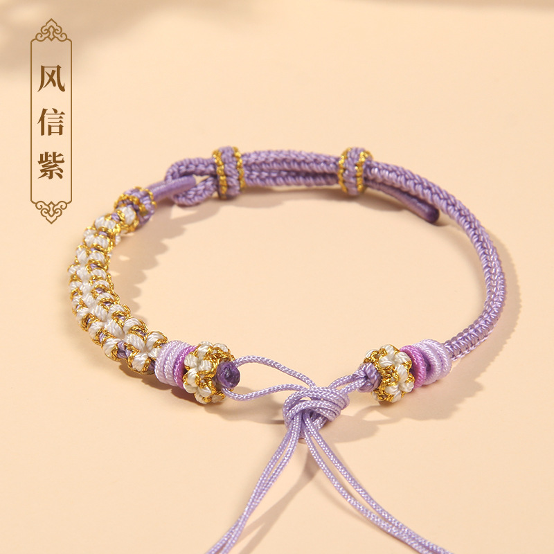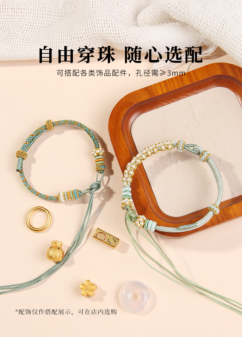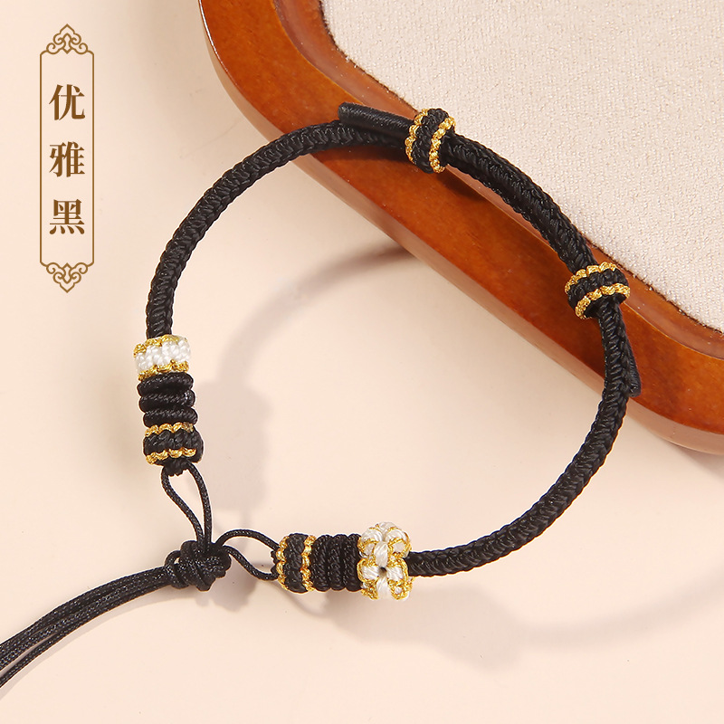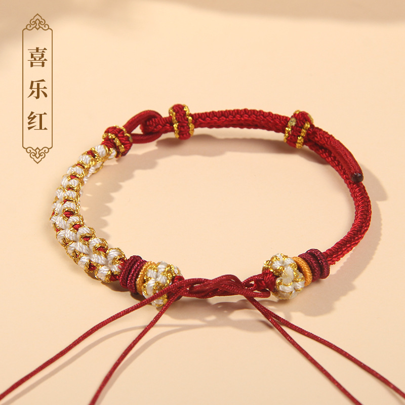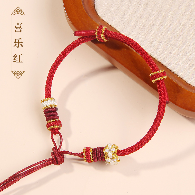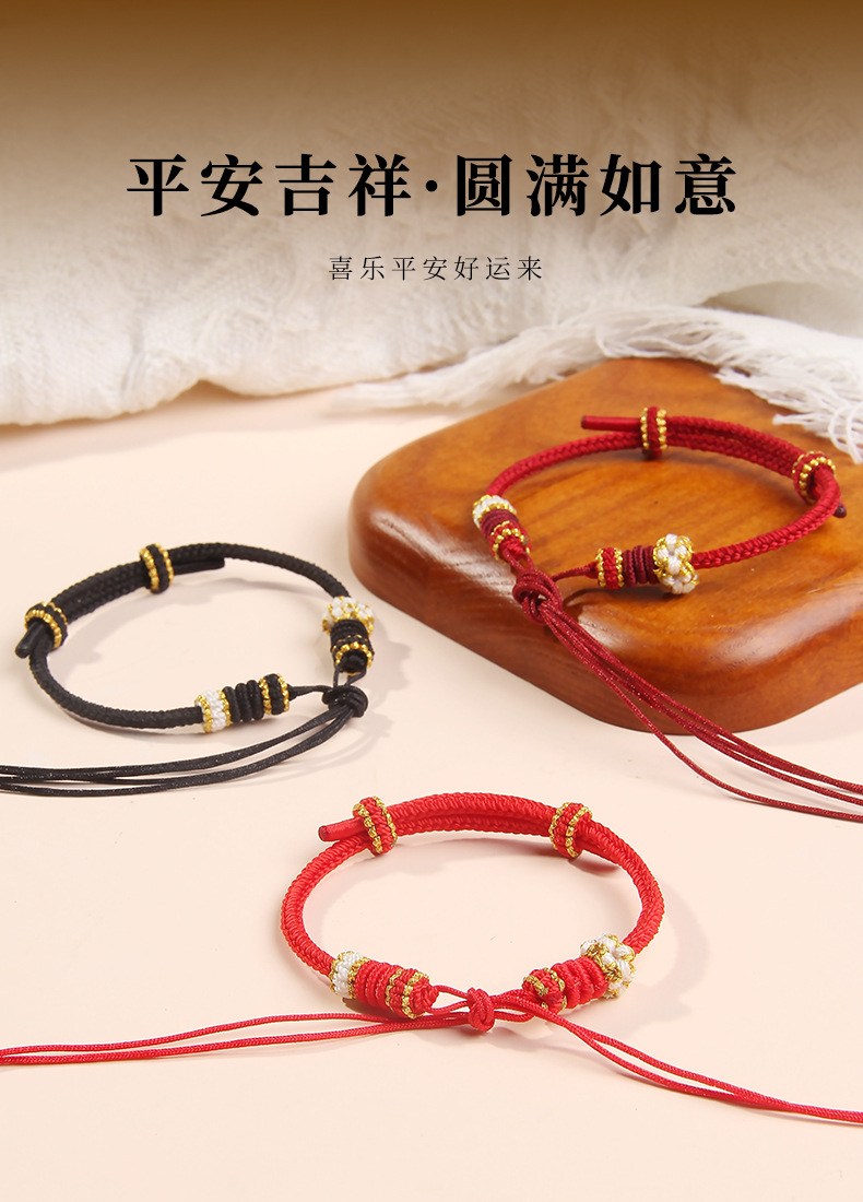 Ping An Buckle Hand Rope Woven Rope Handmade Semi-finished Wearable Collar Flower Gold Transfer Beads Benmingnian Red Rope Bracelet for Women