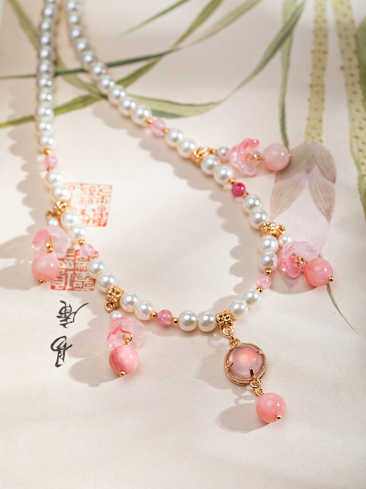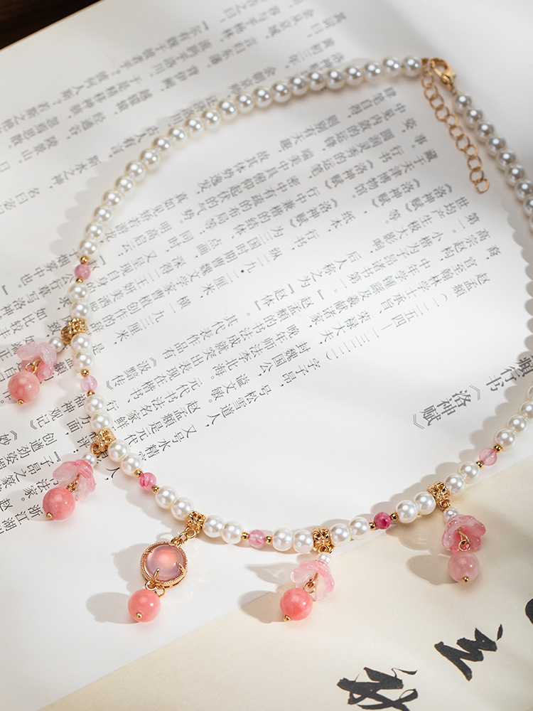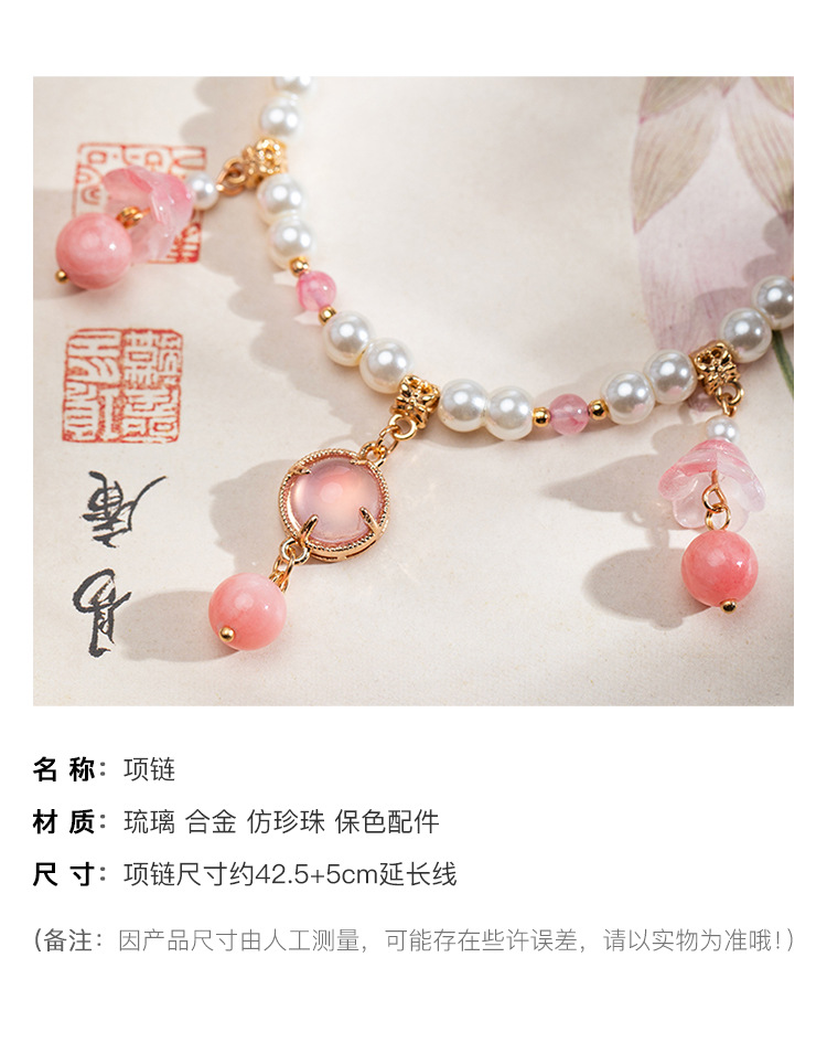 Antique Necklace Women's Pink Fairy Hanfu Accessories Soft Wreaths
