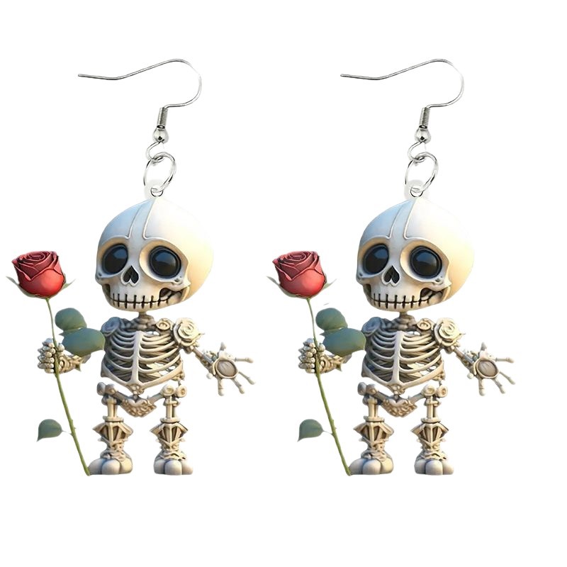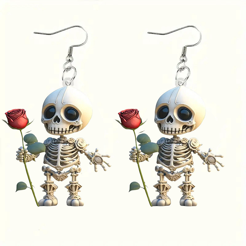 Cute Acrylic Skull with Rose Flower Earrings - Lightweight and Durable Charm - Perfect for Halloween Gifts