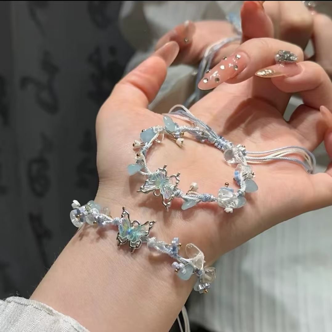 "Phantom Butterfly Wild" Mori Style Cool Blue Butterfly Bracelet Women's 2025 New Niche Exquisite Super Glitter Bracelet