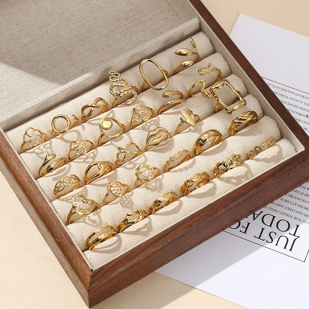 Cross-border new luxury diamond imitation opening ring fashion Joker exquisite geometric golden ring ten mixed batch
