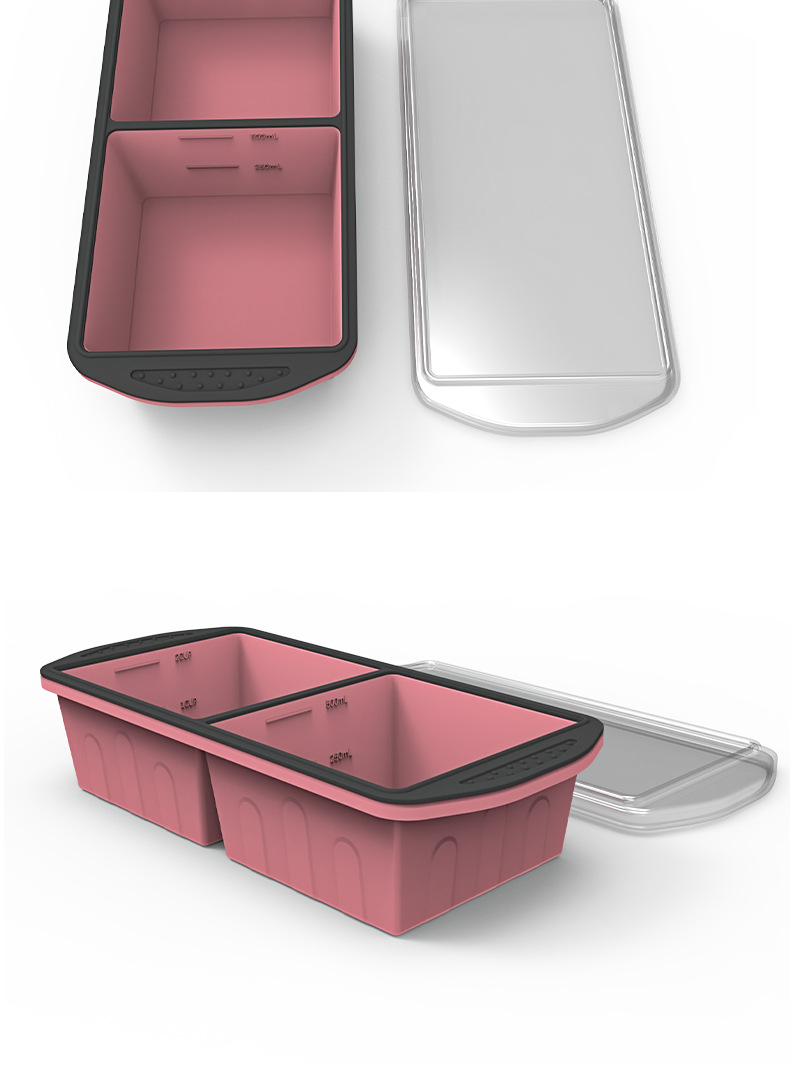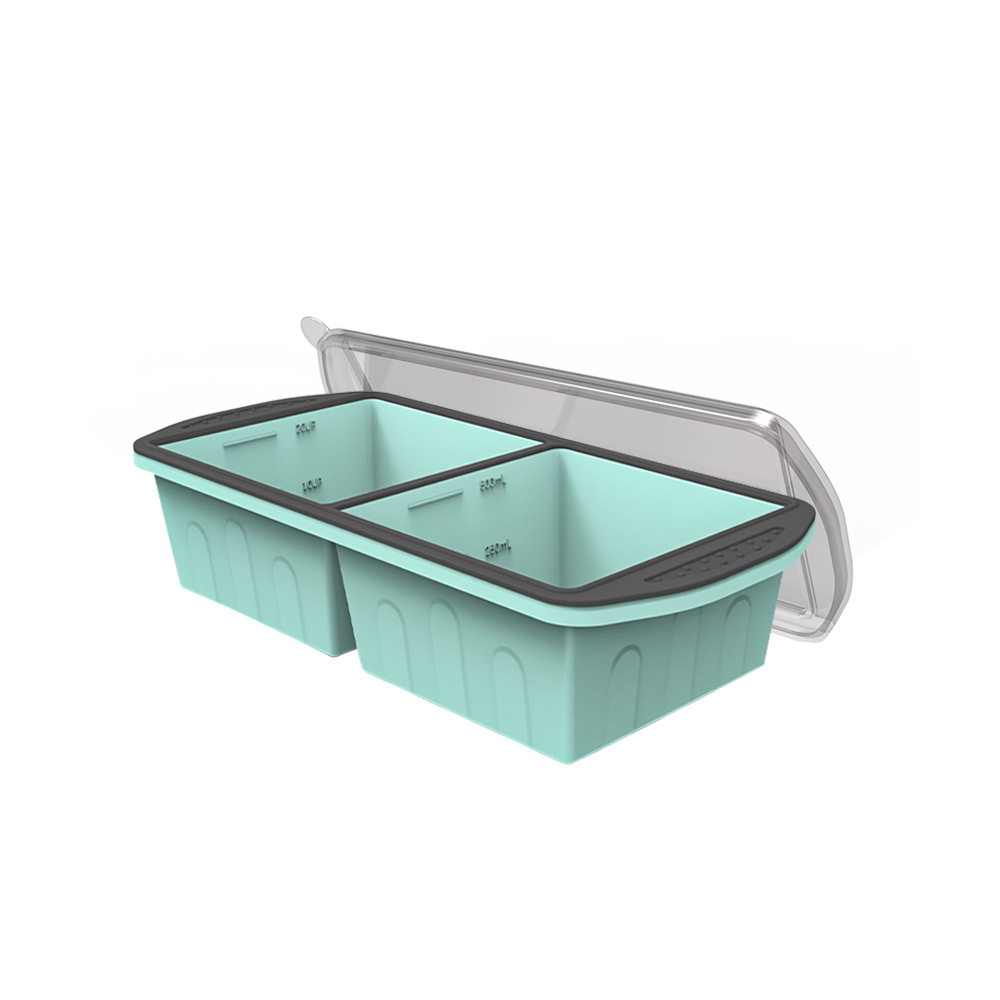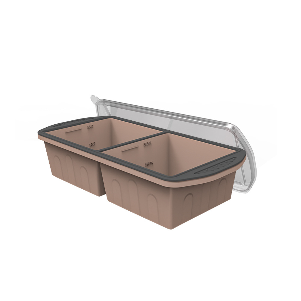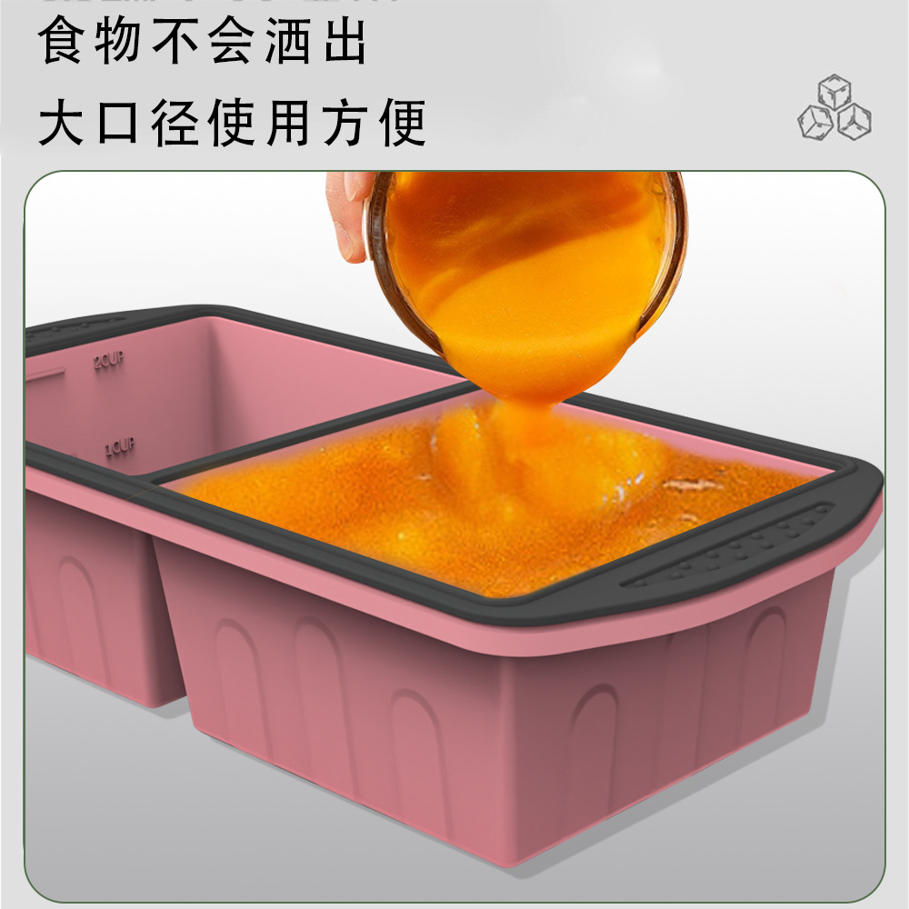 Silicone Big Ice Pot Frozen Soup with Lid Hot Pot Base Material 2-compartment Soup Frozen Storage Box Silicone Ice Block Mold