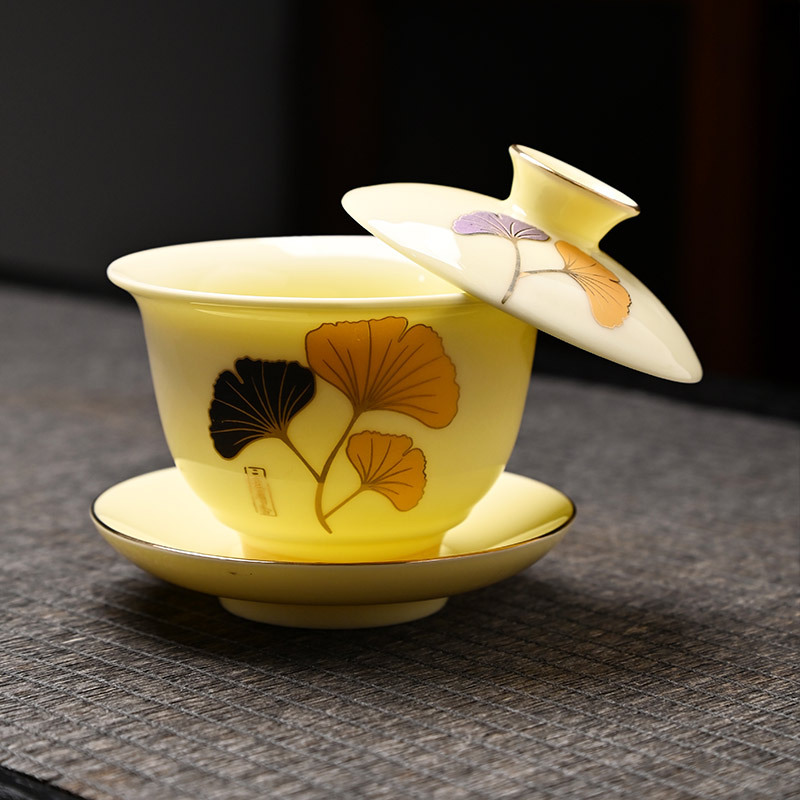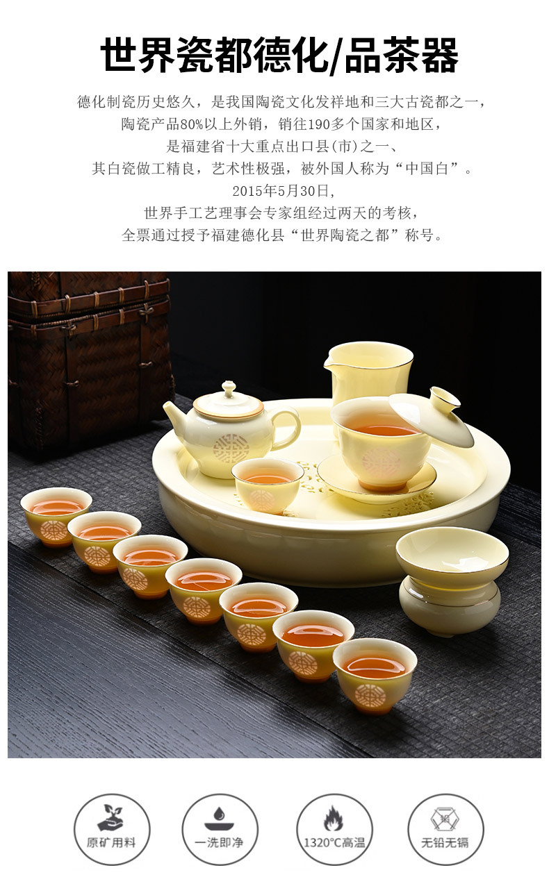17-Piece Gemstone Yellow San Sheng You Xing Family Portrait Tea Set White Porcelain Kung Fu Tea Set Household Gaiwan Gift Box