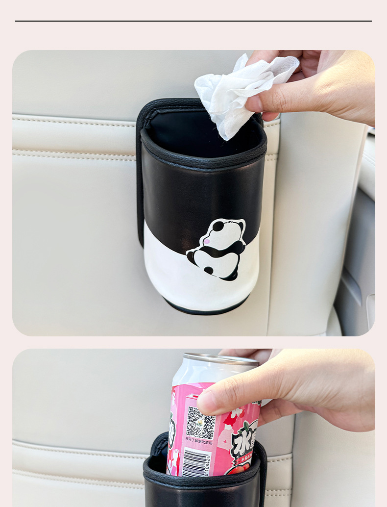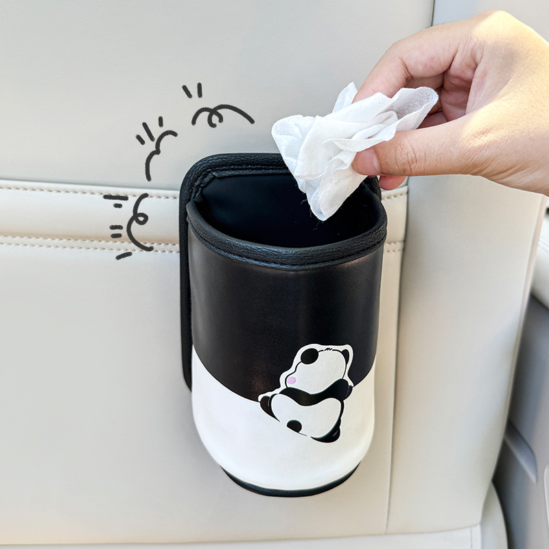 A generation of camellia car storage bag car cup holder cute panda hanging compact trash can high color value