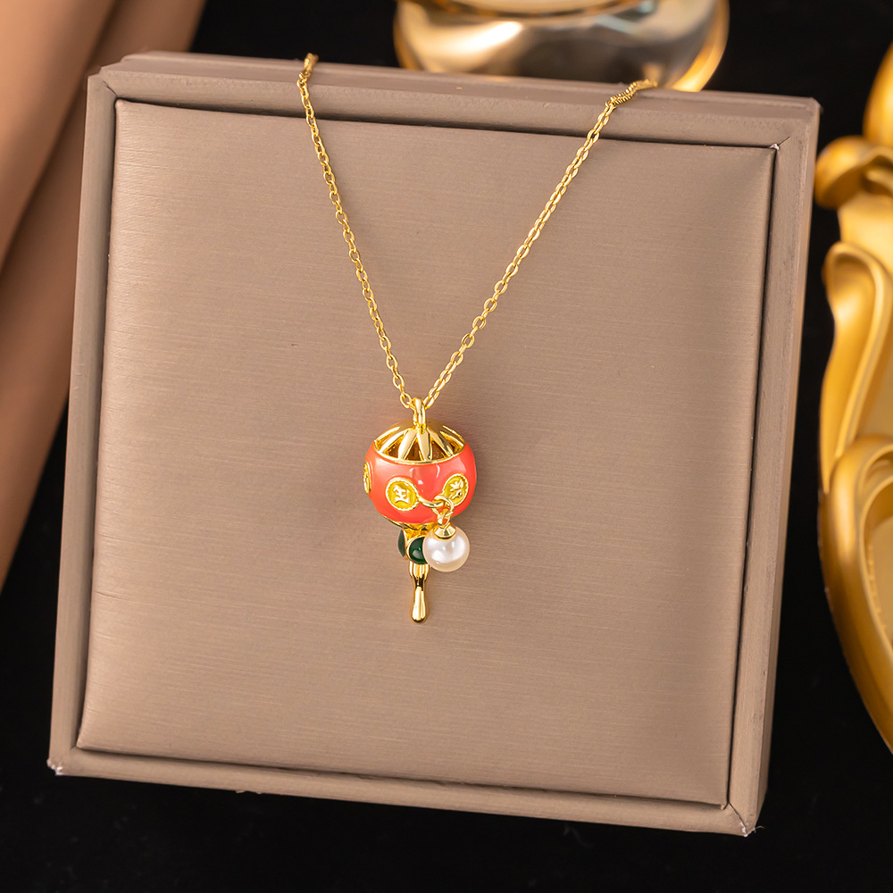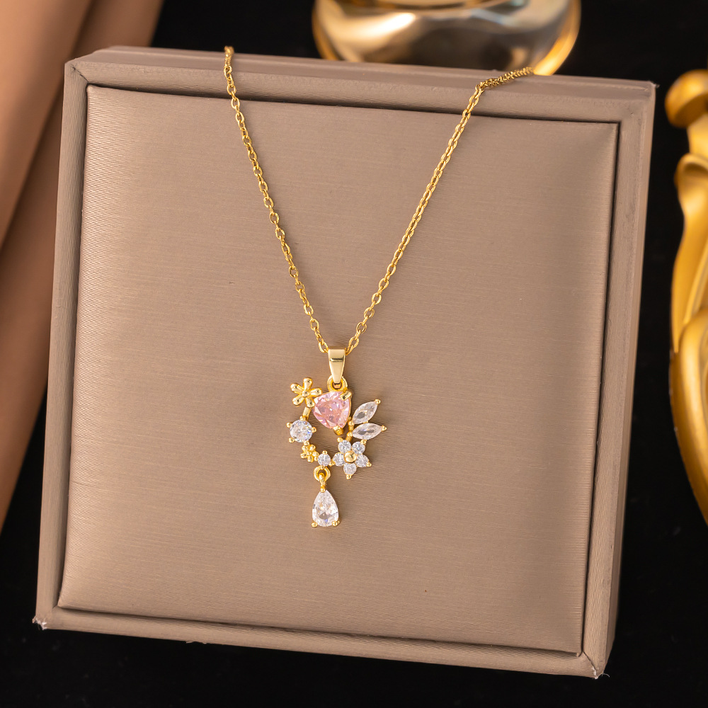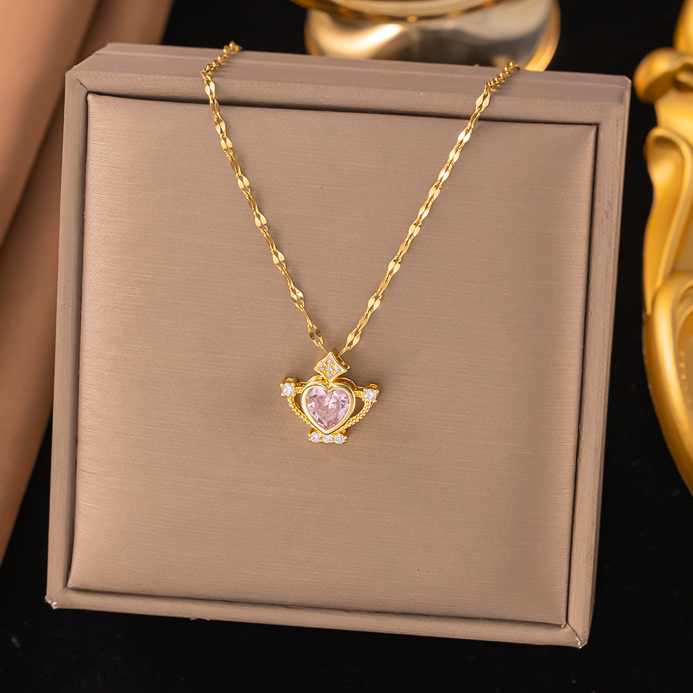 Color: 【8272】pink diamond trophy necklace steel color