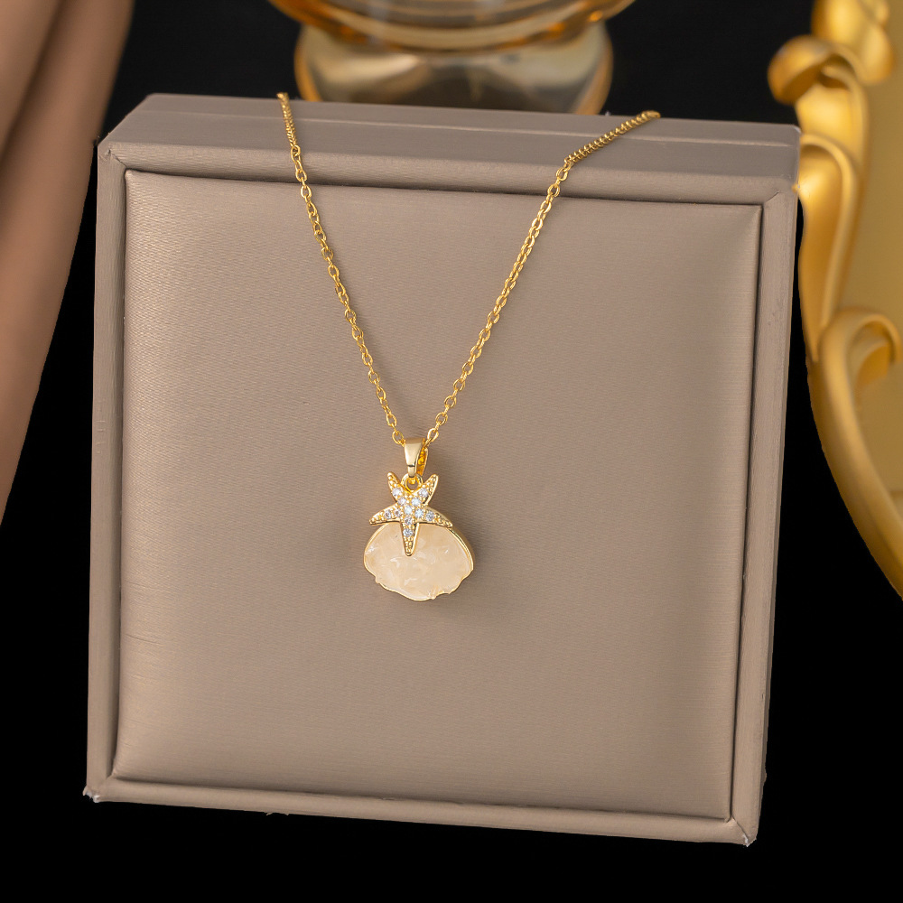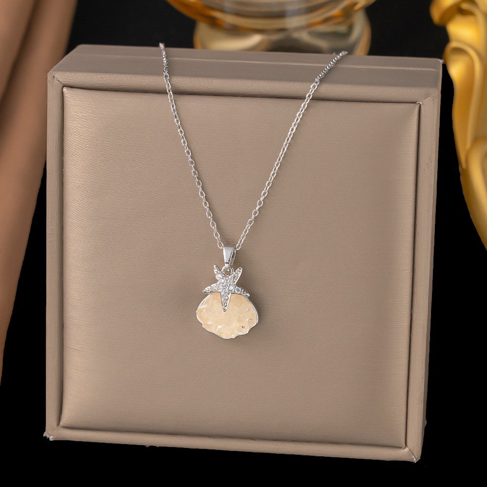 Color: 【8004】diamond starfish shell necklace silver