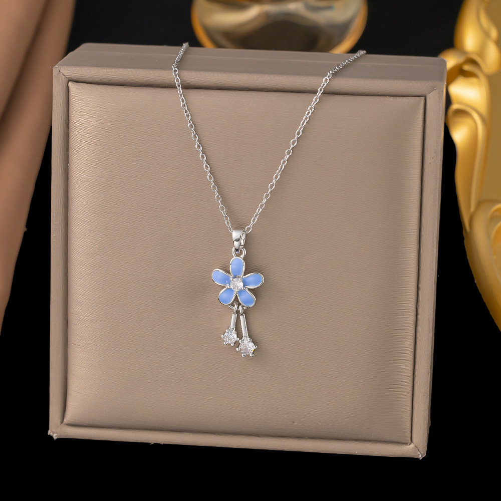 Color: 【8002】blue flower necklace silver
